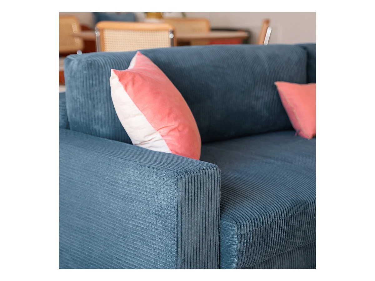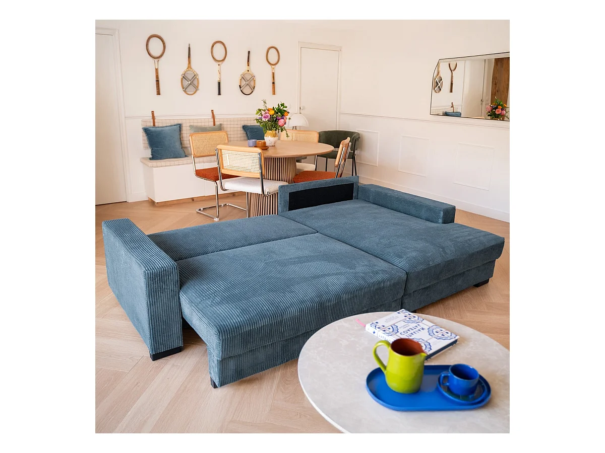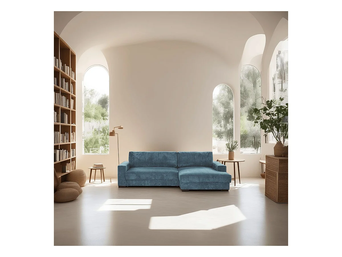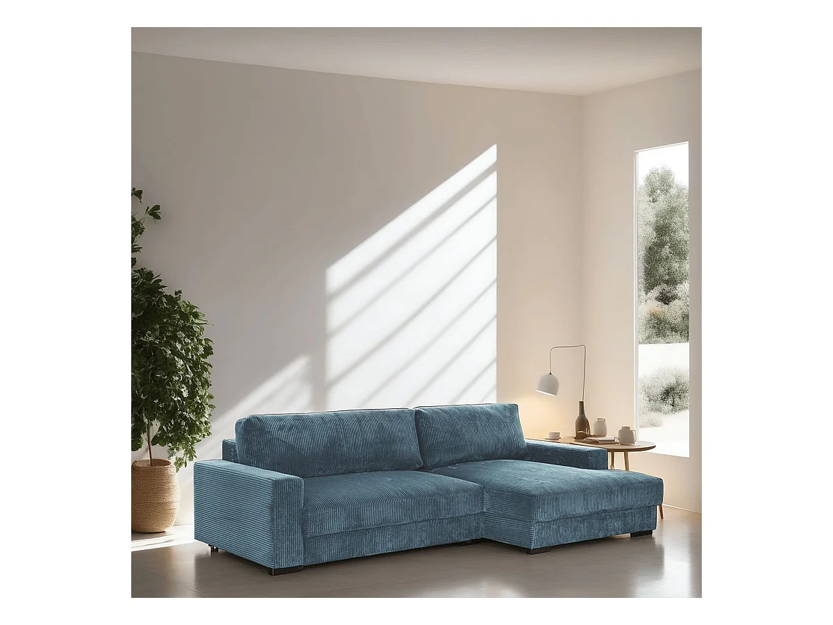 Canapé d'angle à droite convertible 3 places avec coffre en velours côtelé bleu gris - Arty