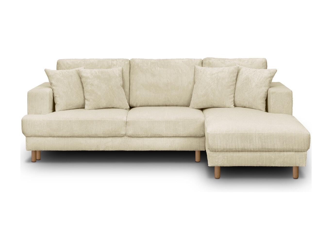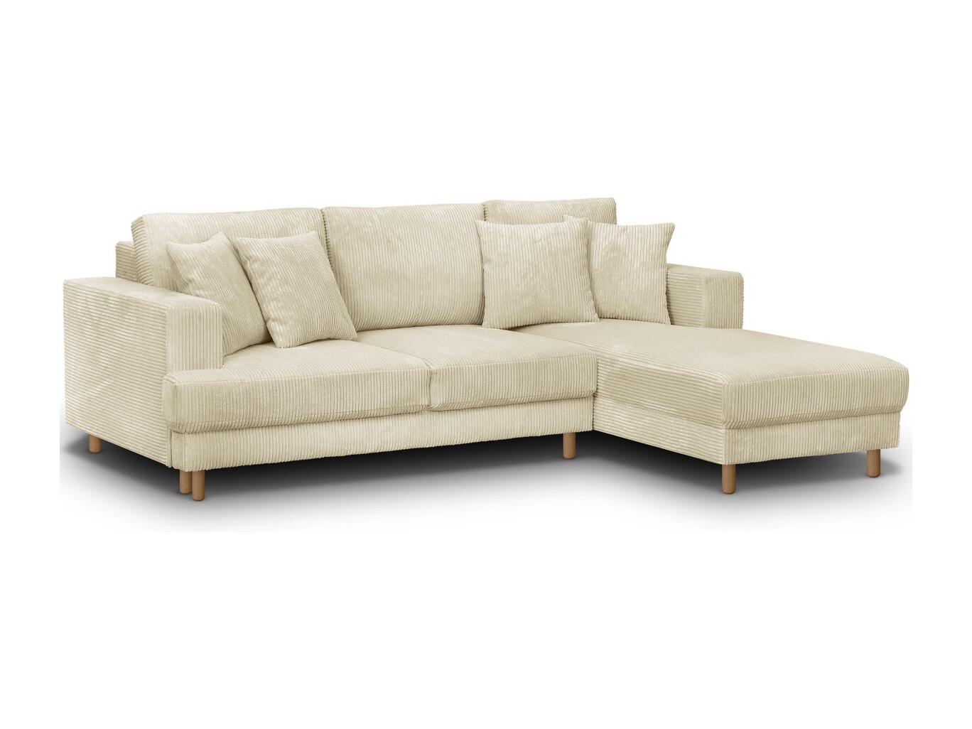 Canapé d'angle à droite convertible 4 places en velours côtelé beige - Marceau