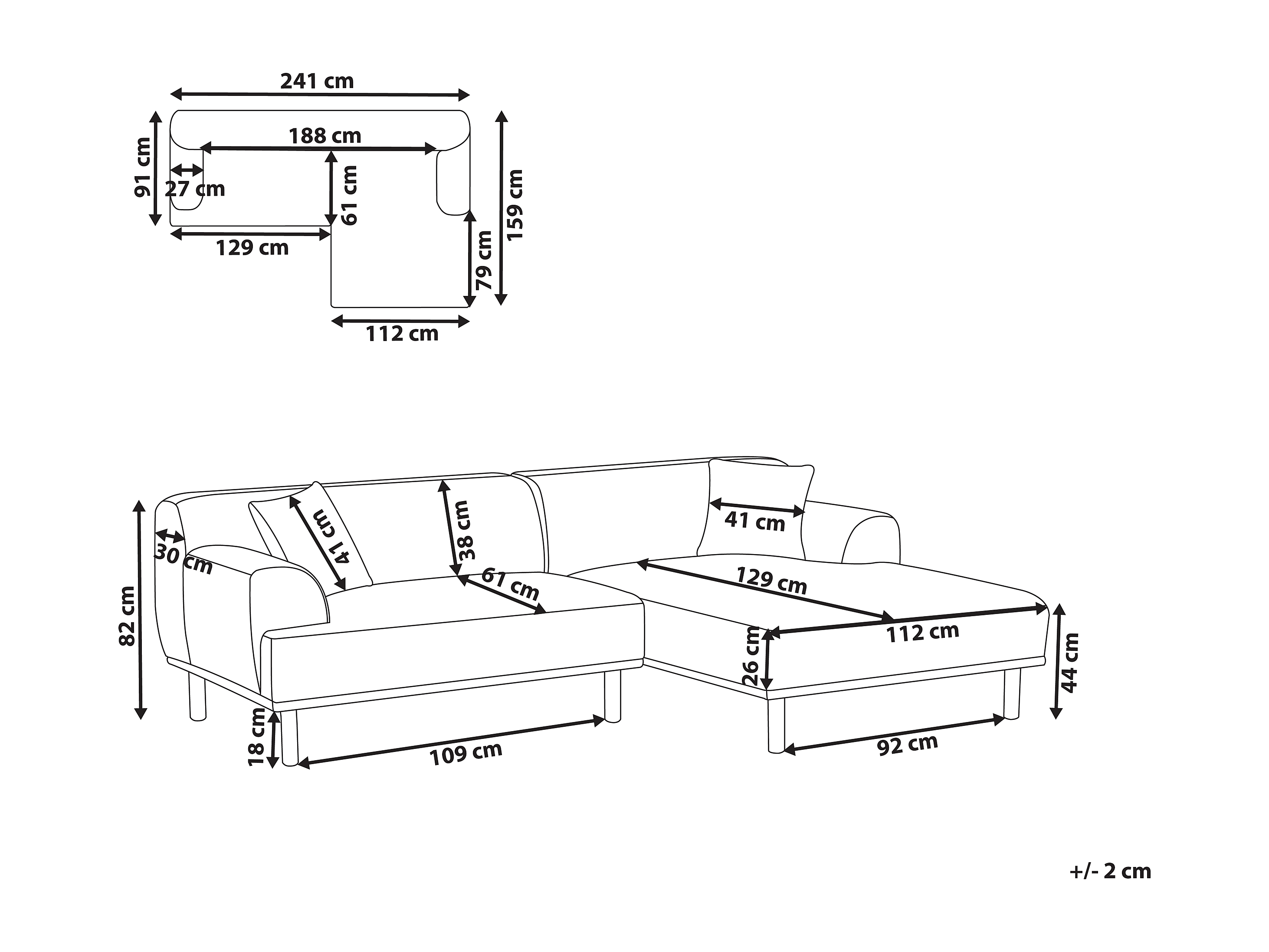 Canapé d'Angle à droite Minimaliste en Forme de L Tissu Hydrofuge Gris Clair Holt