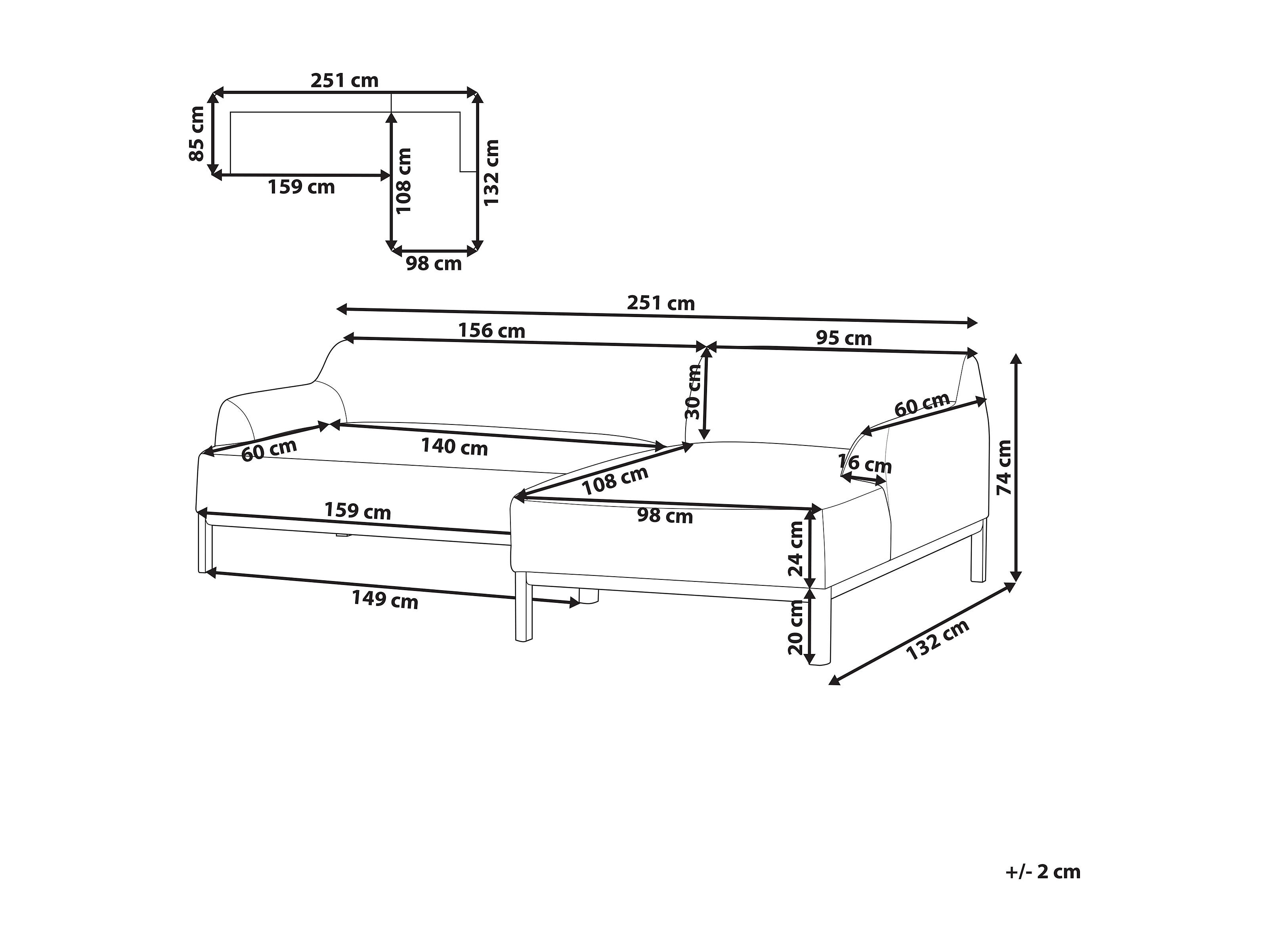 Canapé d'Angle à droite Pieds en Bois Meuble Coin de Salon en Tissu Polyester Marron Clair Sosjo