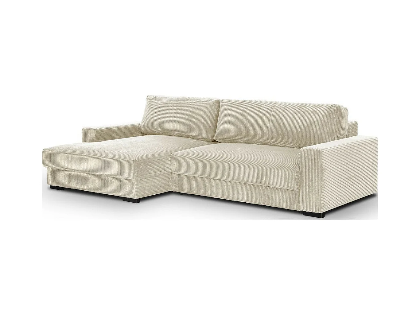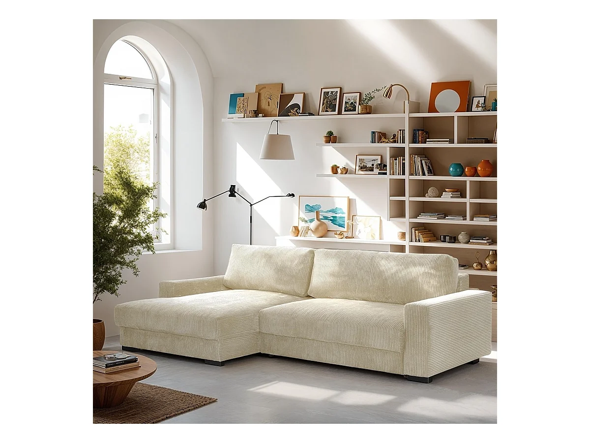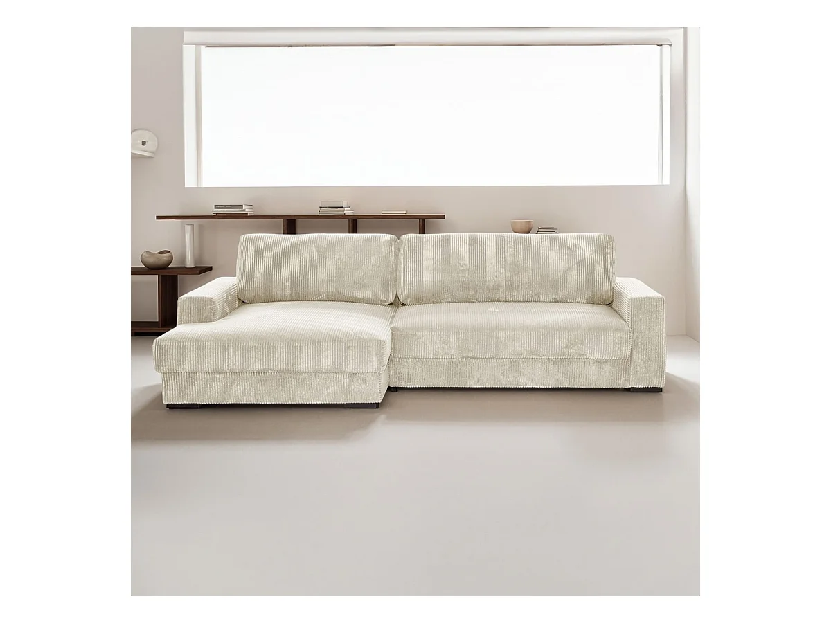 Canapé d'angle à gauche convertible 3 places avec coffre en velours côtelé beige - Arty