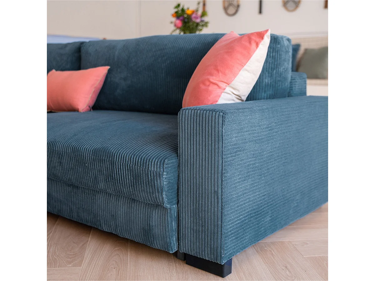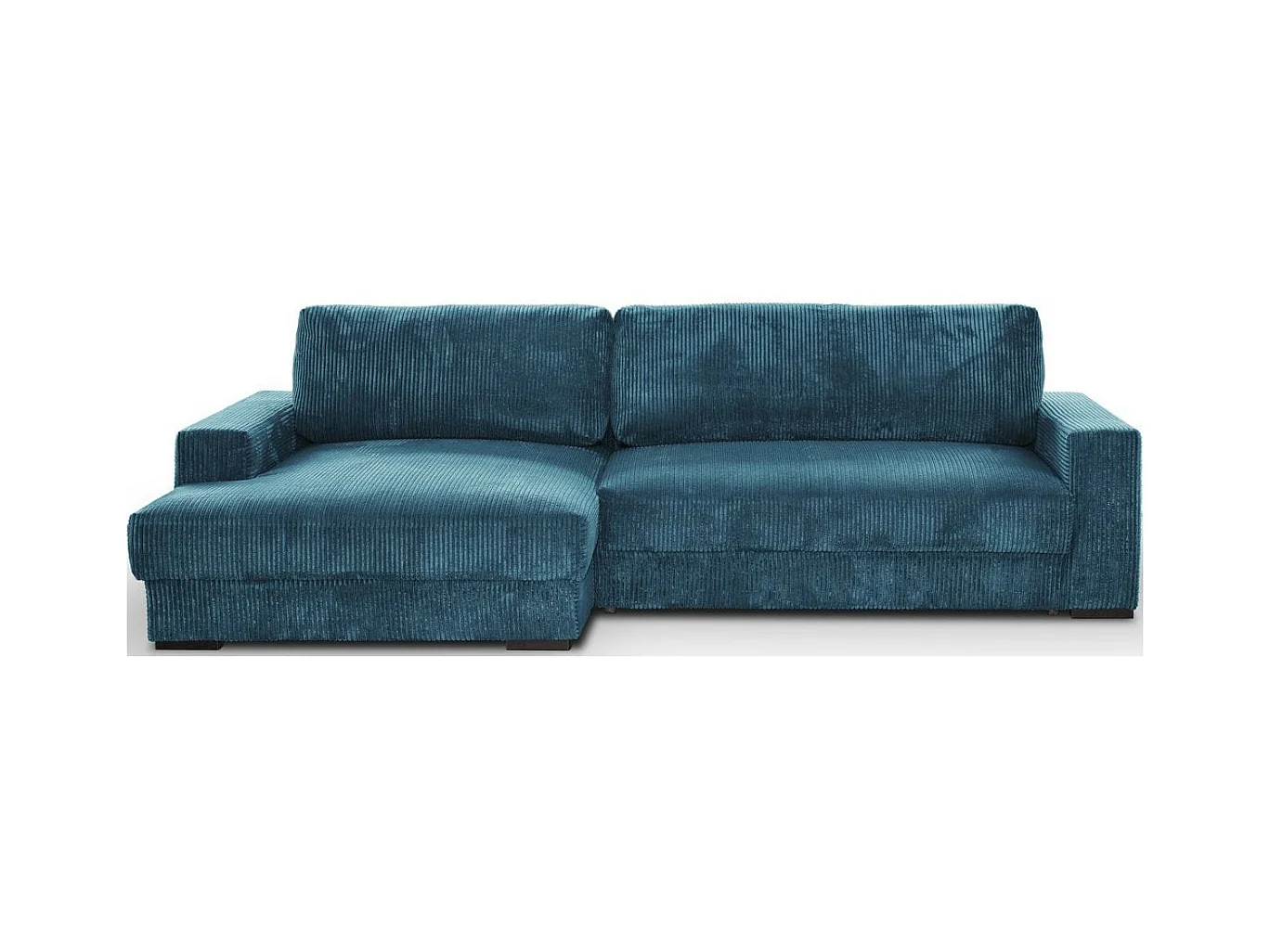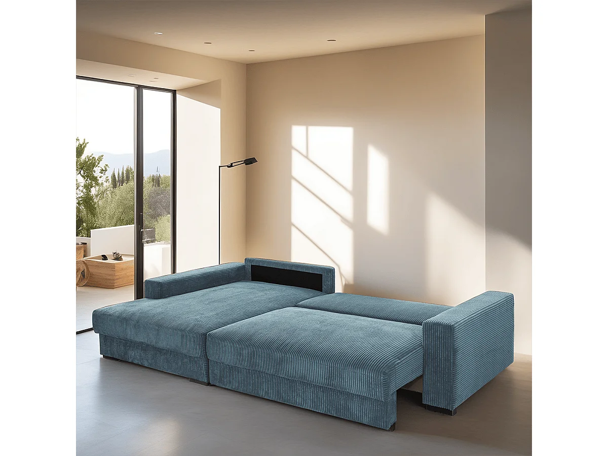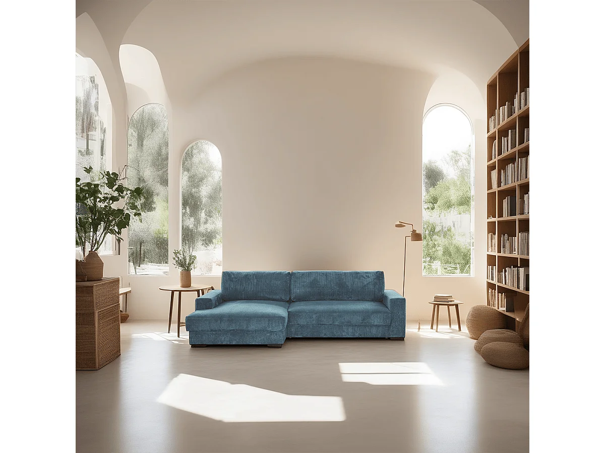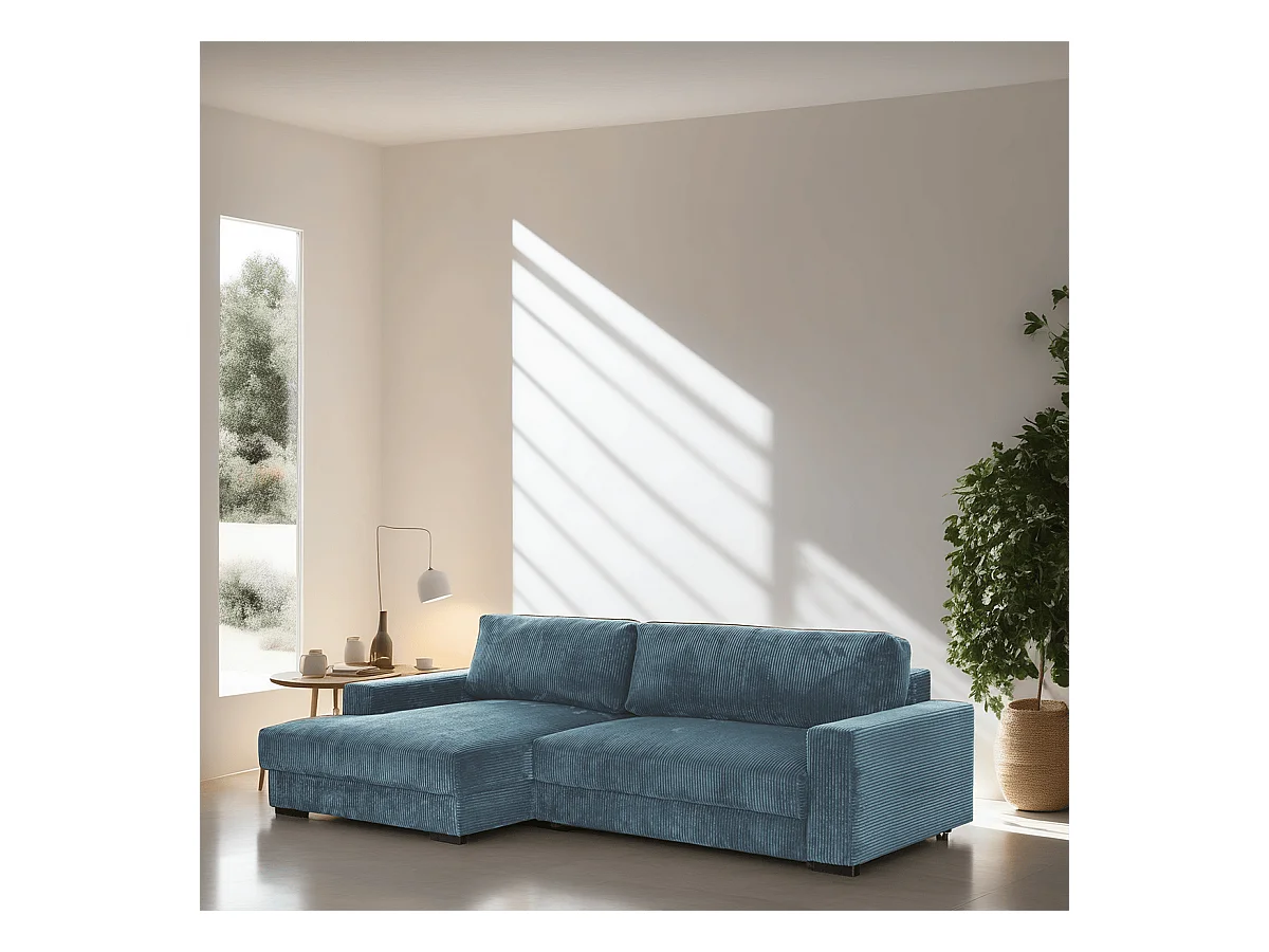 Canapé d'angle à gauche convertible 3 places avec coffre en velours côtelé bleu gris - Arty