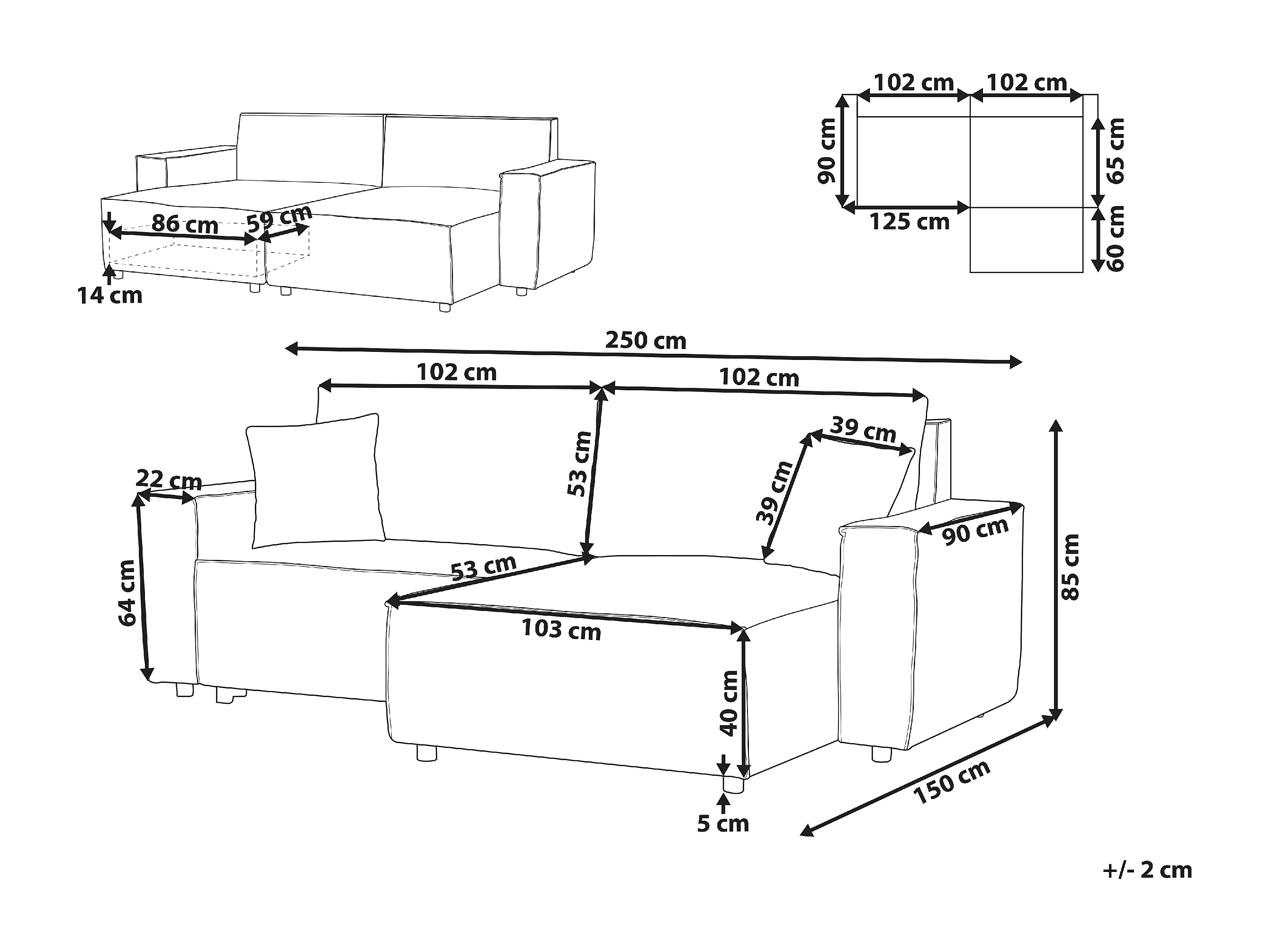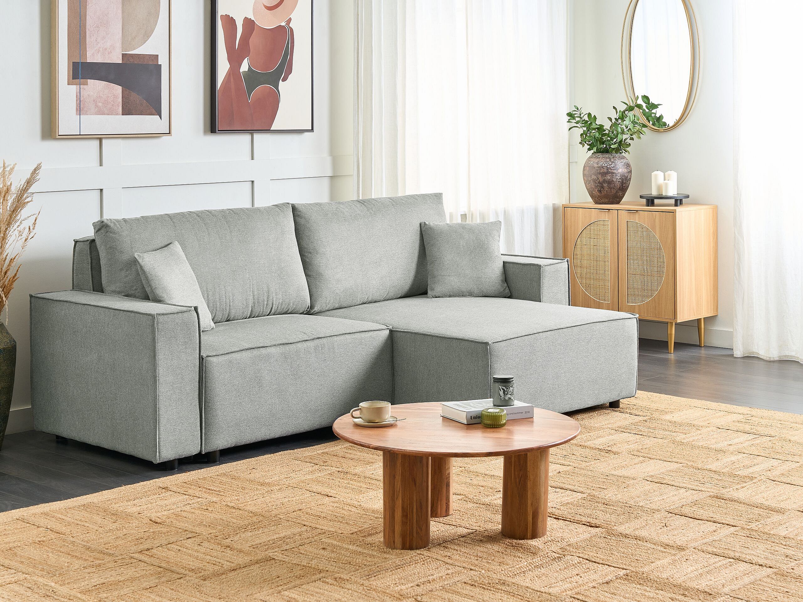 Canapé d'Angle à droite Moderne Fonction Couchage Dossier Rembourré avec Coussins en Tissu Polyester Gris Karila
