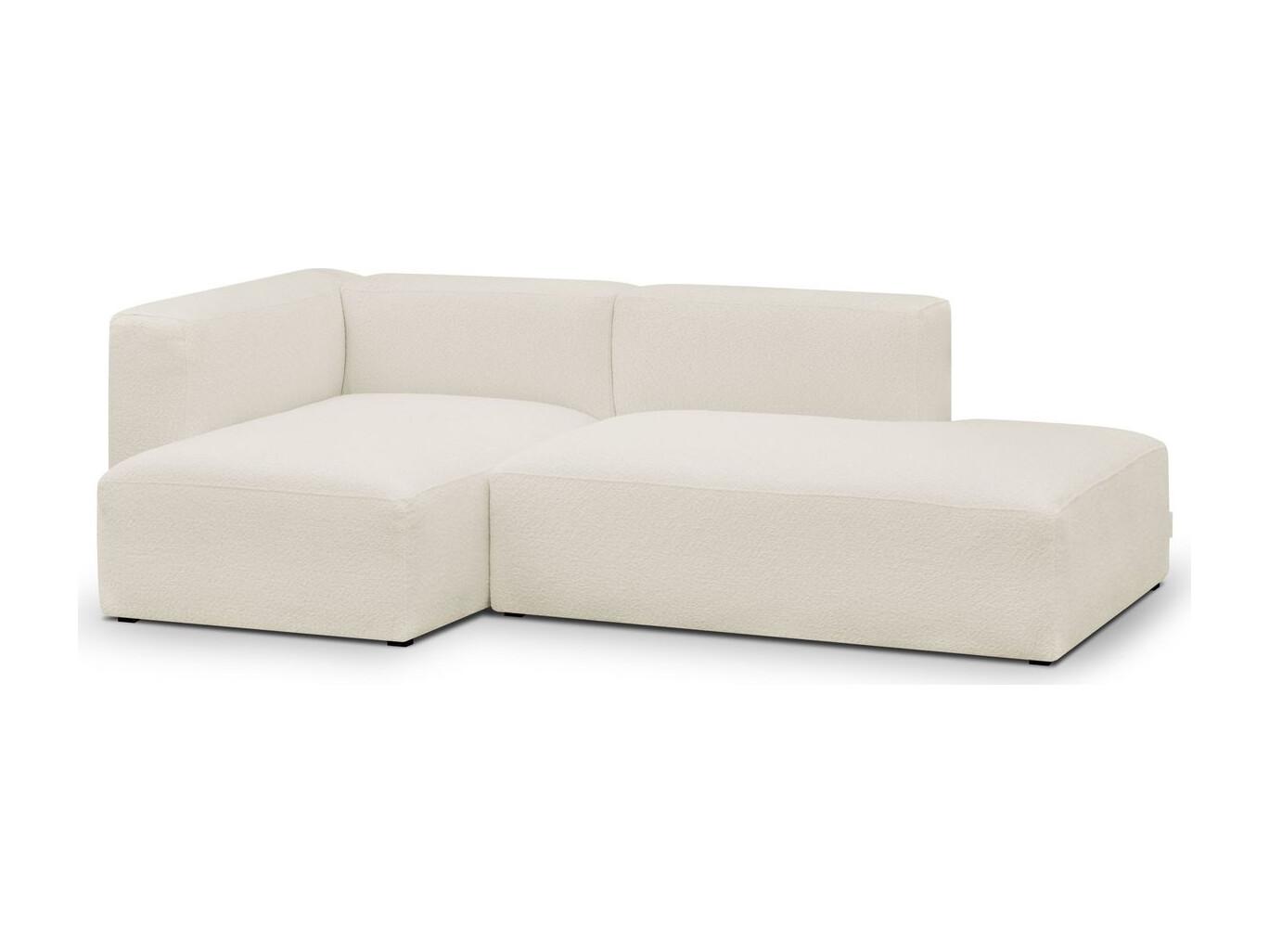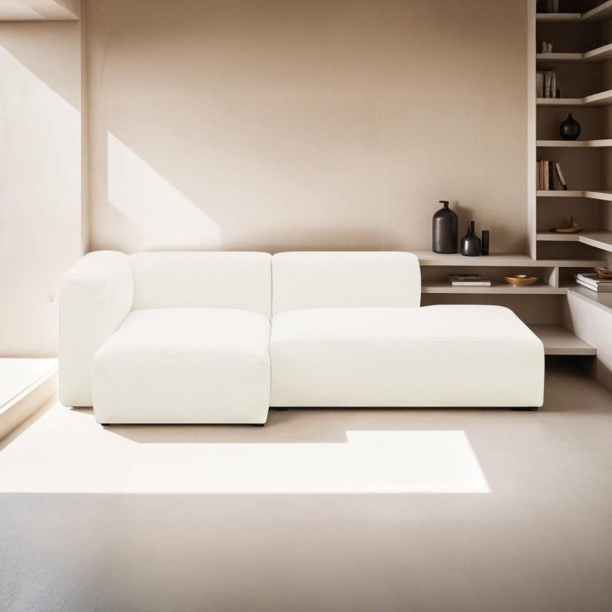 Canapé d'angle à gauche modulable avec méridienne 3/4 places en tissu bouclette écru - Modulo