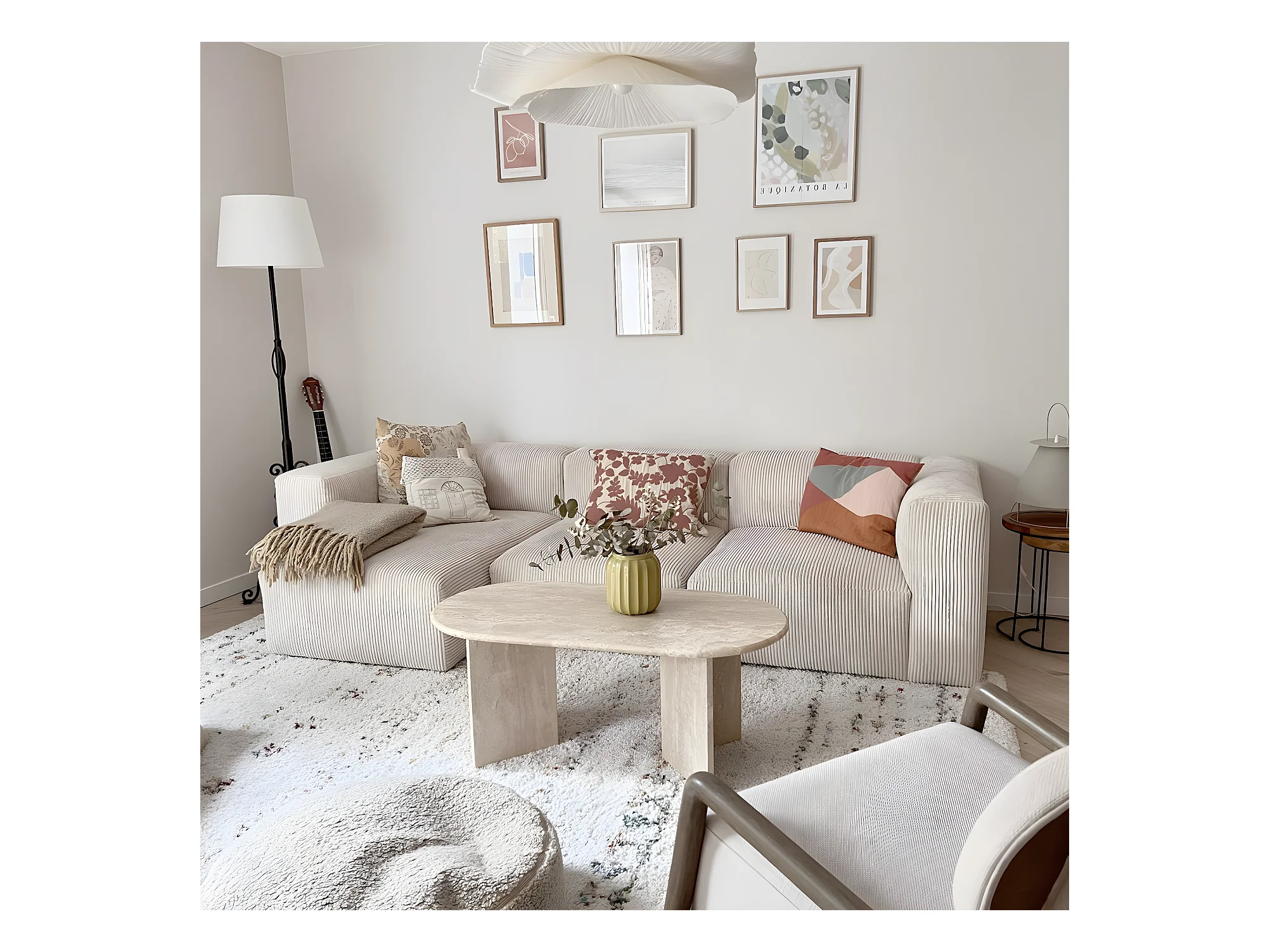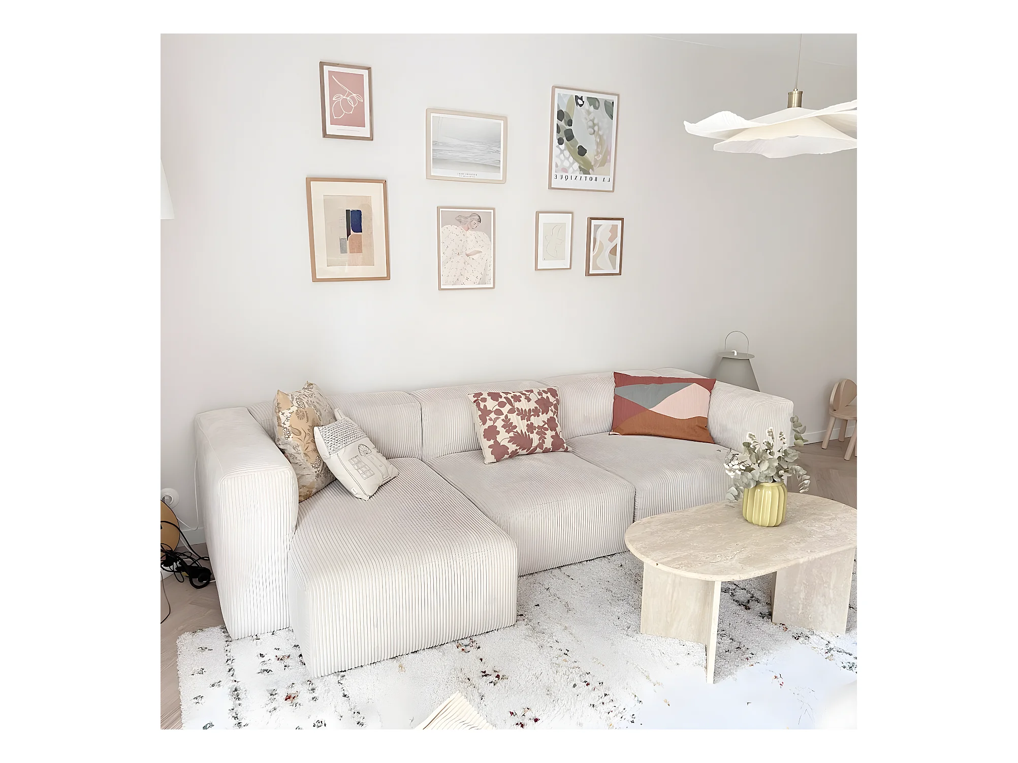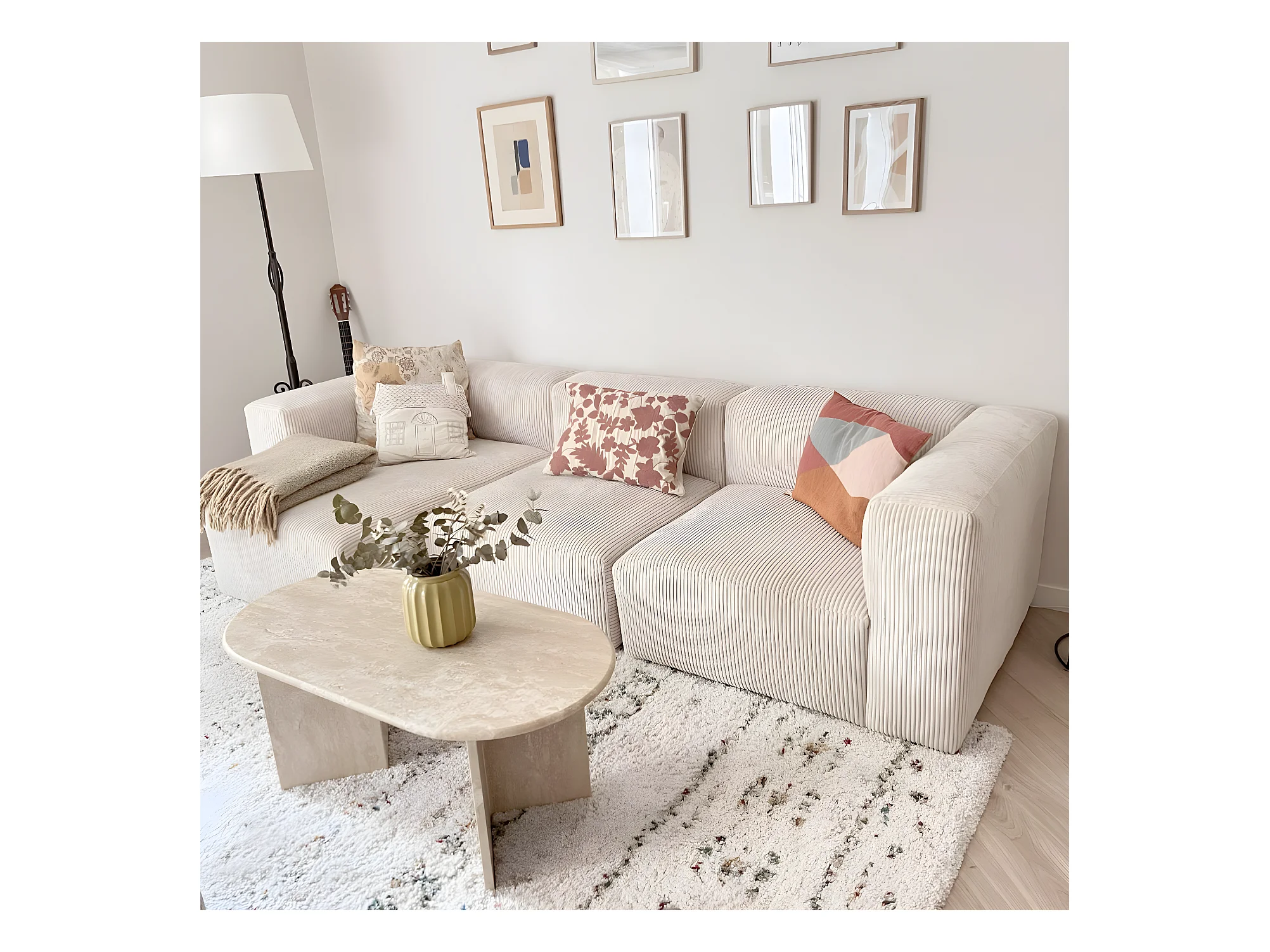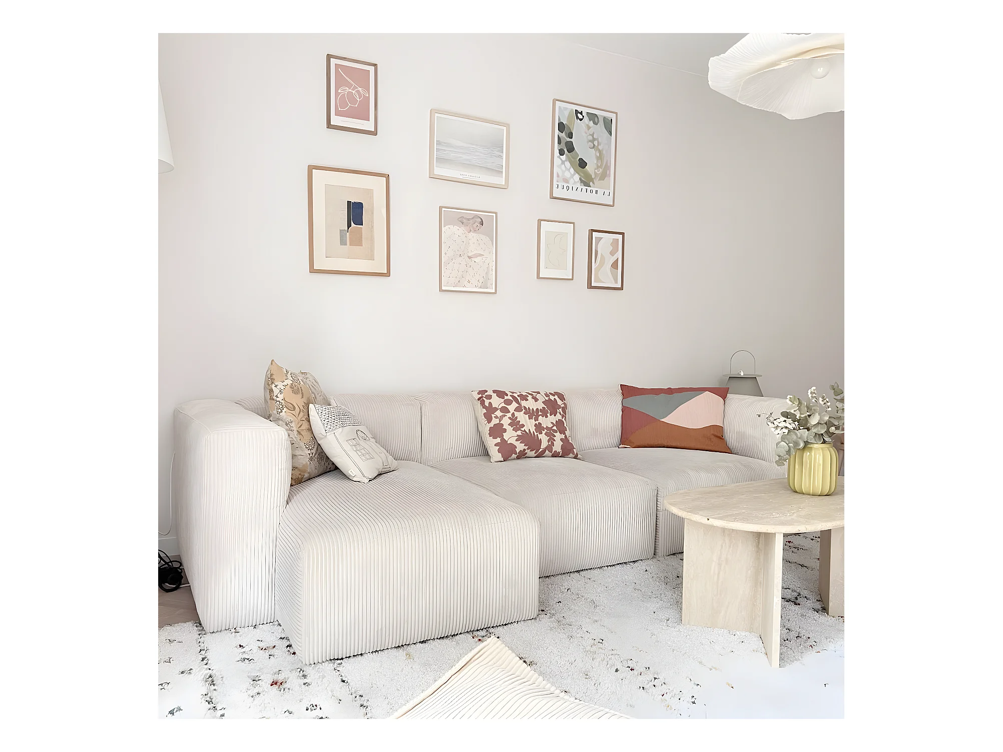Canapé d'angle à gauche modulable avec méridienne 4 places en velours côtelé beige - Modulo