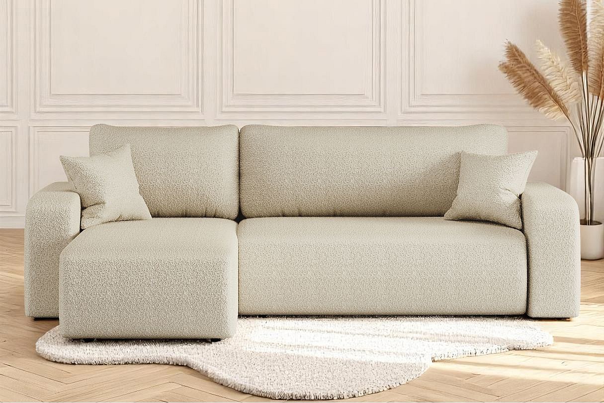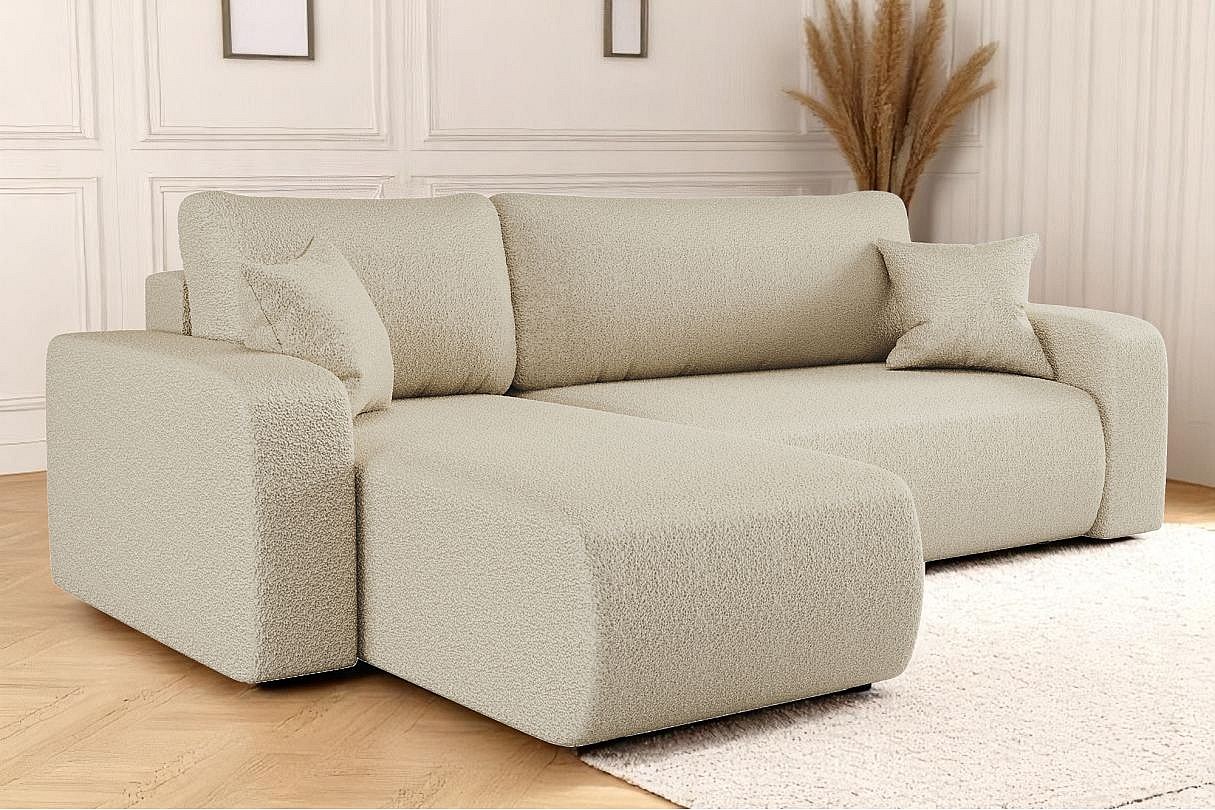 Canapé d'angle ALYA convertible et réversible 4 places en tissu bouclette - Beige