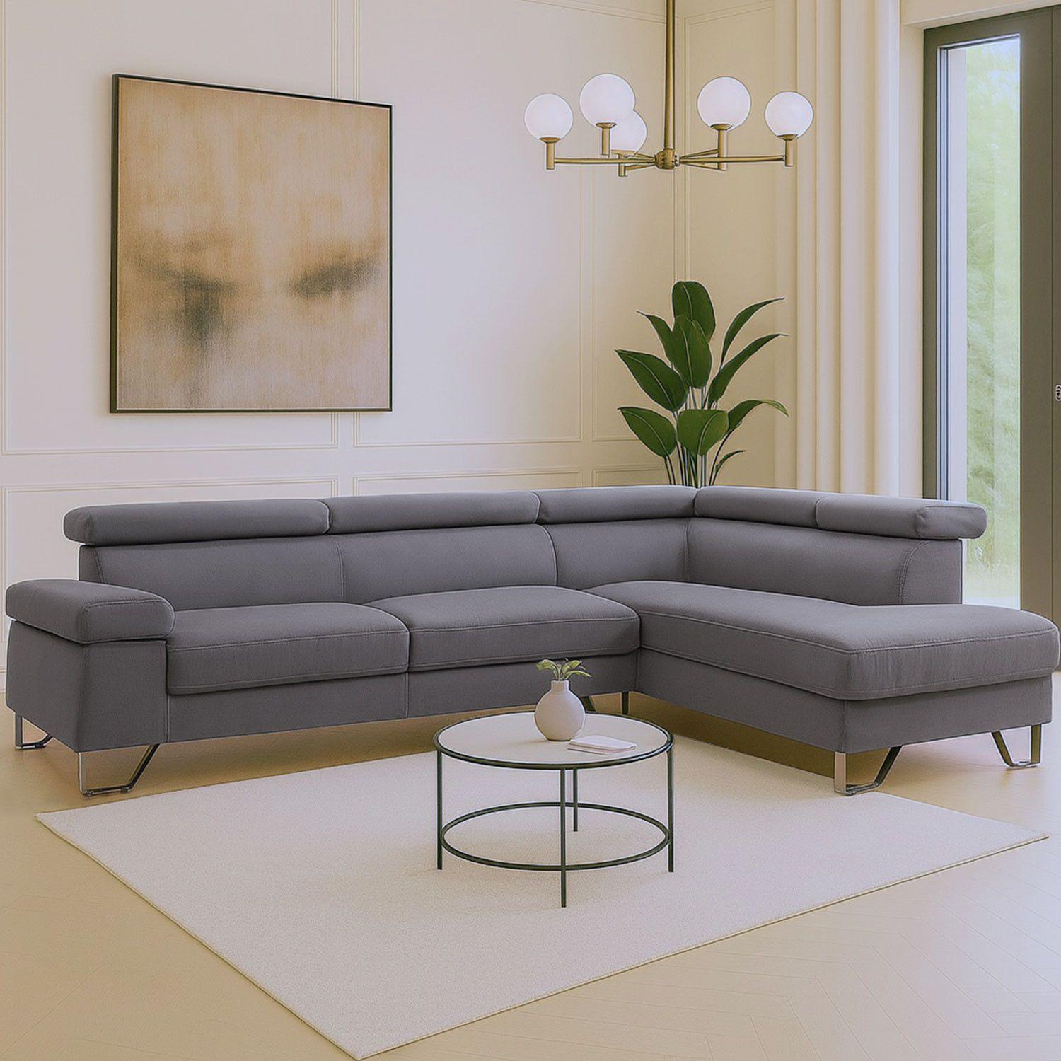 Canapé d'Angle Droit en Velours "Xumi" 260cm Gris