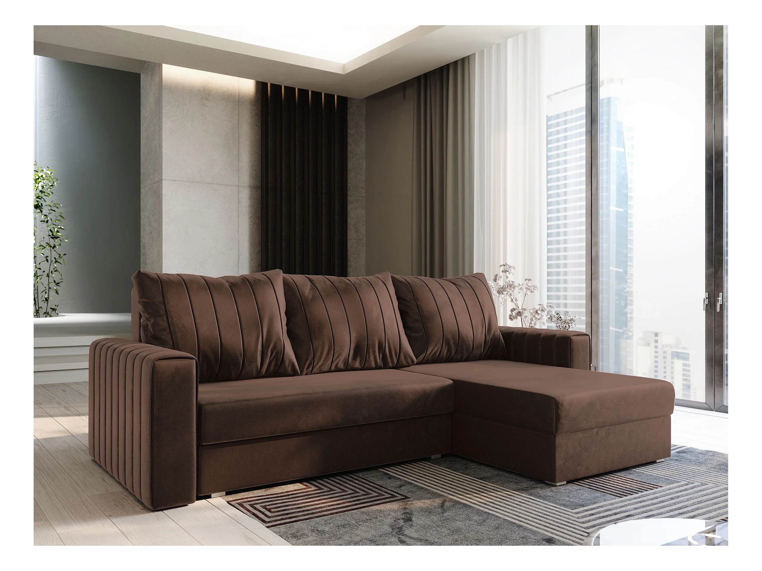 Canapé d'angle CARL Marron en peluche avec fonction de couchage