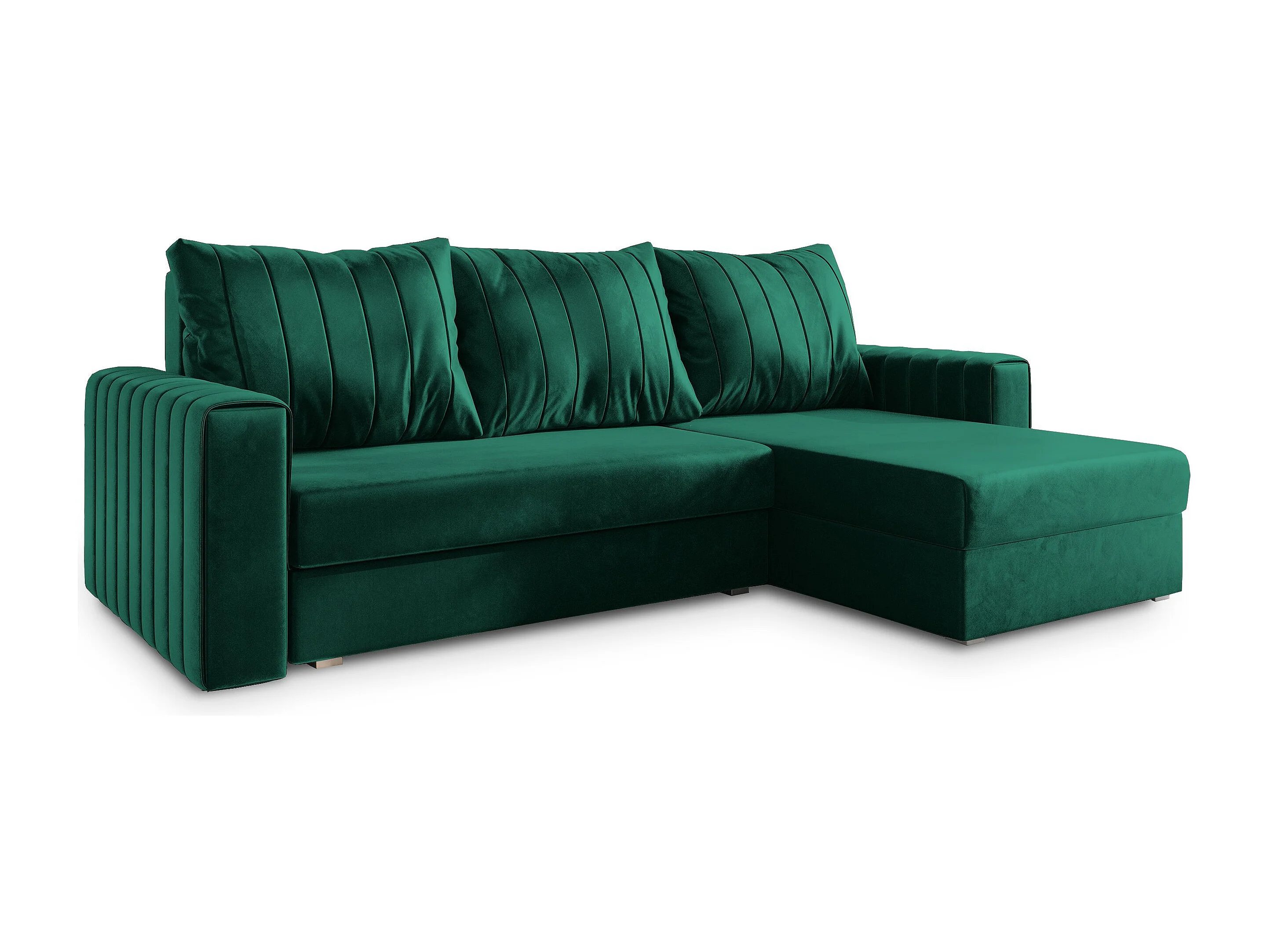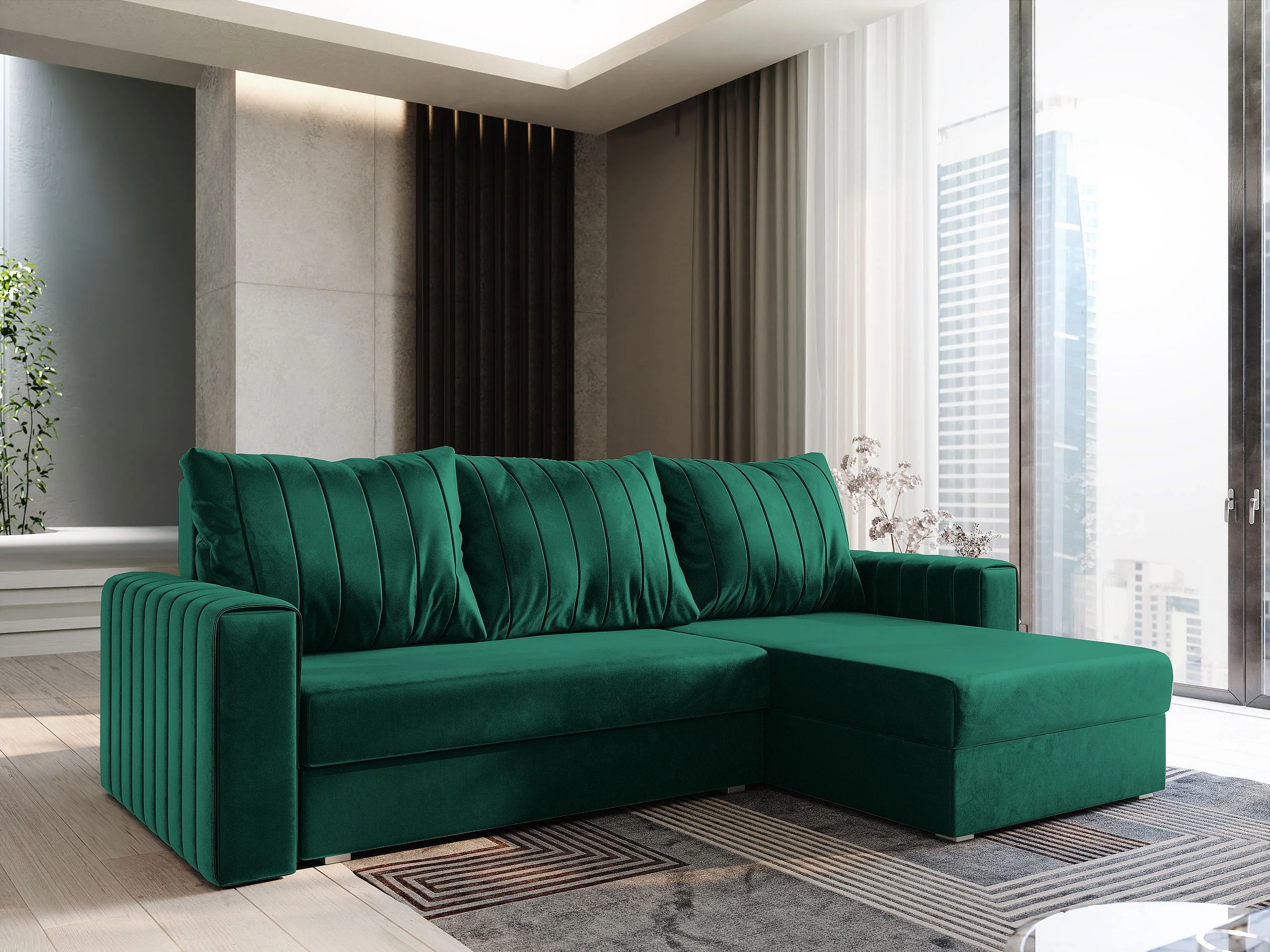 Canapé d'angle CARL Vert Sapin en peluche avec fonction de couchage