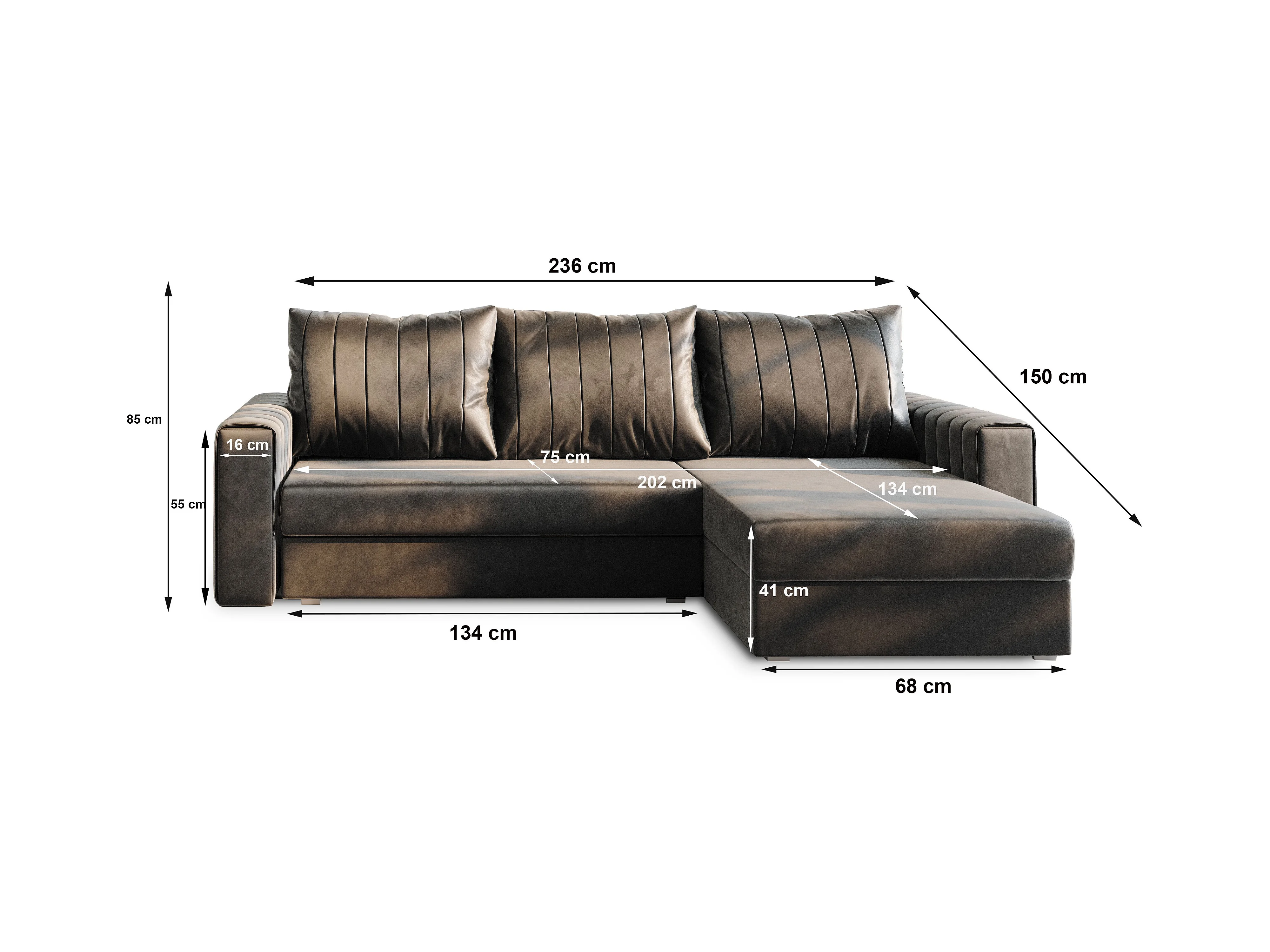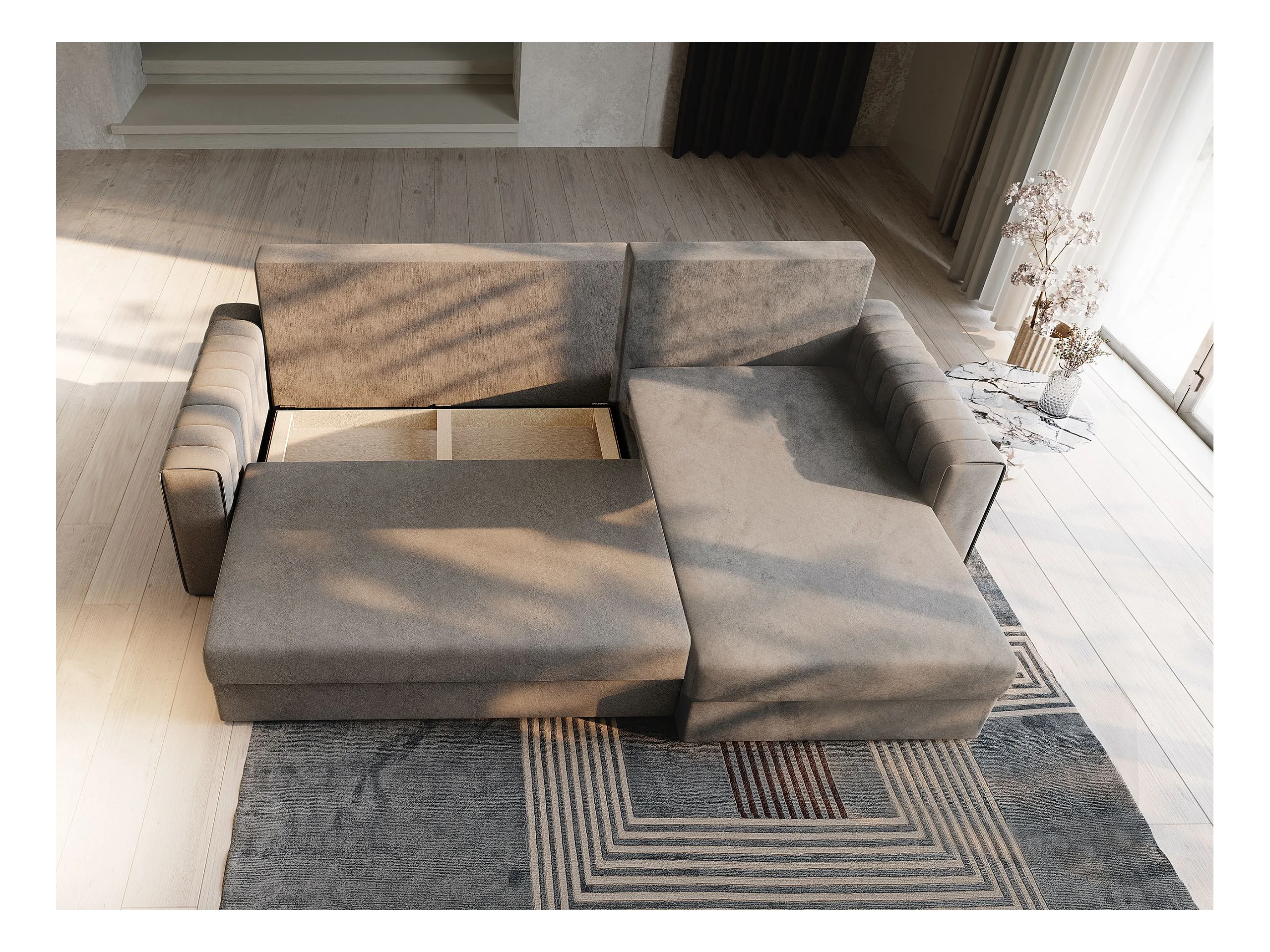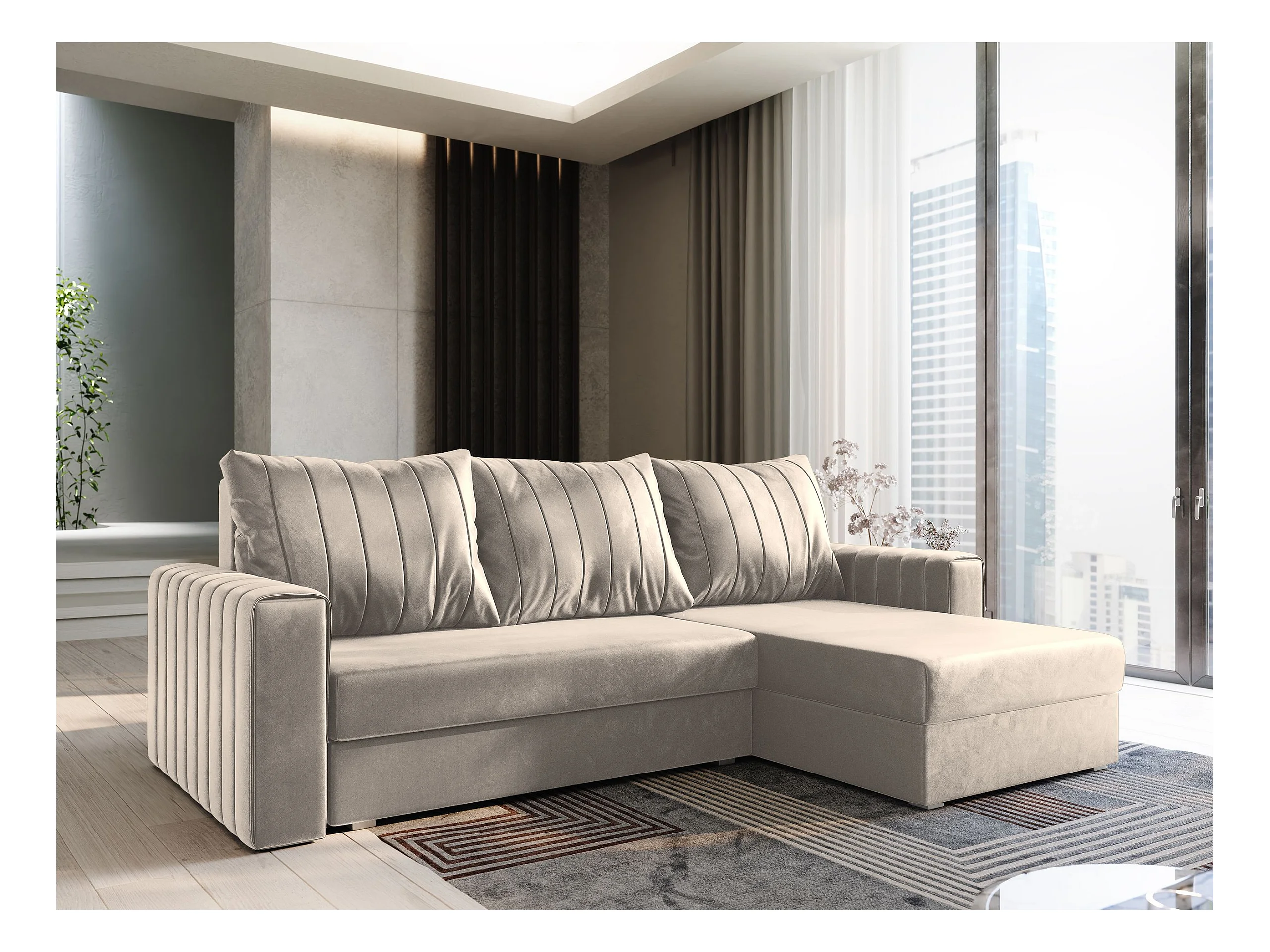 Canapé d'angle CARL Beige en peluche avec fonction de couchage
