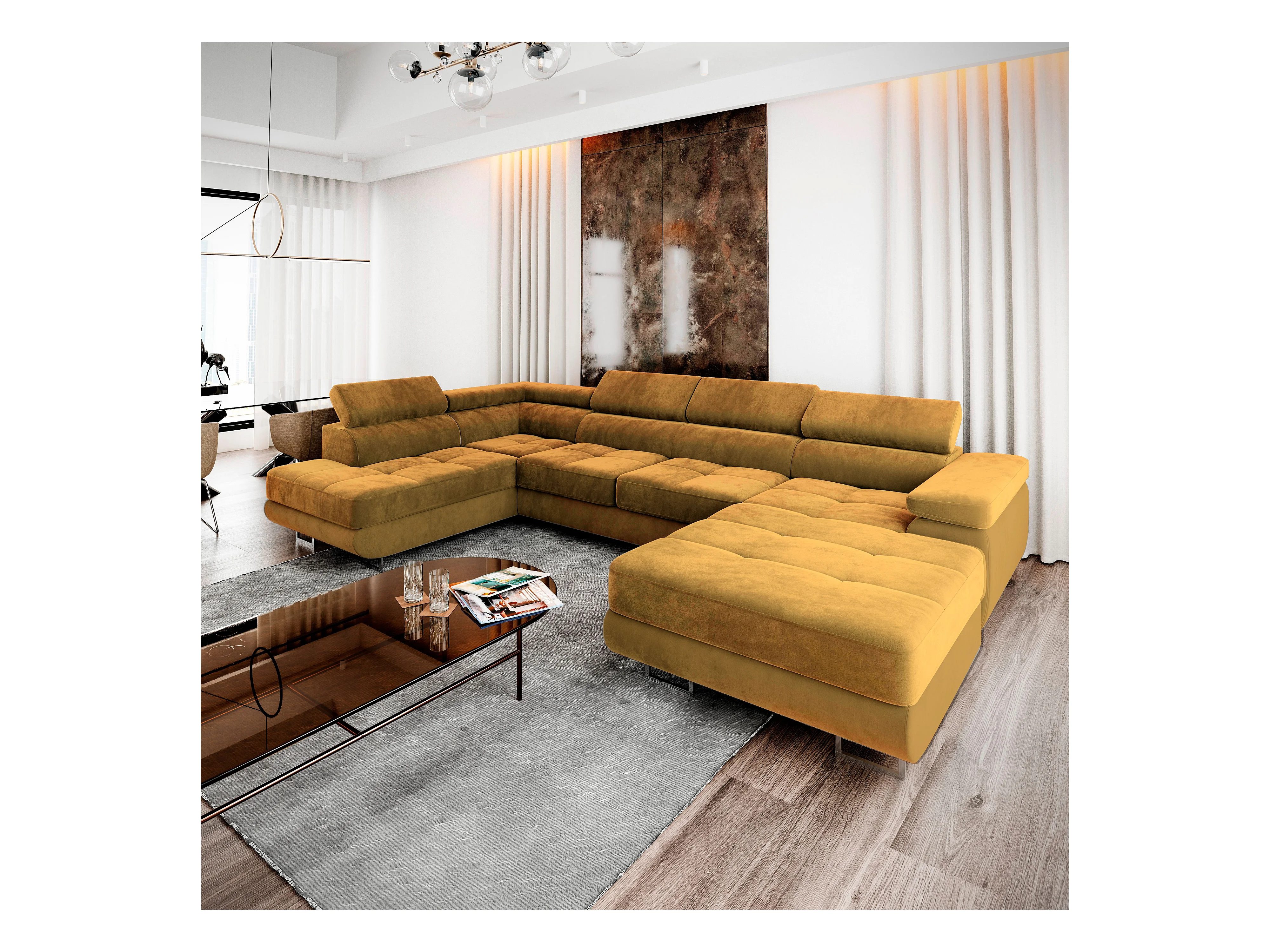 Canapé d'angle CASONE Jaune en velours avec fonction de couchage