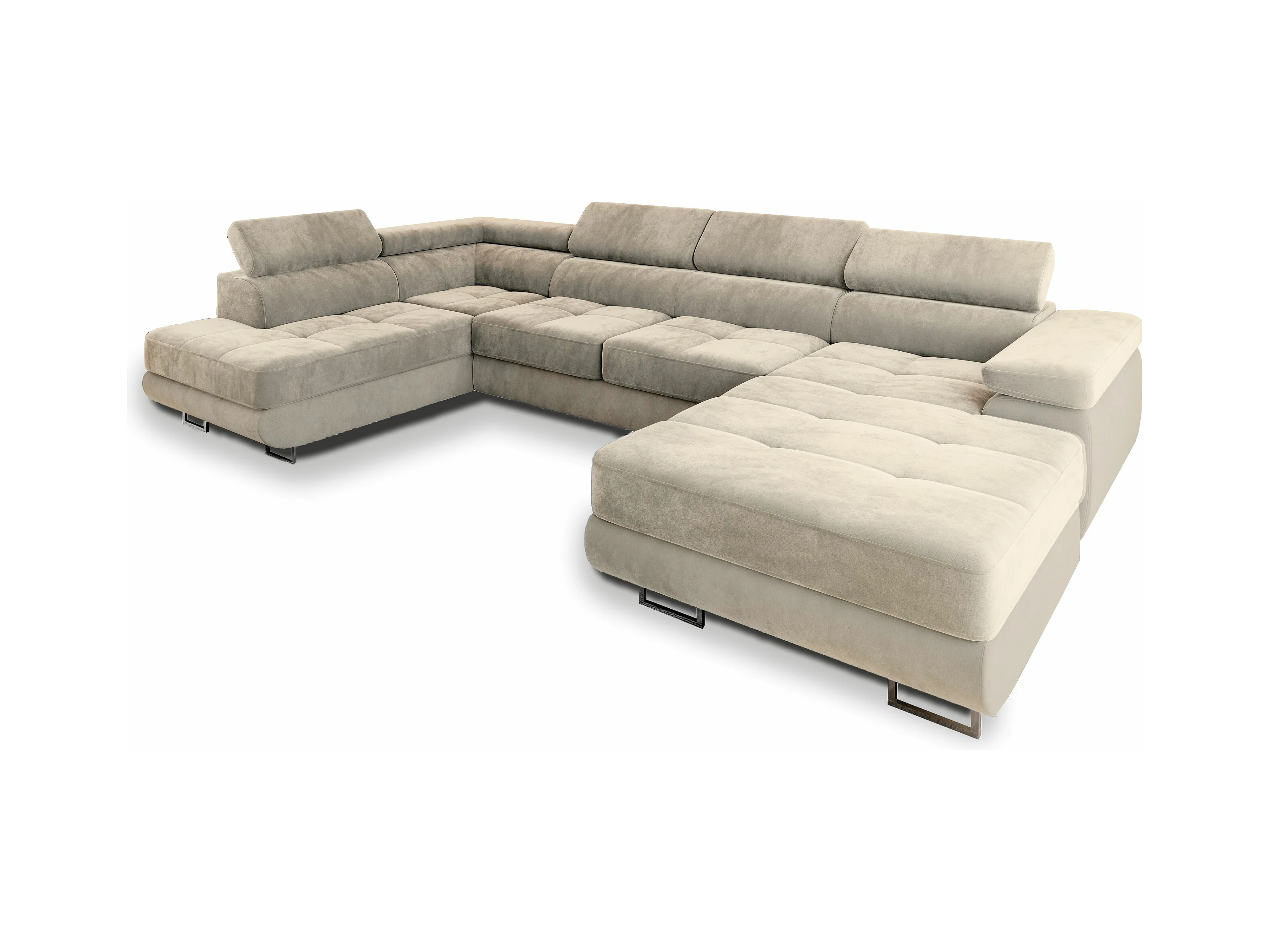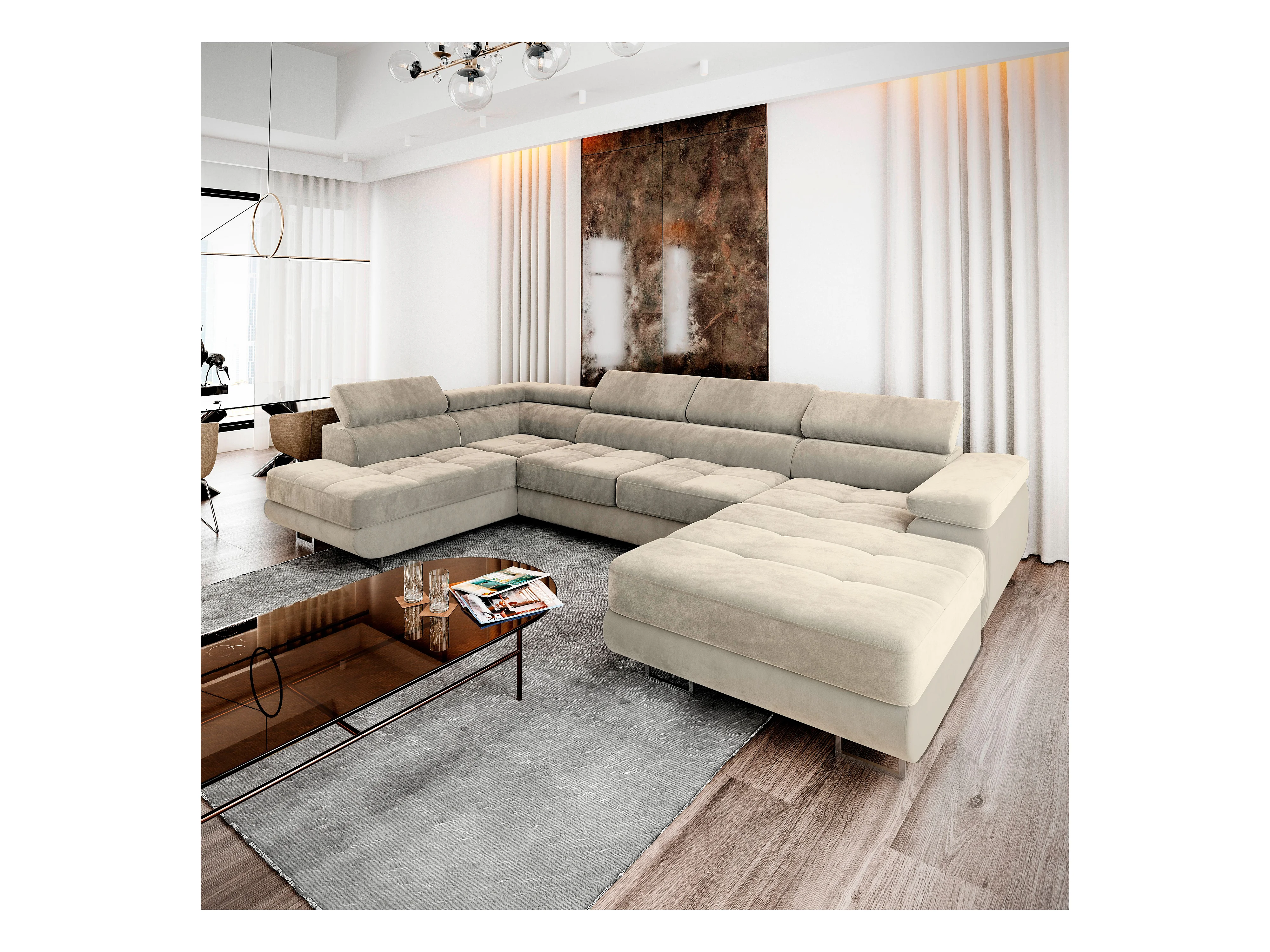 Canapé d'angle CASONE Crème en velours avec fonction de couchage