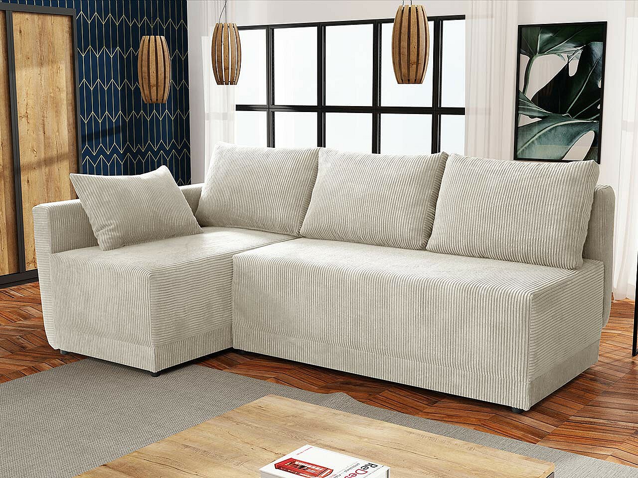 Canapé d'angle Columbus 149, Brun clair, Fonction de couchage, Boîte de literie, 210x85cm