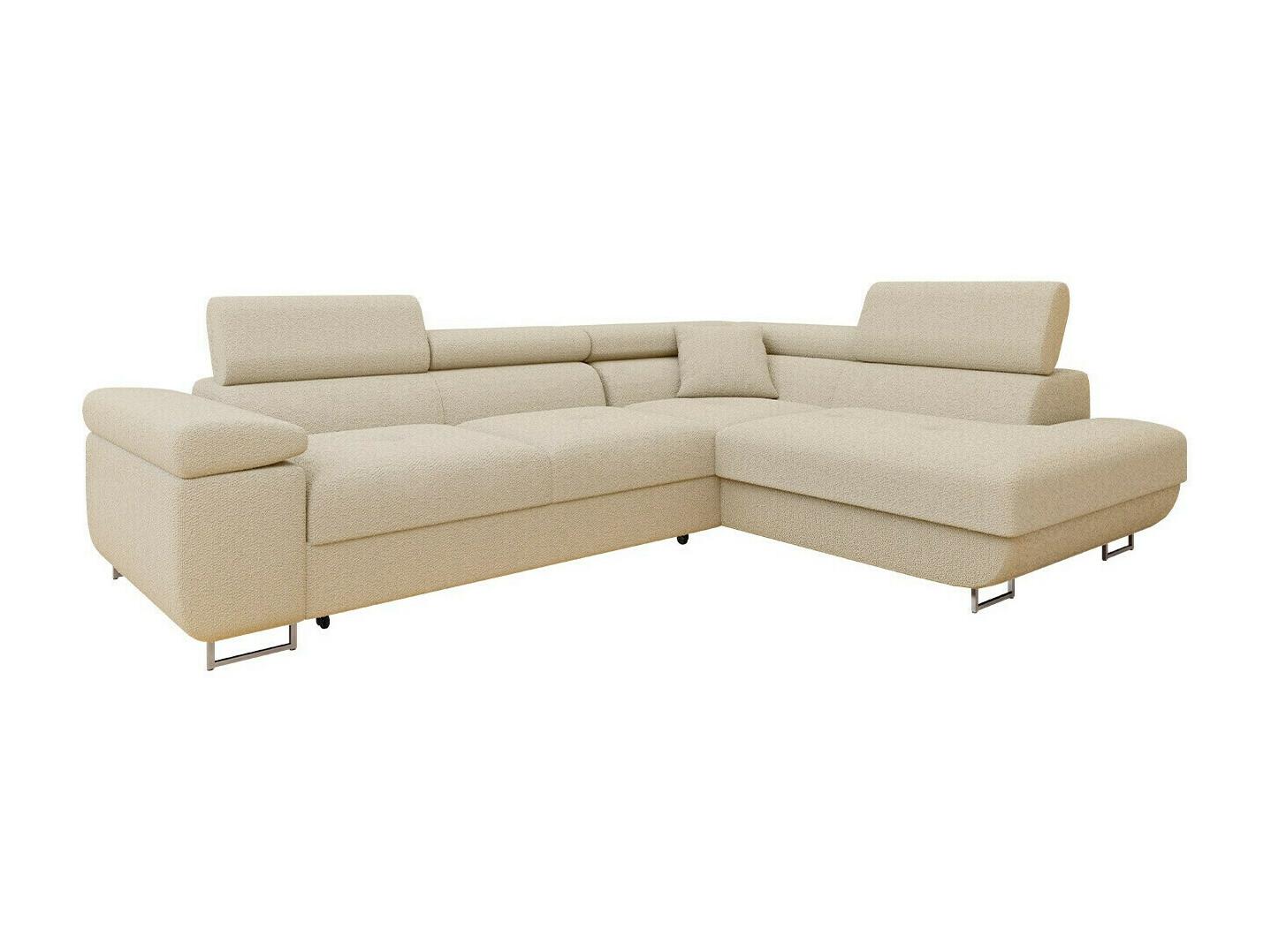 Canapé d'angle Comfivo Eliferu 101, Brun clair, Fonction de couchage, Boîte de literie,