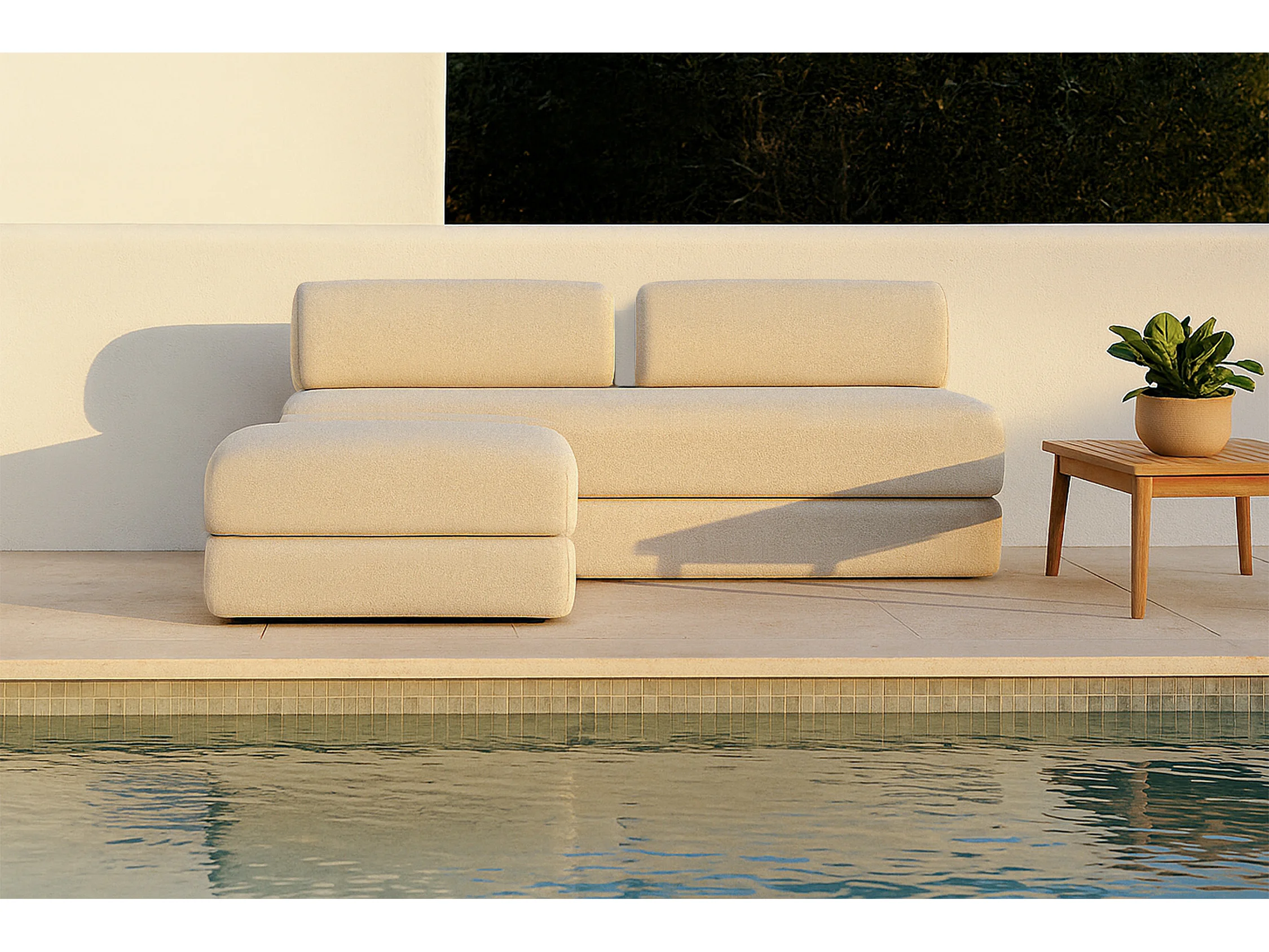 Canapé d'angle de jardin modulable et convertible 4 places - Tissu imperméable - Gris