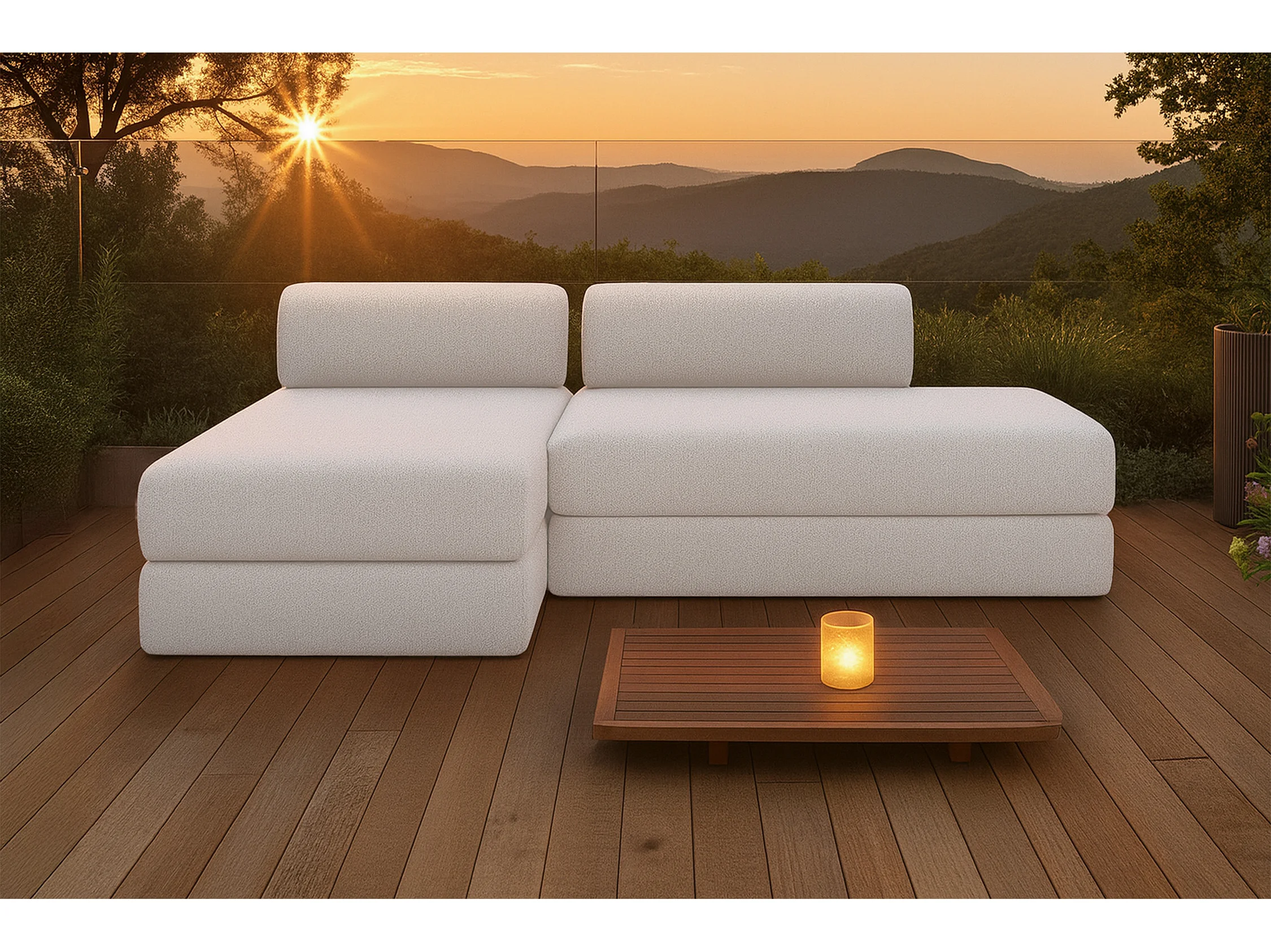 Canapé d'angle de jardin modulable et convertible 5 places - Tissu imperméable - Gris