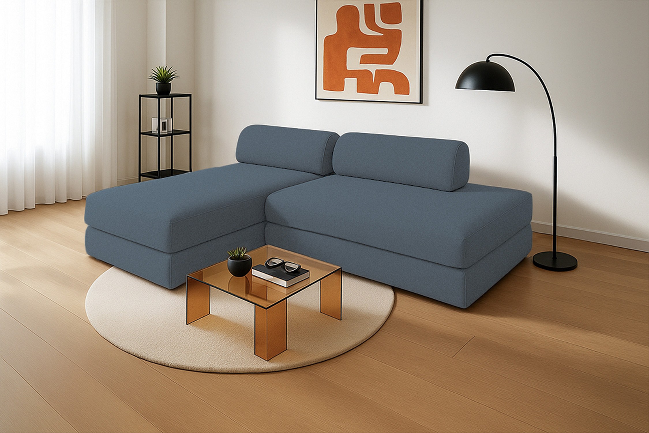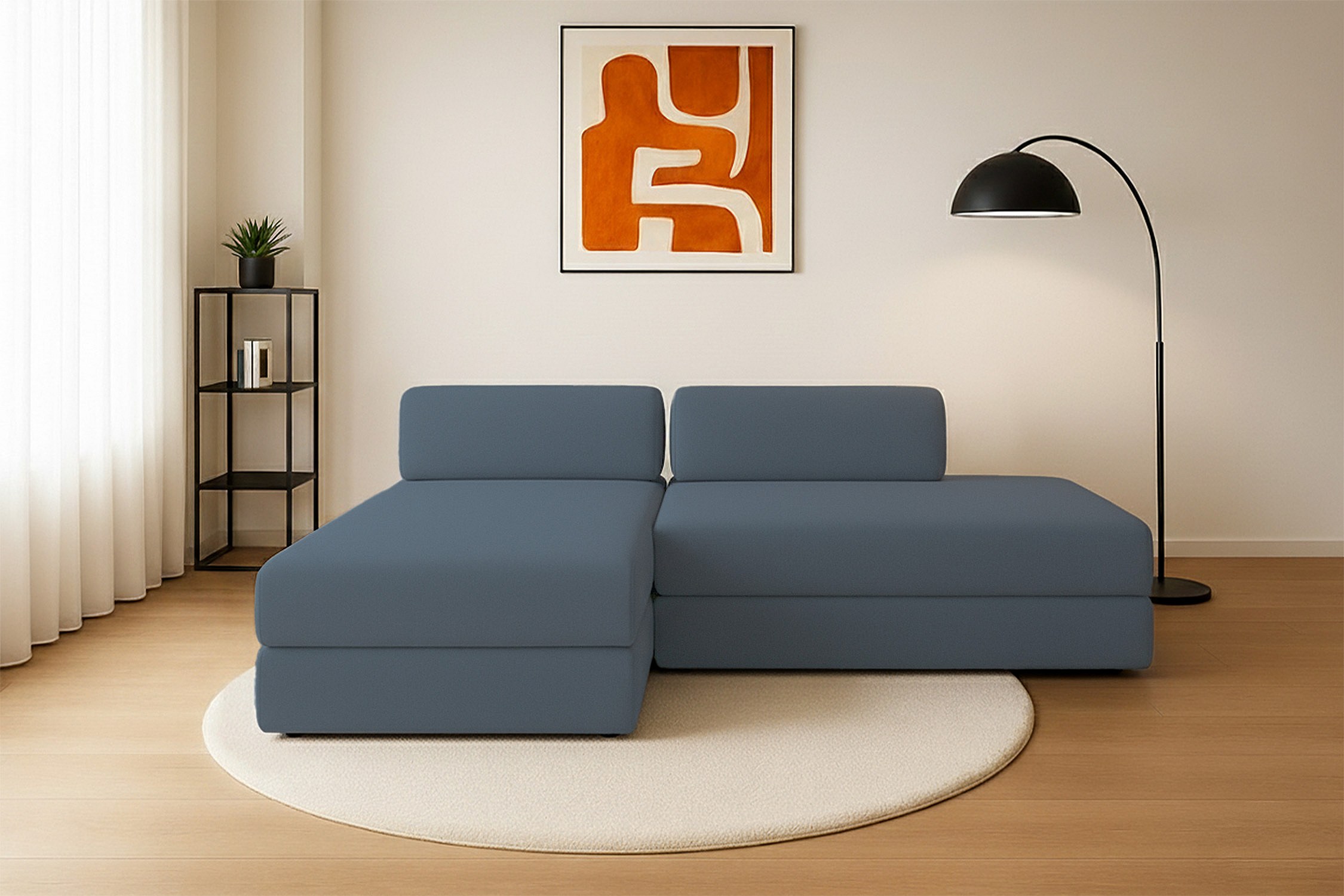 Canapé d'angle modulable et convertible 5 places - Tissu lisse - Bleu
