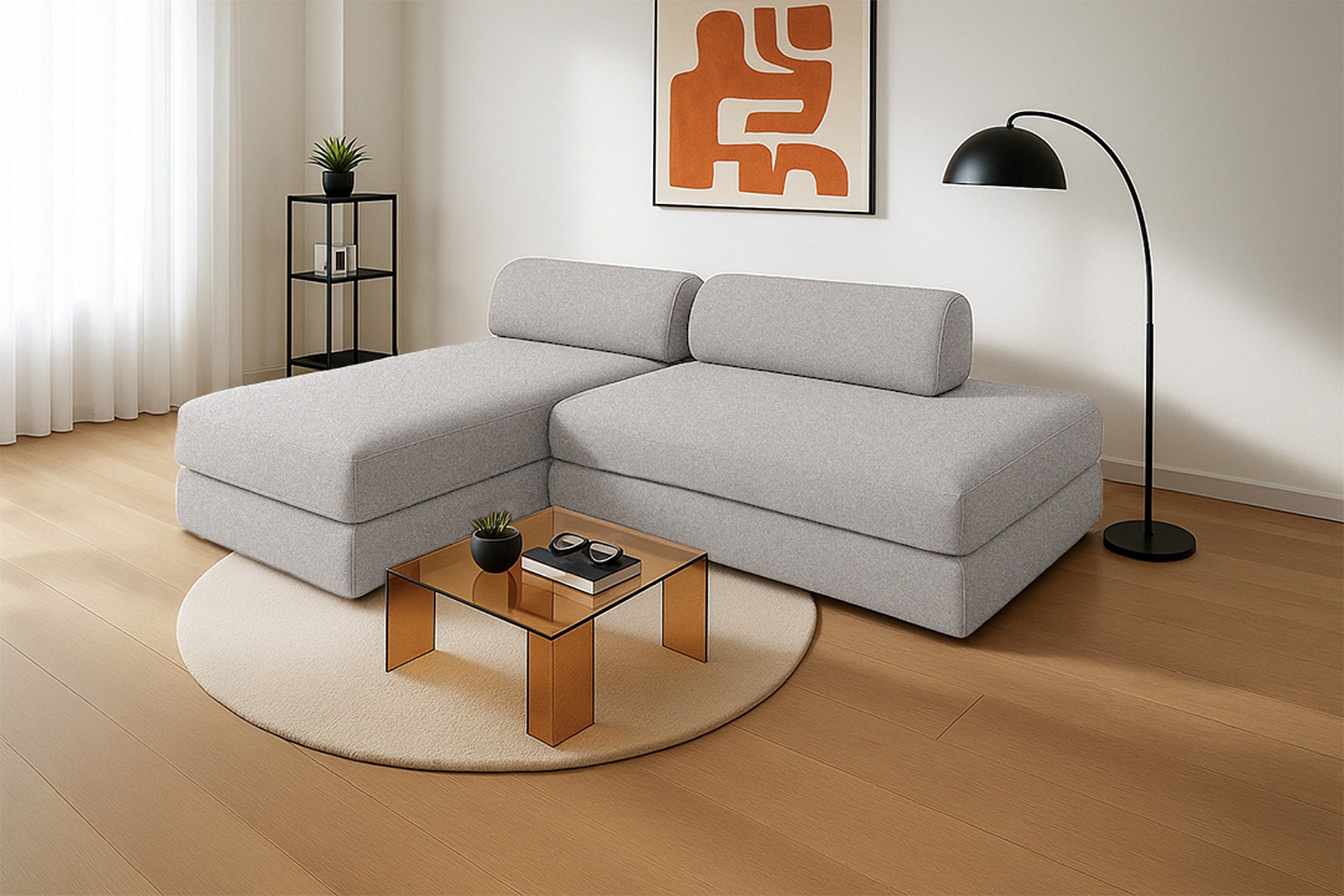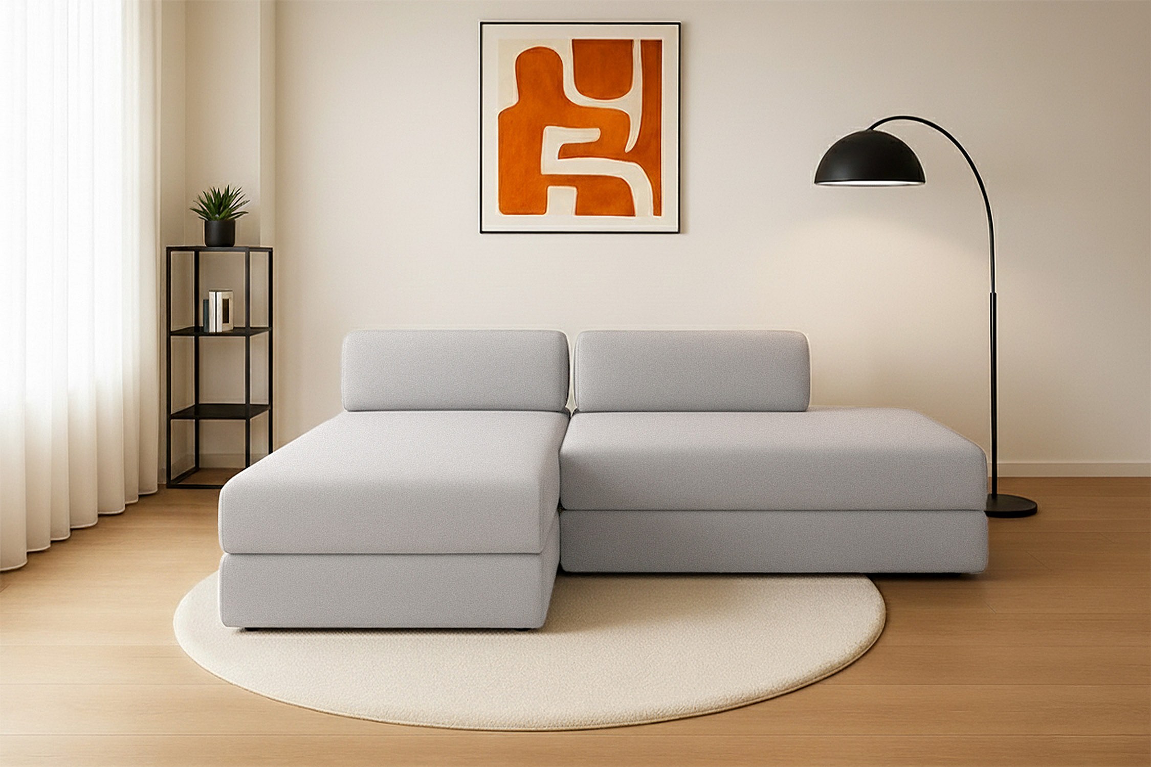 Canapé d'angle modulable et convertible 5 places - Tissu lisse - Gris clair