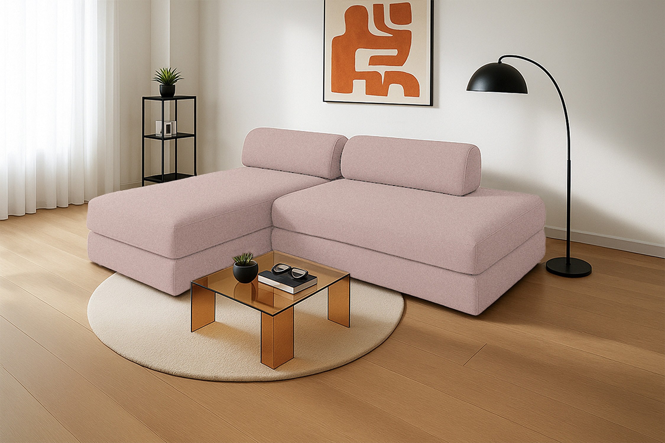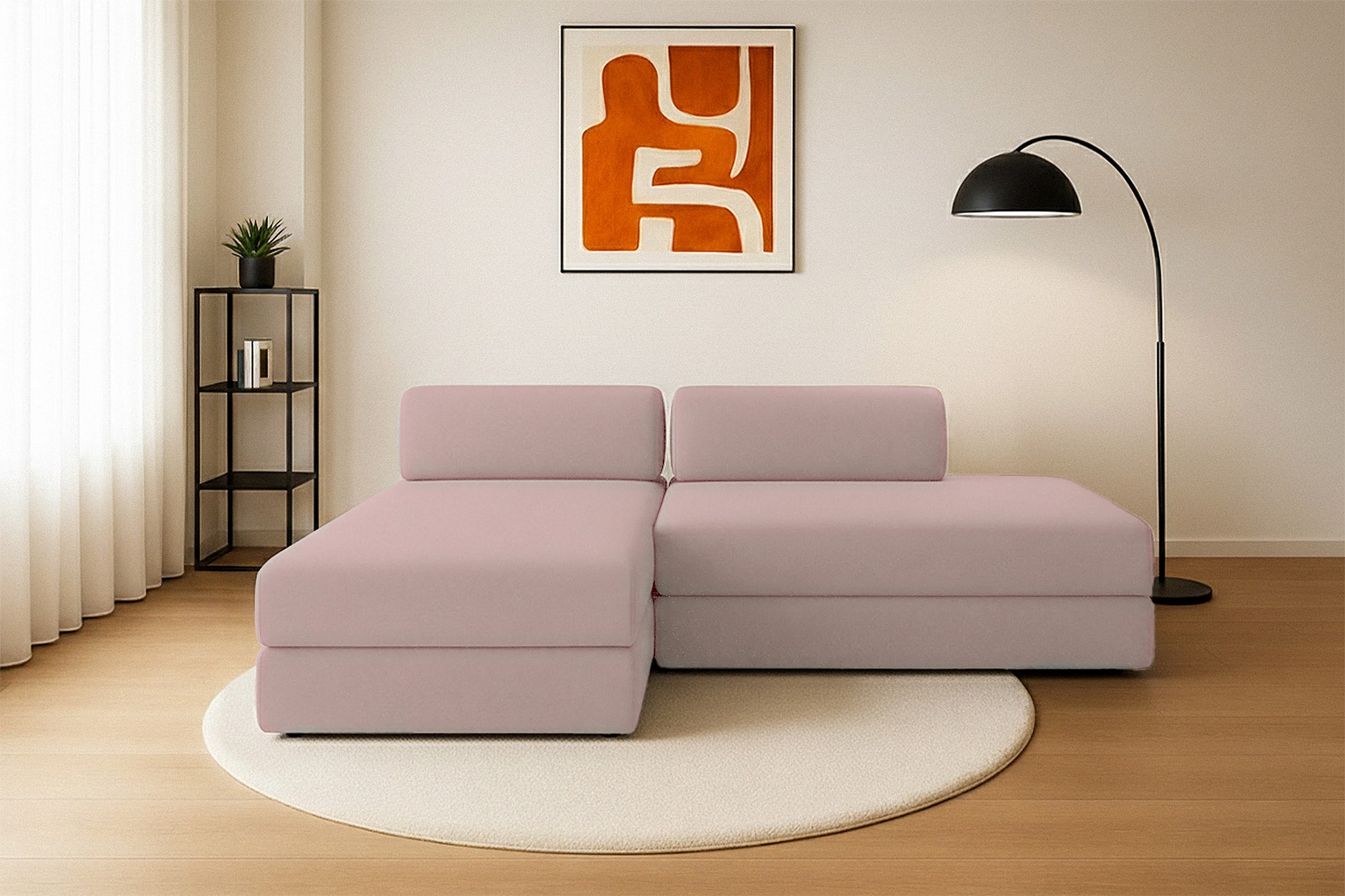 Canapé d'angle modulable et convertible 5 places - Tissu lisse - Rose