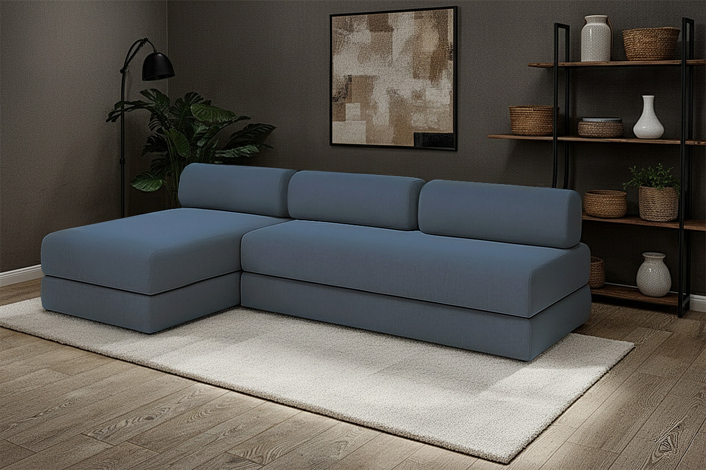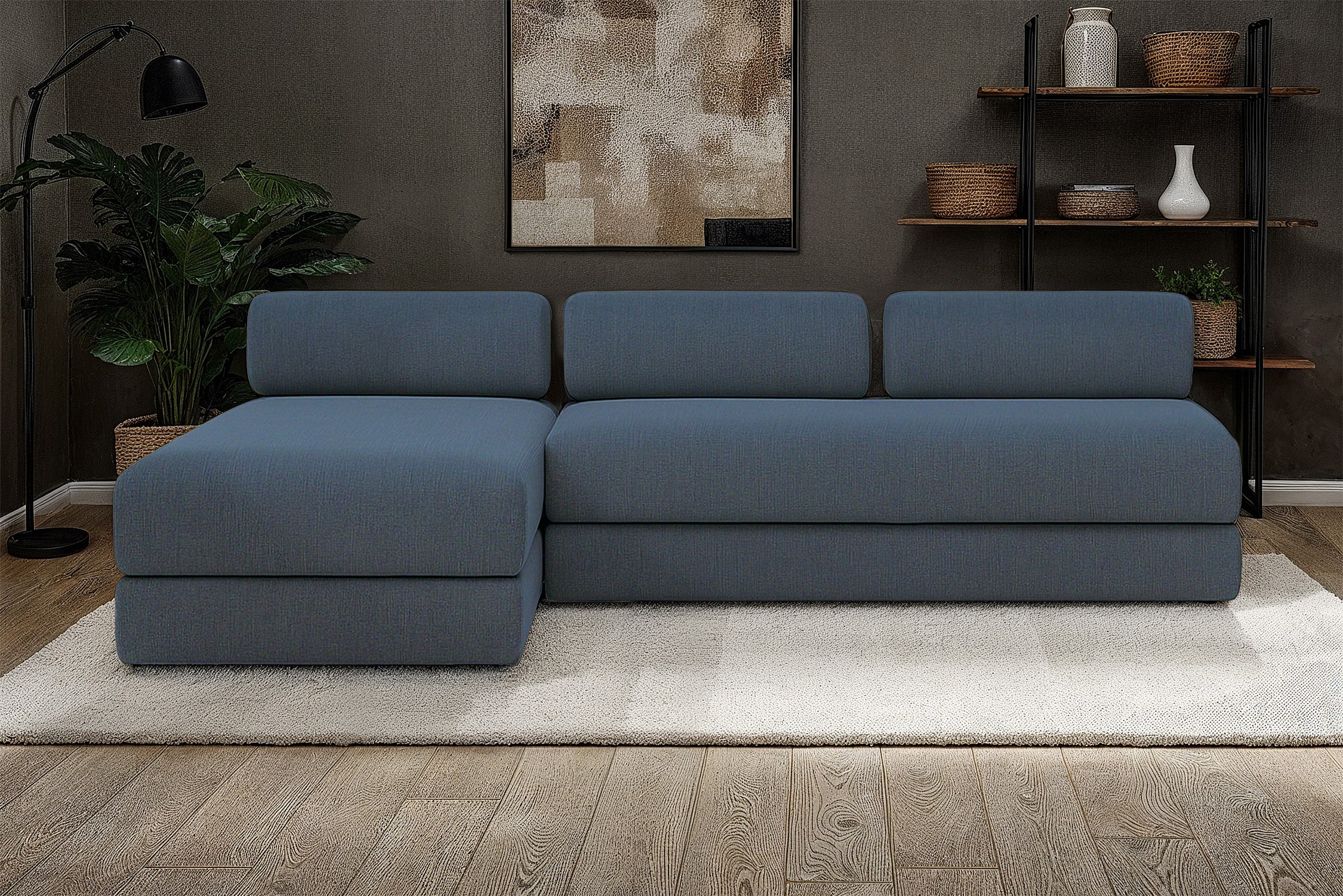 Canapé d'angle modulable et convertible 6 places - Tissu lisse - Bleu