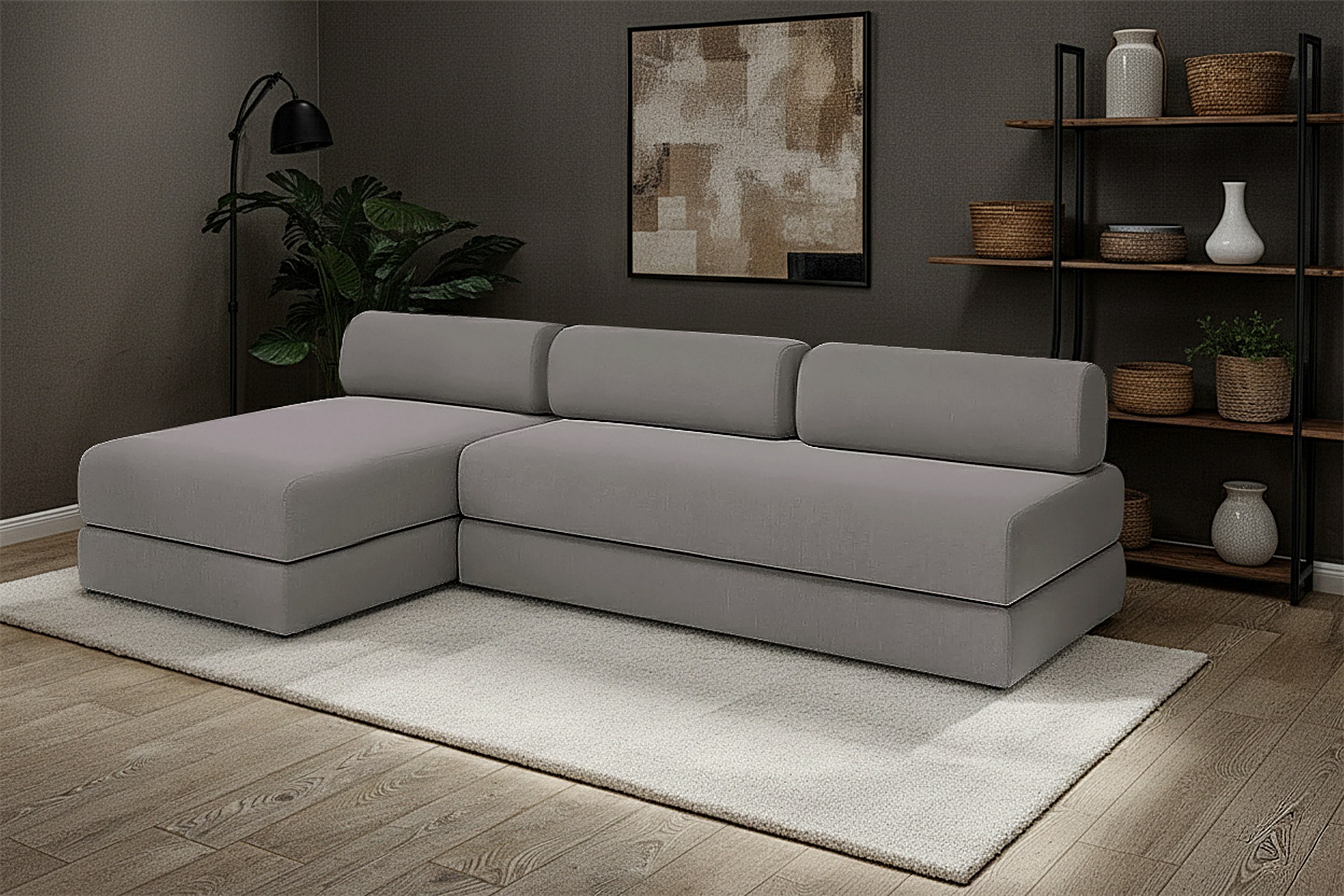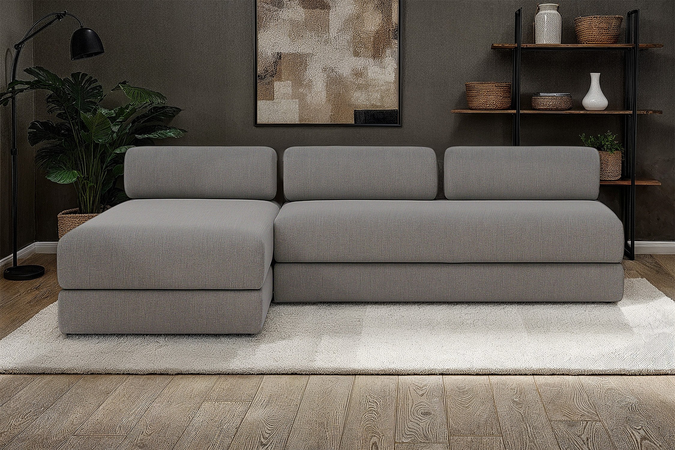 Canapé d'angle modulable et convertible 6 places - Tissu lisse - Gris