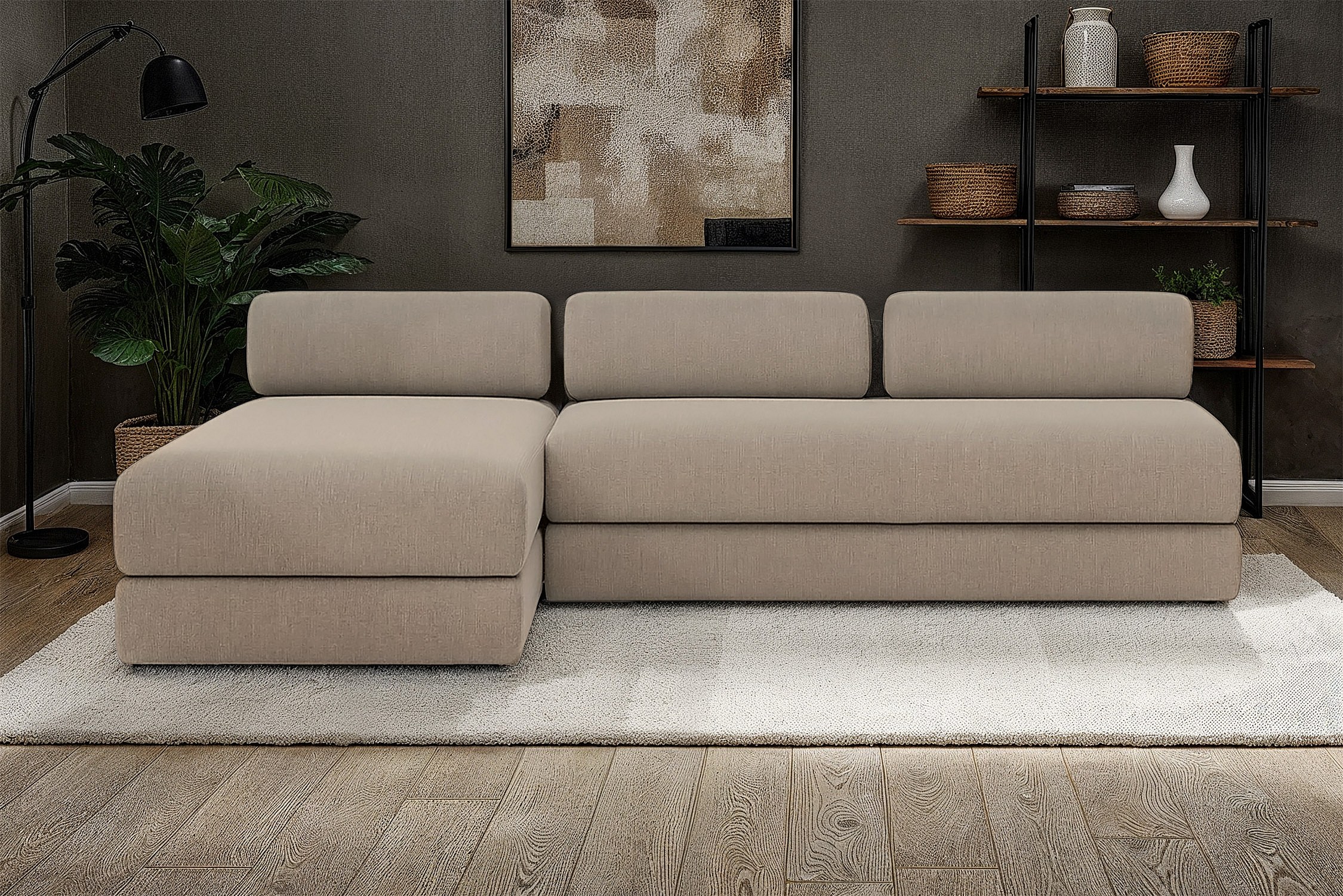 Canapé d'angle modulable et convertible 6 places - Tissu lisse - Taupe