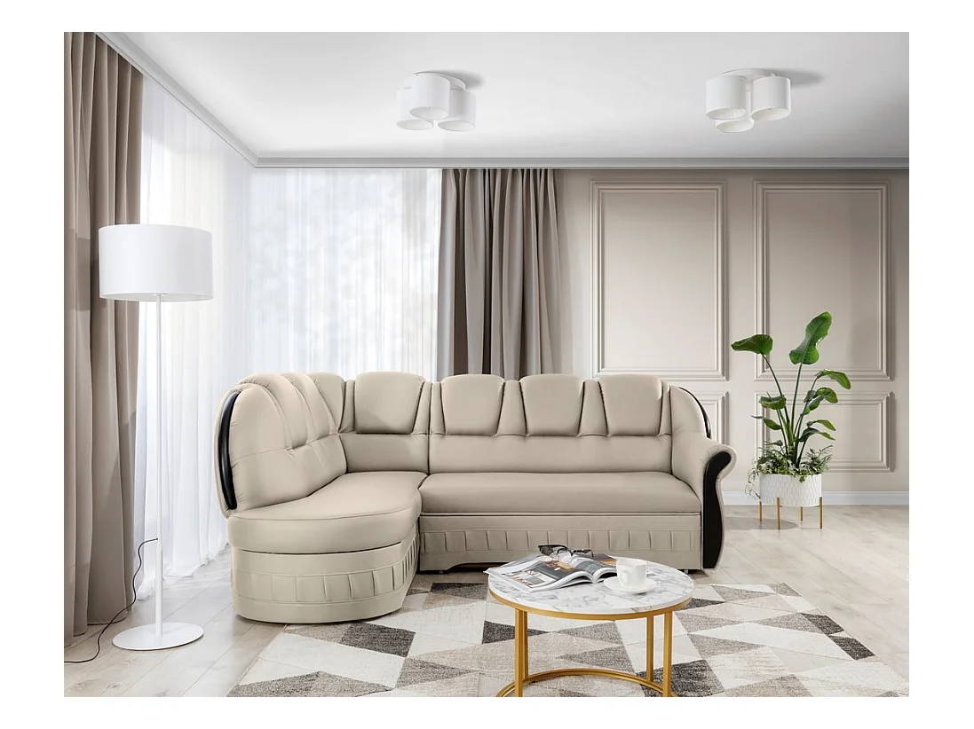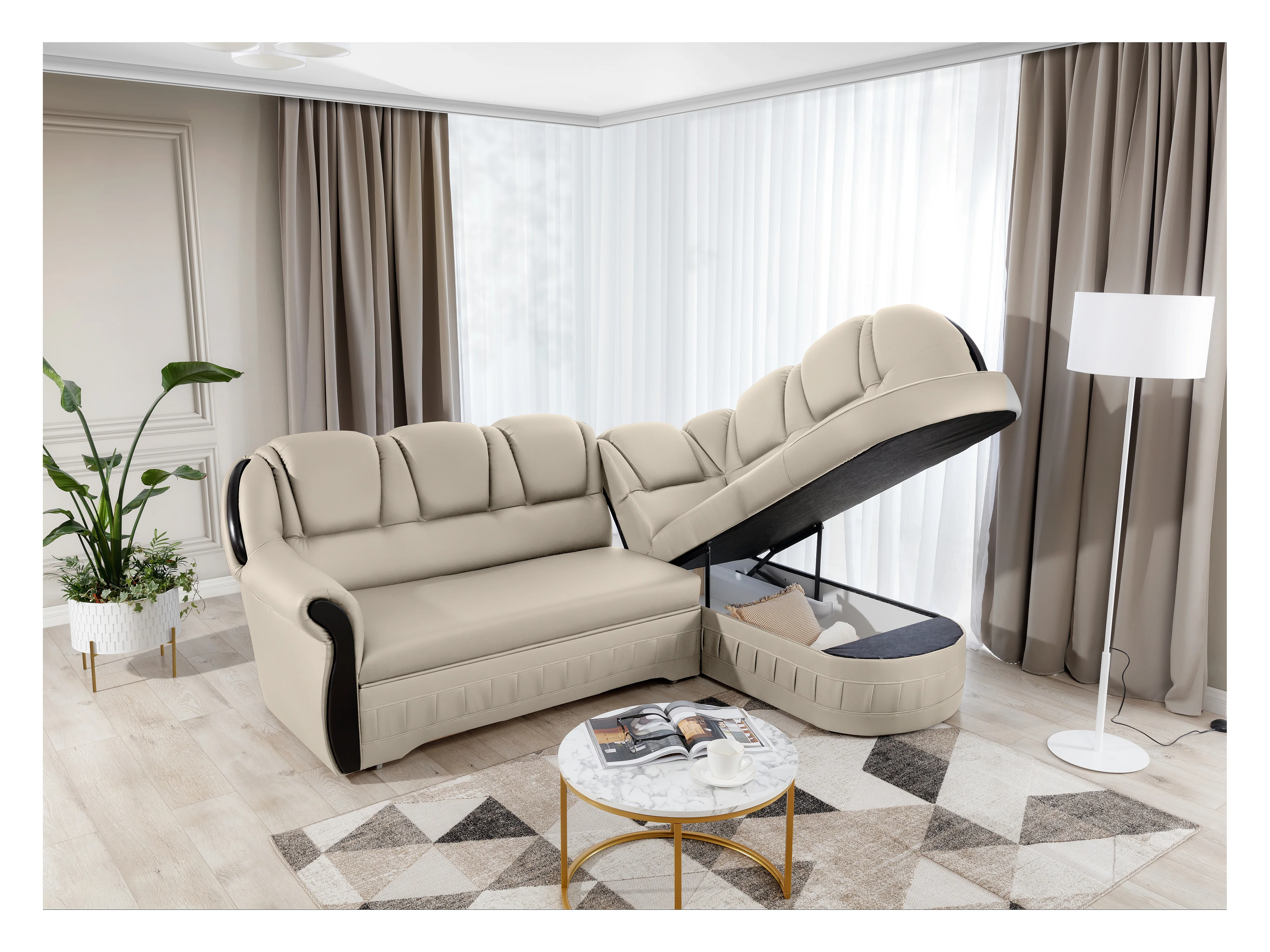 Canapé d'angle convertible avec rangement en simili cuir Majesté-Beige-angle gauche