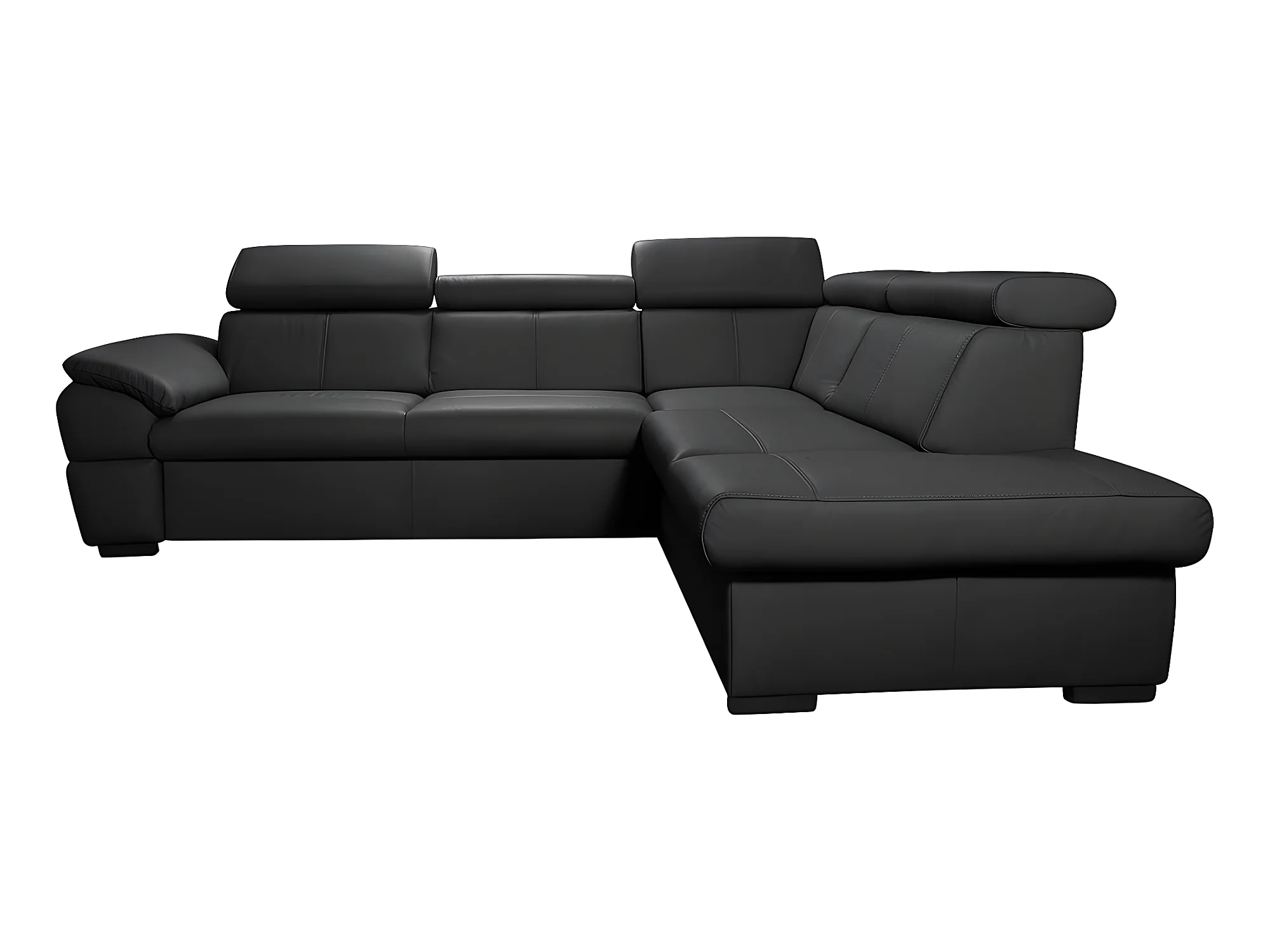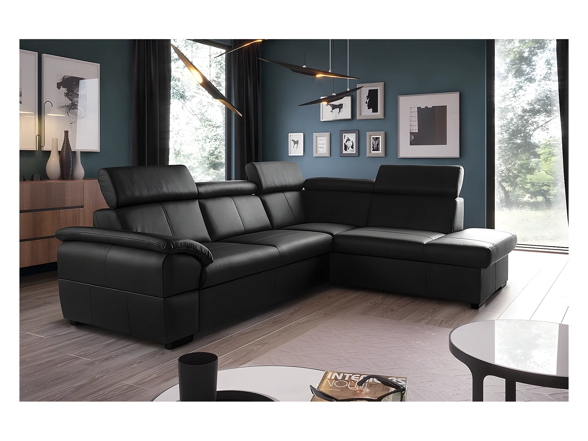Canapé d'angle convertible en cuir italien de luxe 5/6 places TONY, avec coffre, noir, angle droit