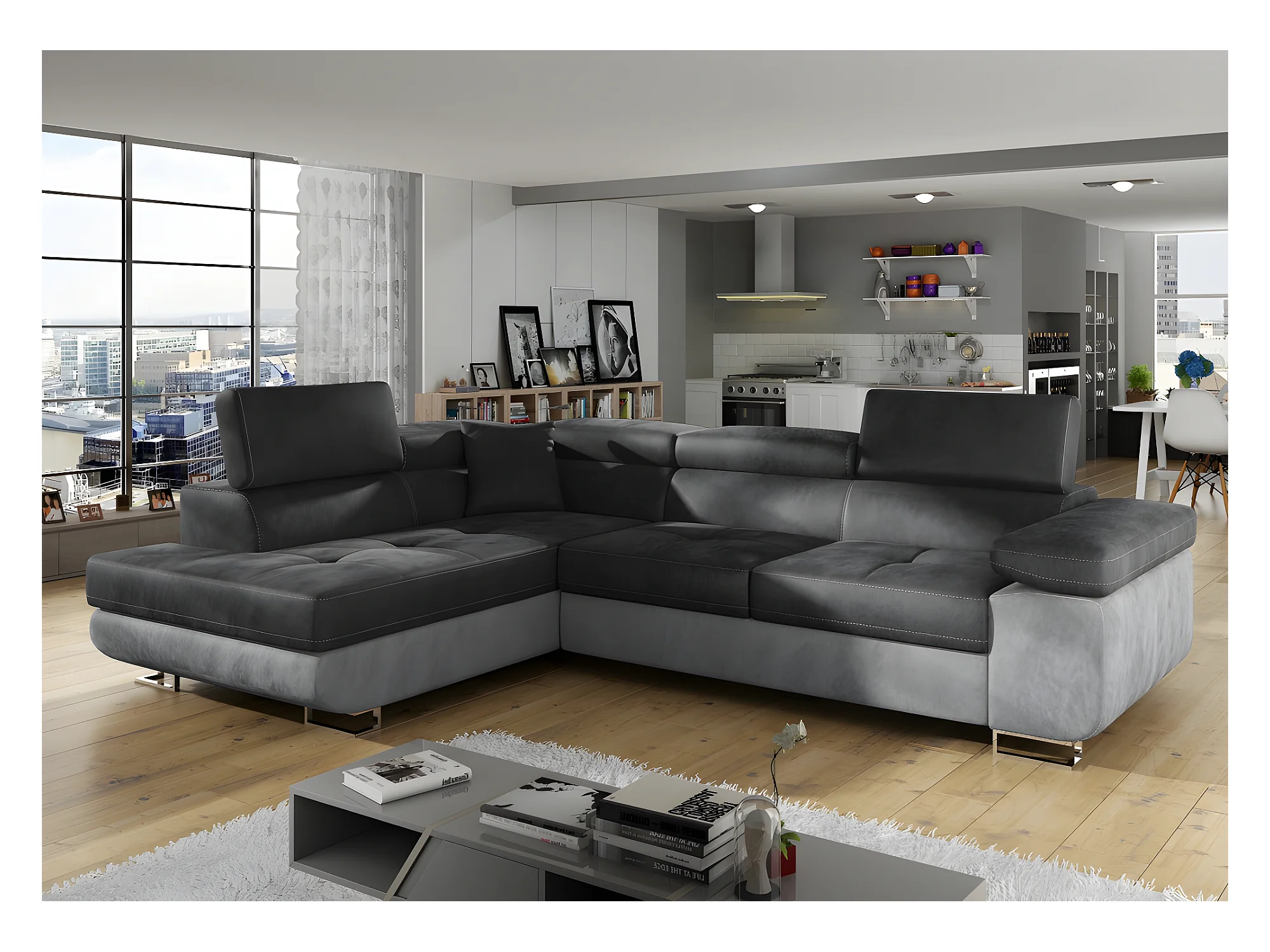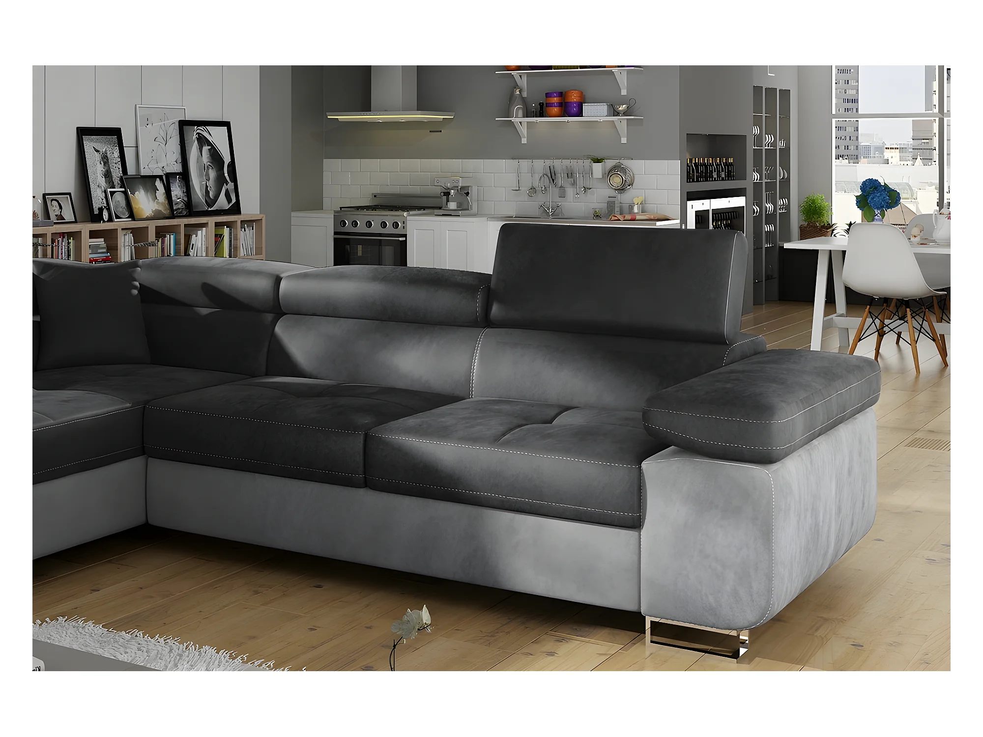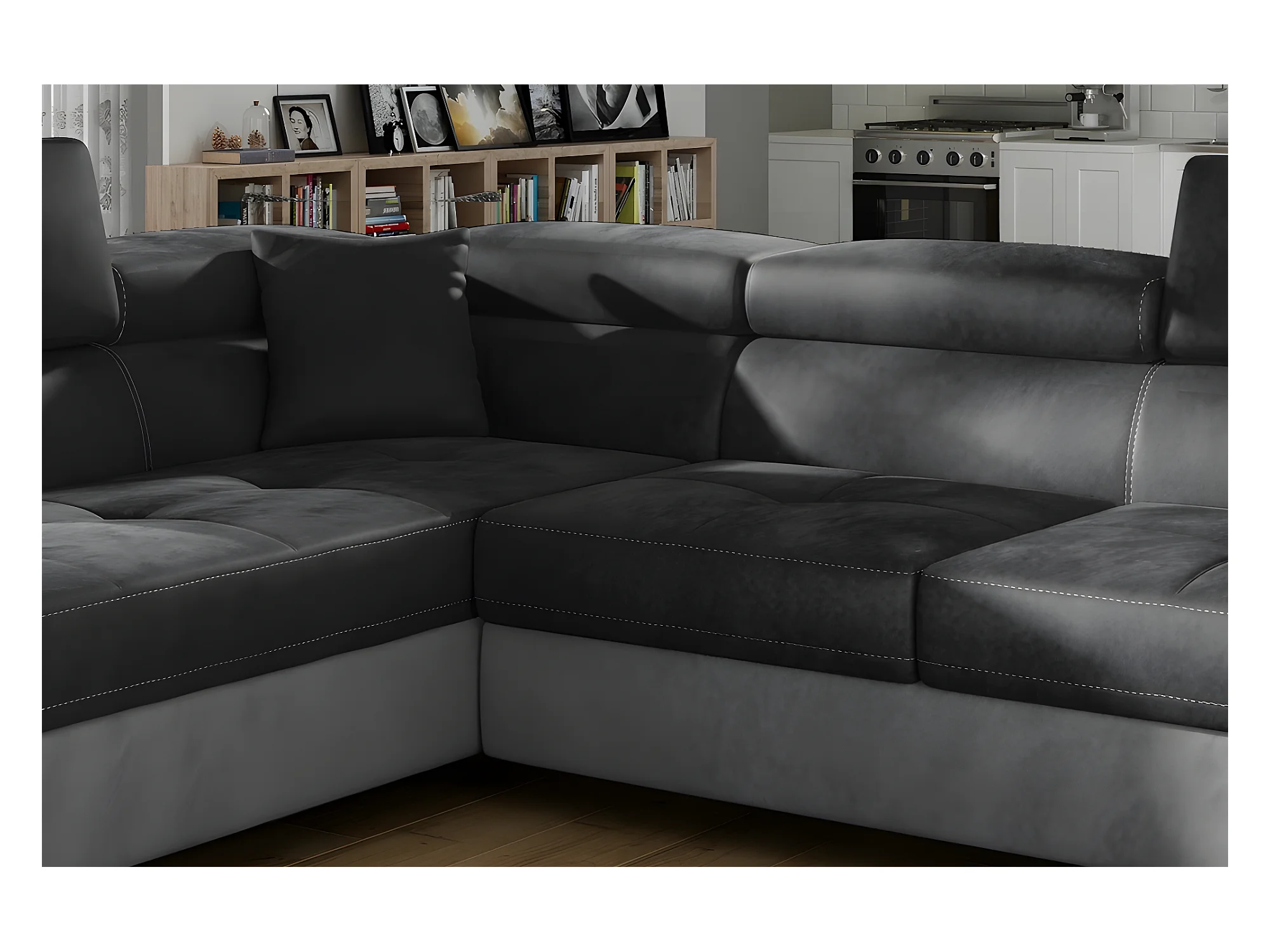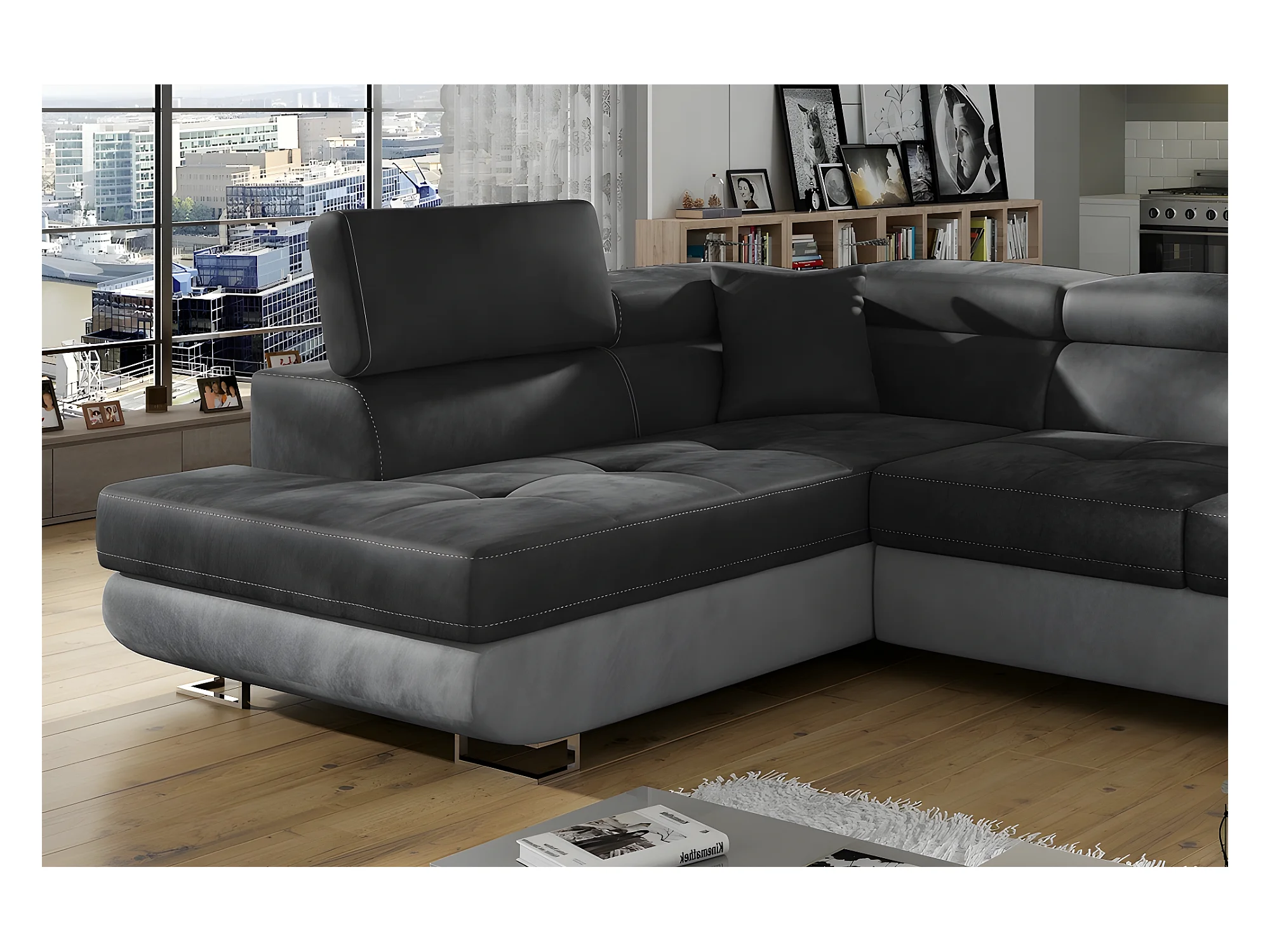 Canapé d'angle convertible en tissu luxe 5 places, avec coffre, gris foncé / gris clair, angle gauche (vu de face), ANNECY VELOURS