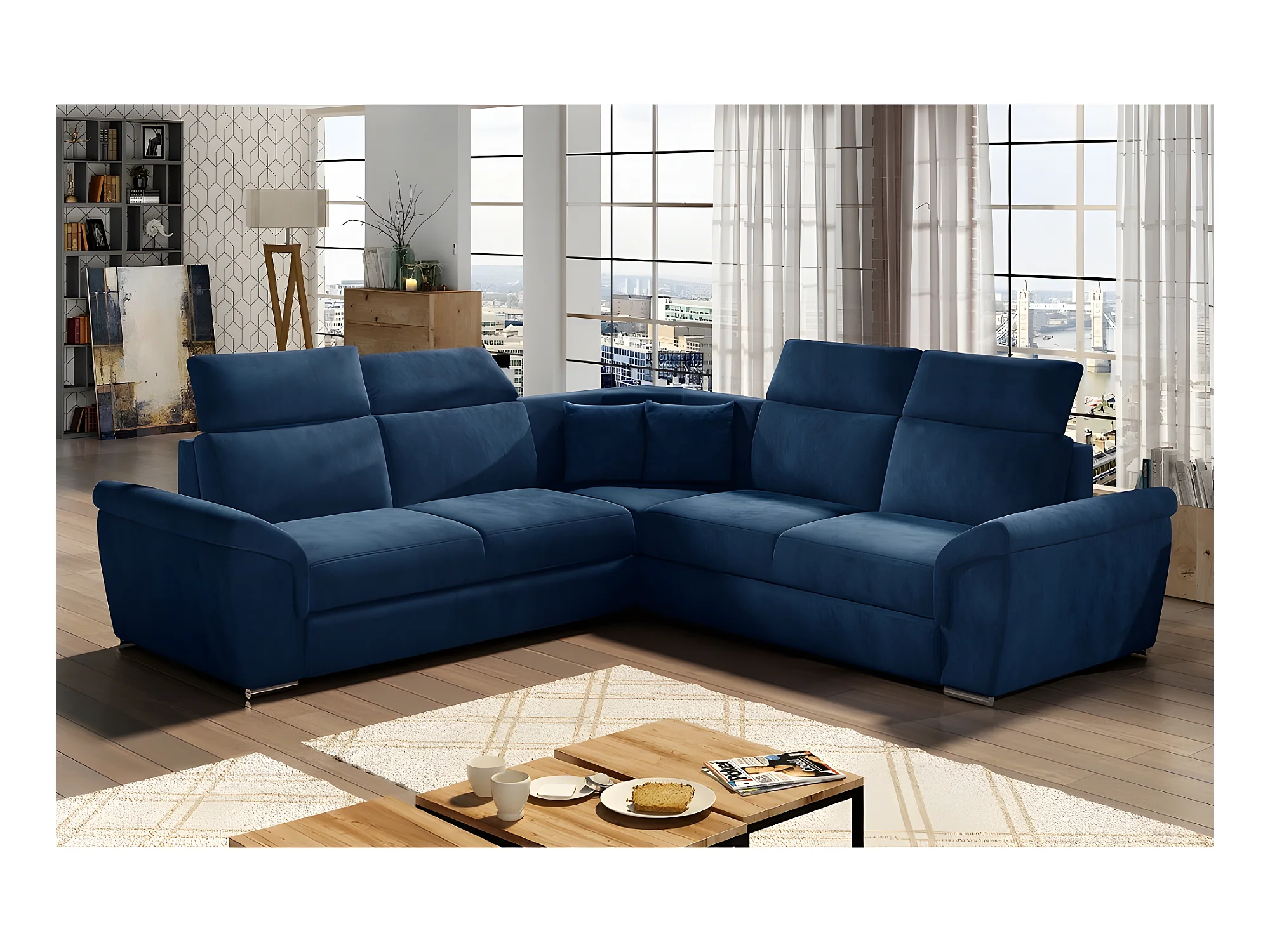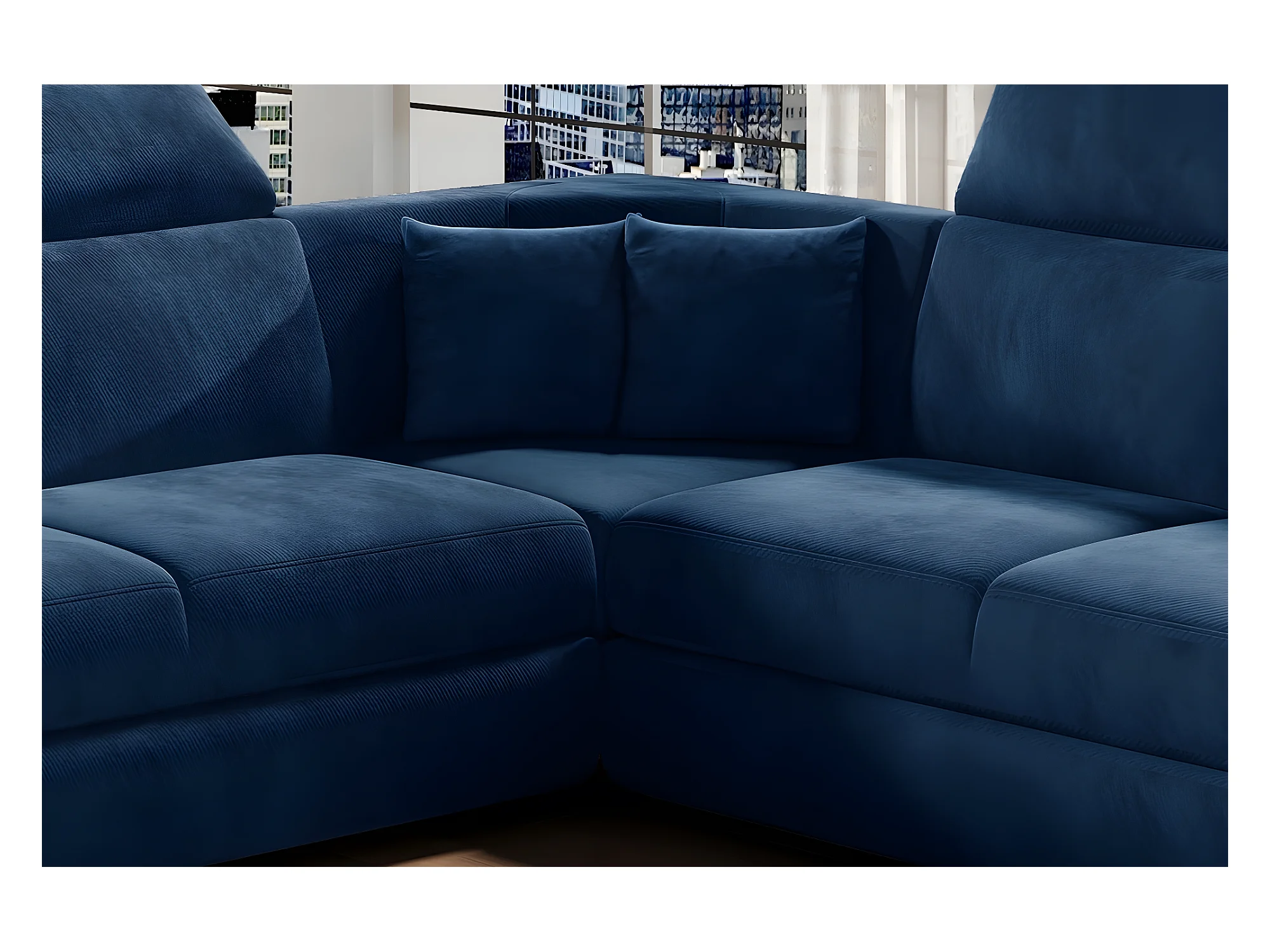 Canapé d'angle convertible - FELIPE VELOURS - en tissu luxe bleu, 5/6 places