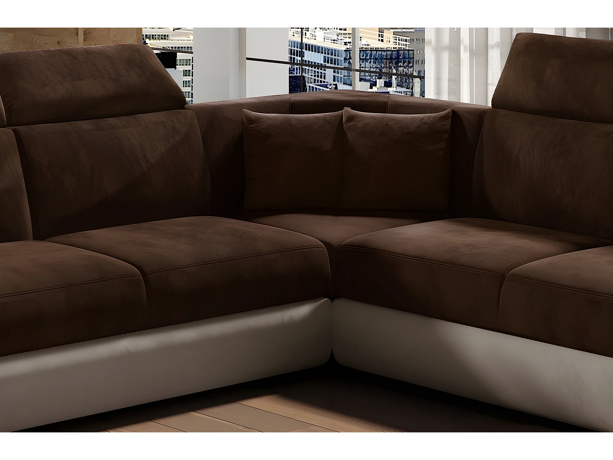 Canapé d'angle - convertible - FELIPE VELOURS - en tissu luxe chocolat et beige, 5/6 places