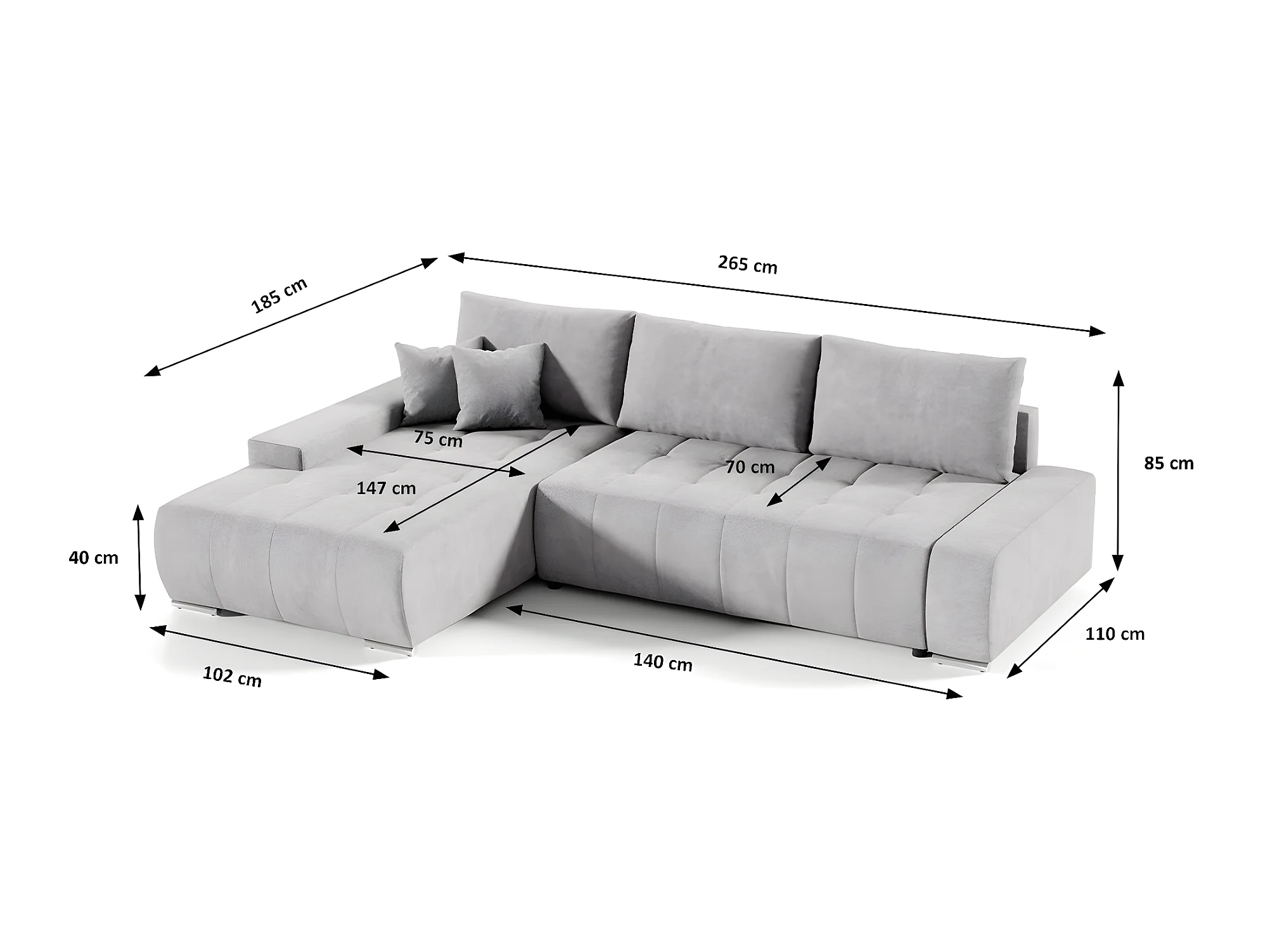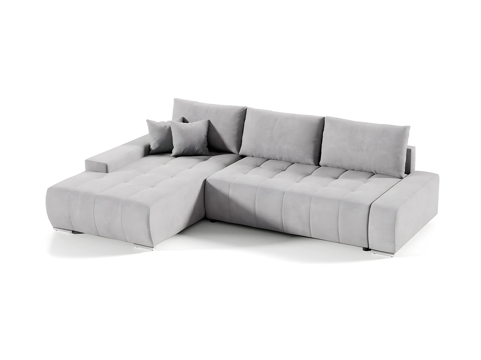 Canapé d'angle convertible gauche 4 places avec coffre Jonas Gris clair