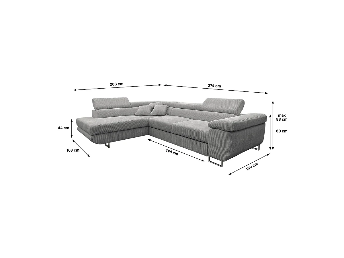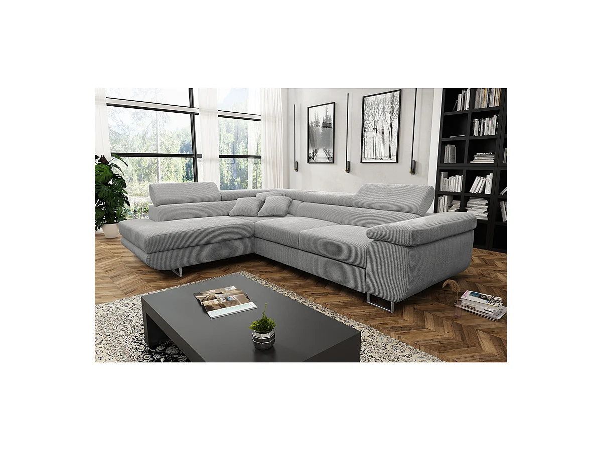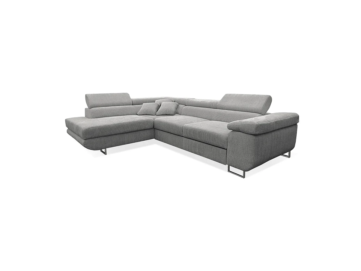 Canapé d'angle convertible gauche 4 places coffre Martin velours côtelé Gris Clair