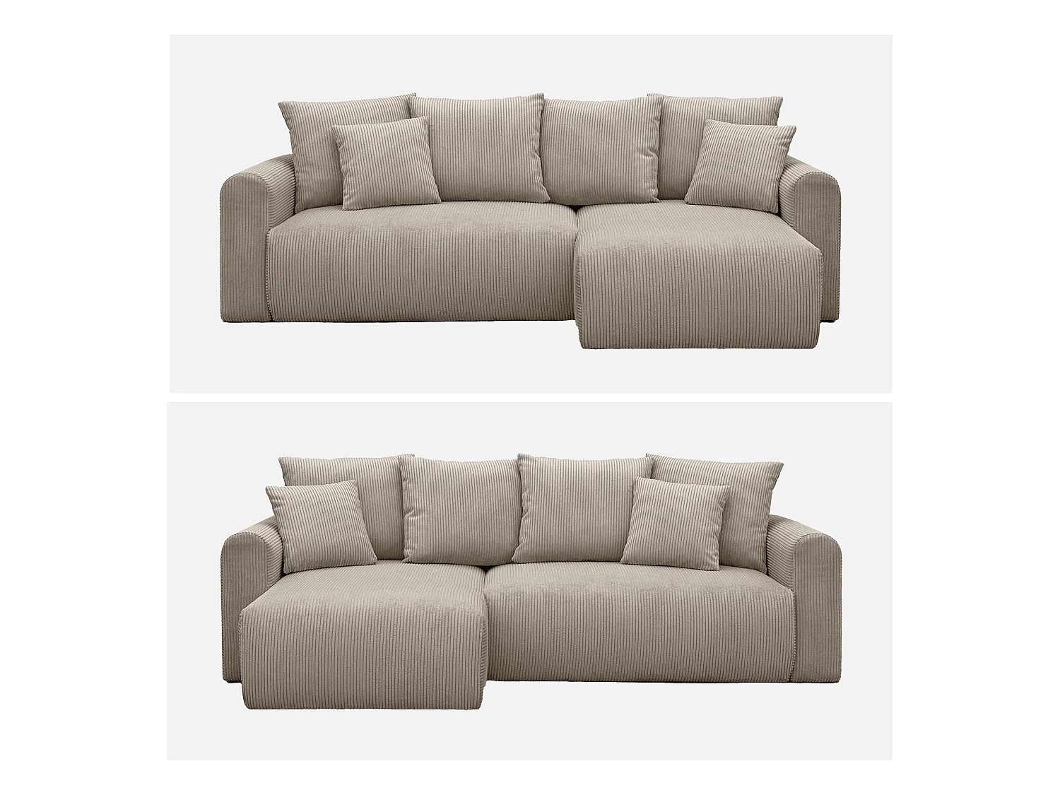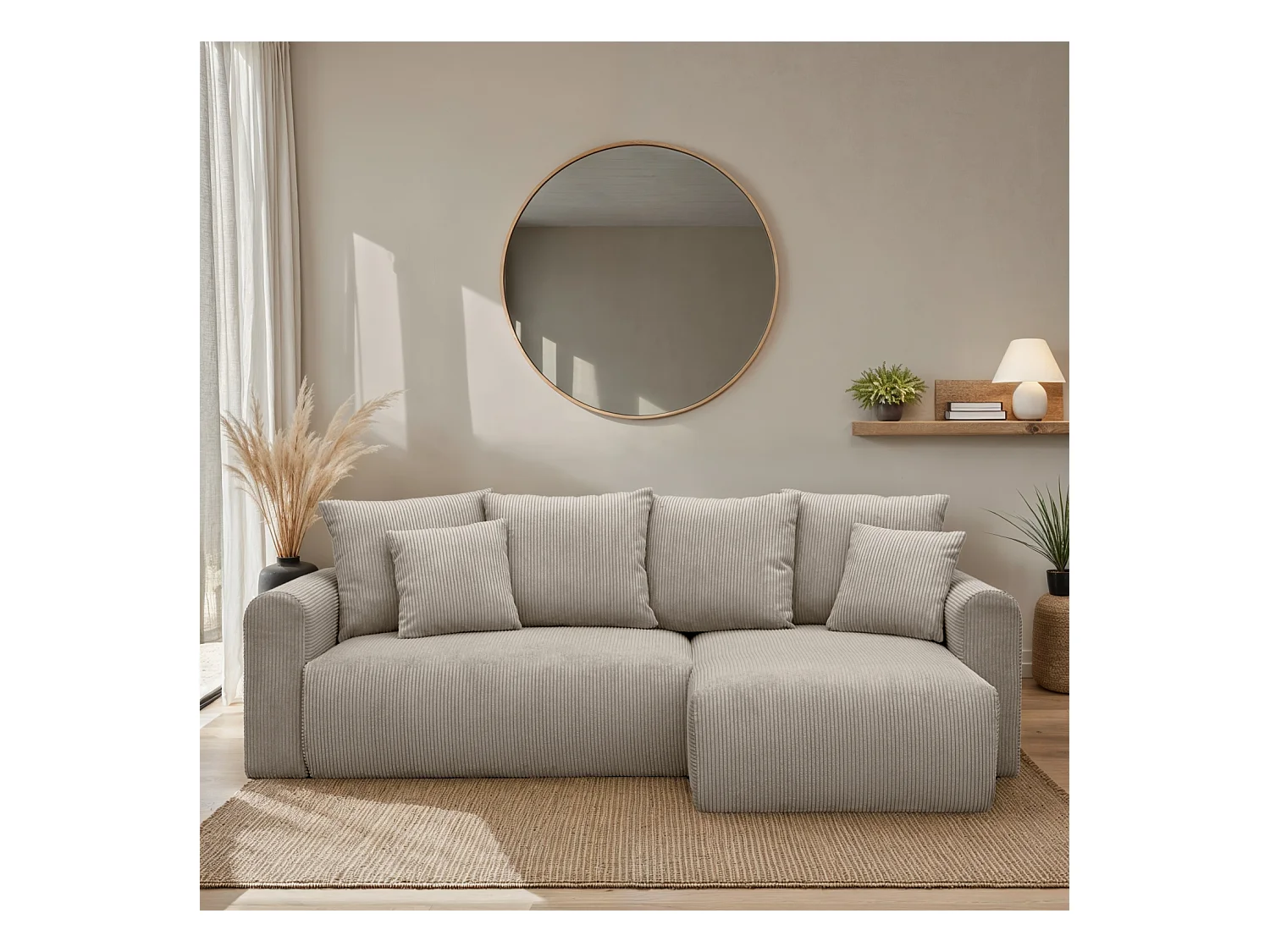 Canapé d'angle convertible réversible 3 places velours côtelé taupe avec coffre de rangement - Almo