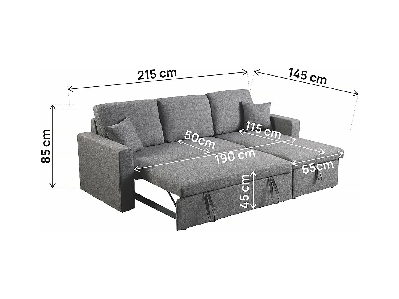 Canapé d'angle convertible/ réversible avec coffre "Alain II" - 3 places - Gris clair