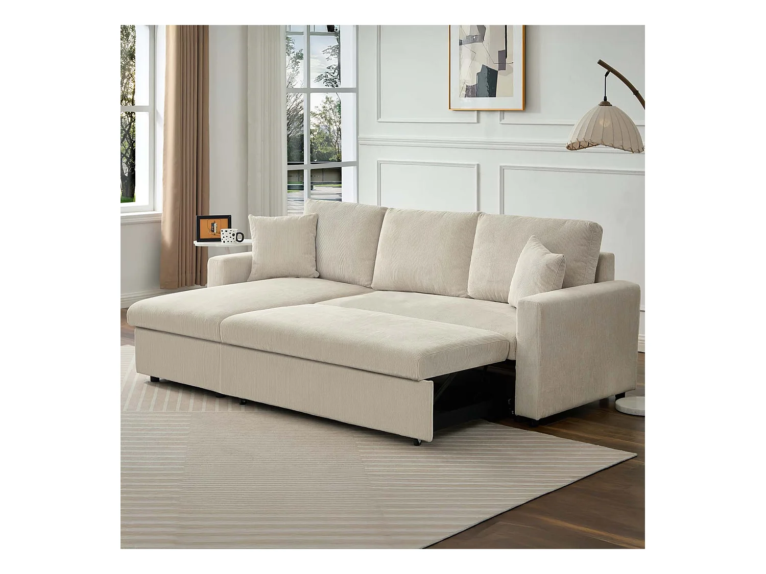 Canapé d'angle convertible Rico velours côtelé Beige
