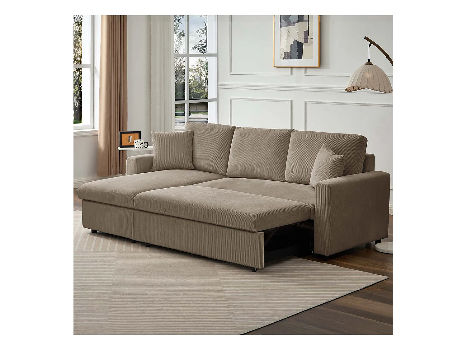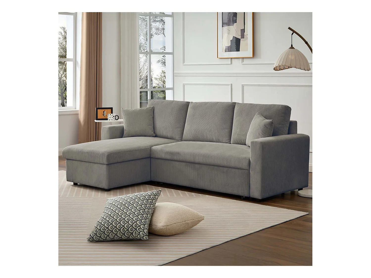 Canapé d'angle convertible Rico velours côtelé Taupe