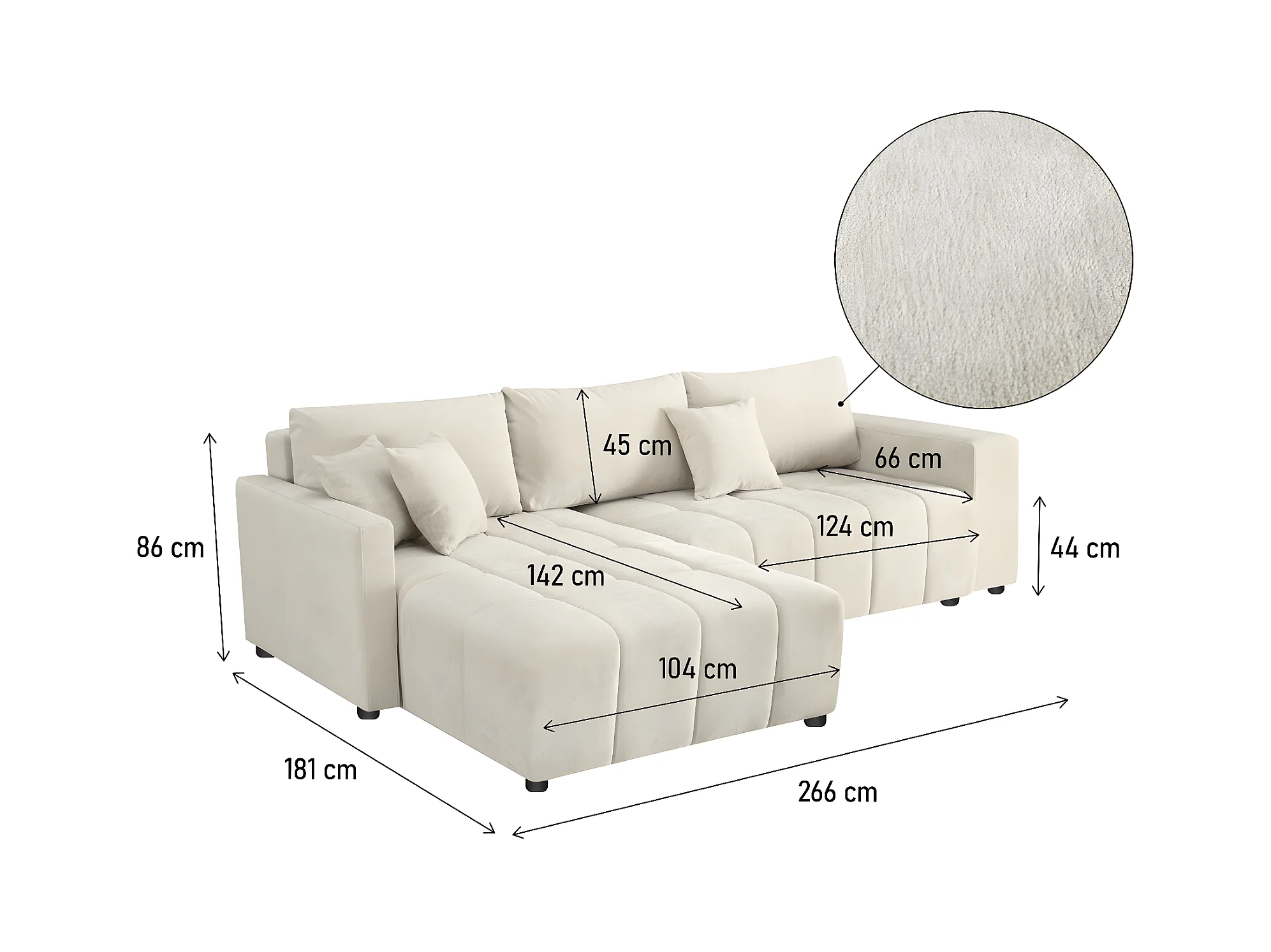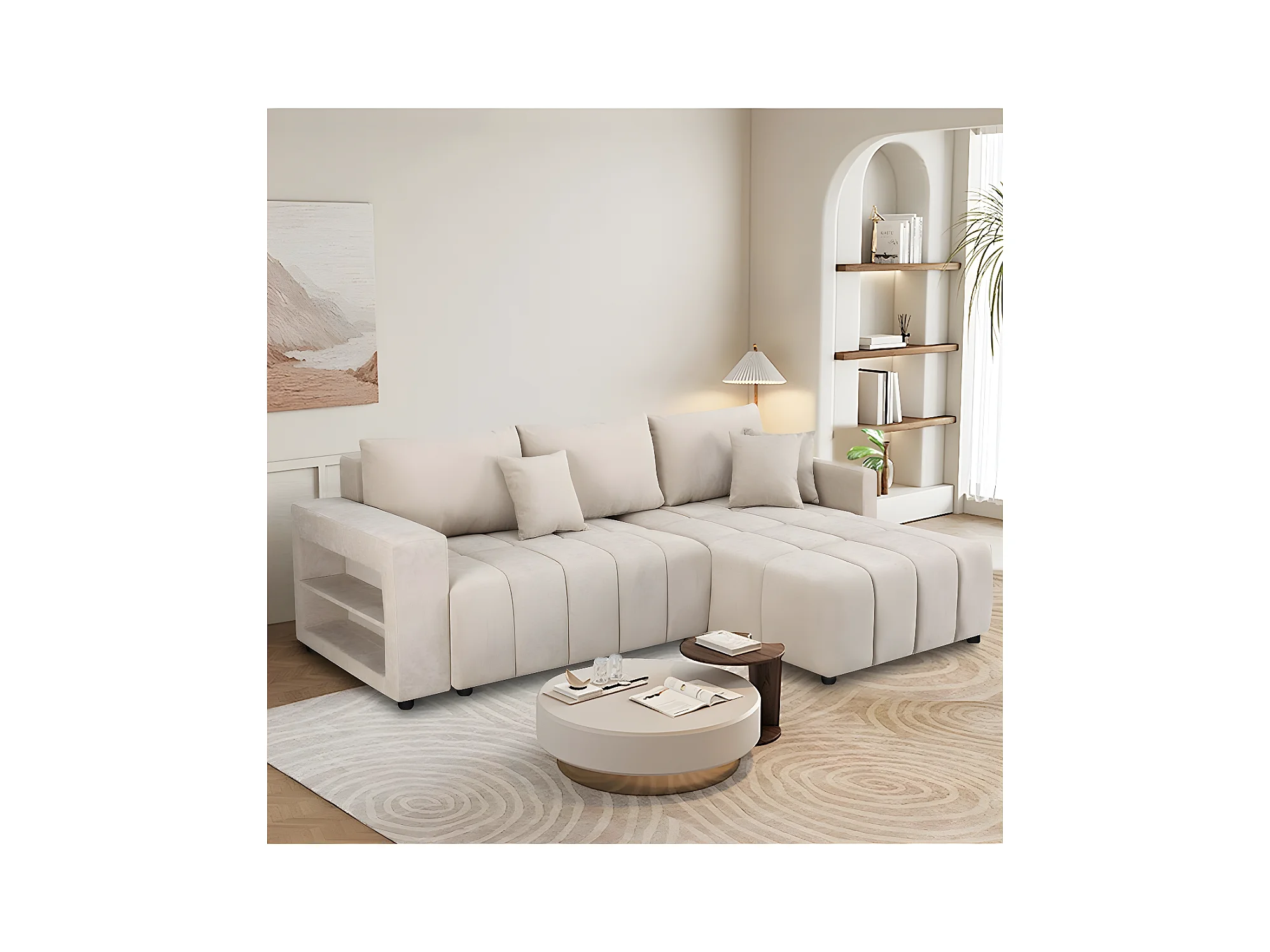 Canapé d'angle convertible tissu chenille 3 places - "Trocadero" - Beige