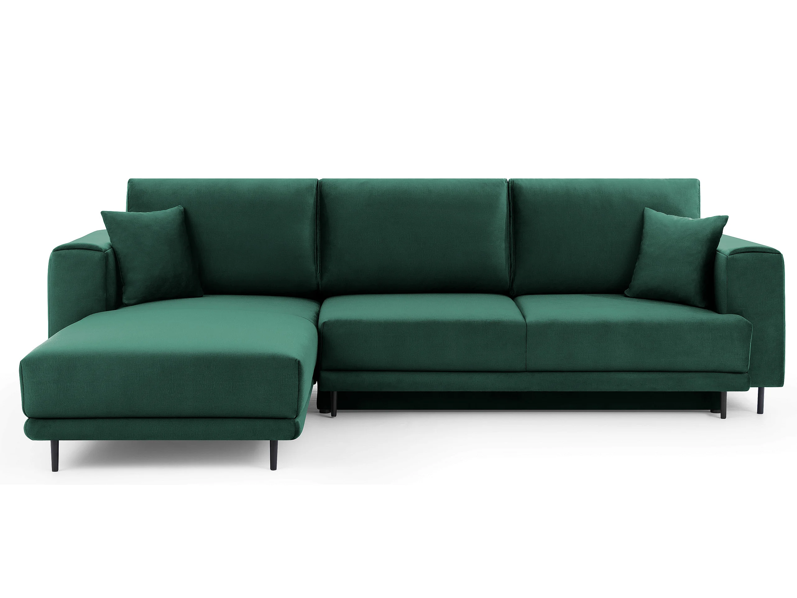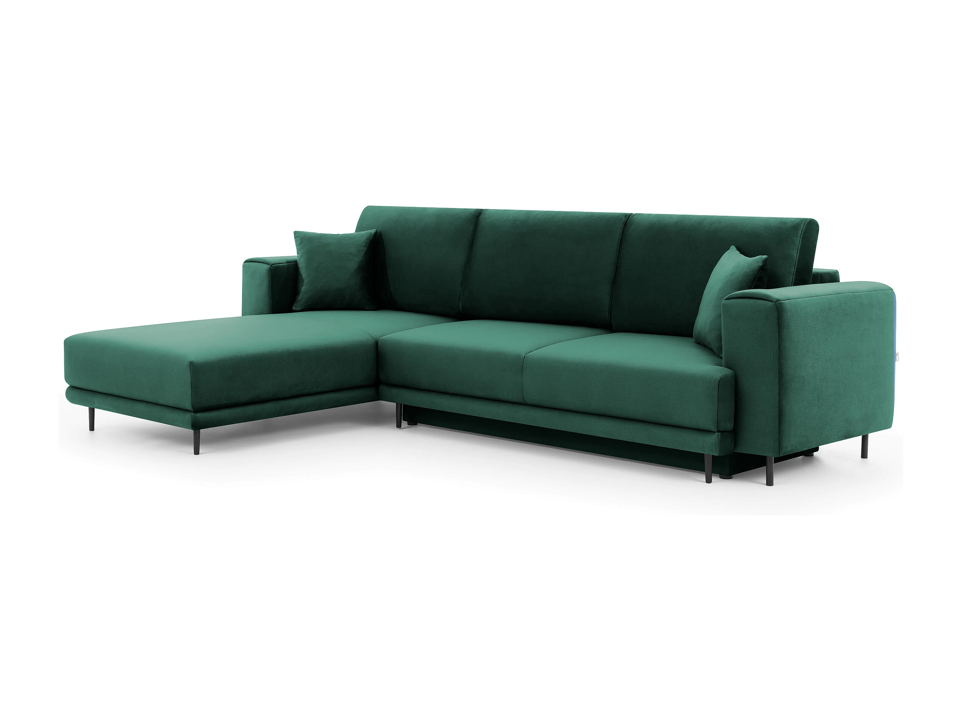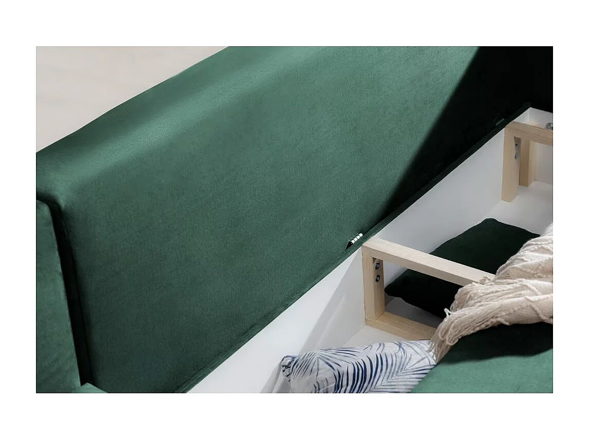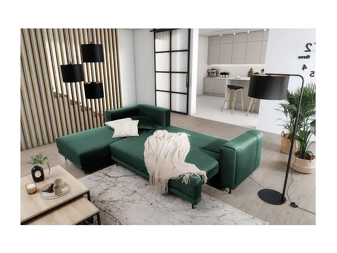 Canapé d'angle convertible velours DAVINA - Coffre et pieds métal noir-Vert foncé-angle gauche