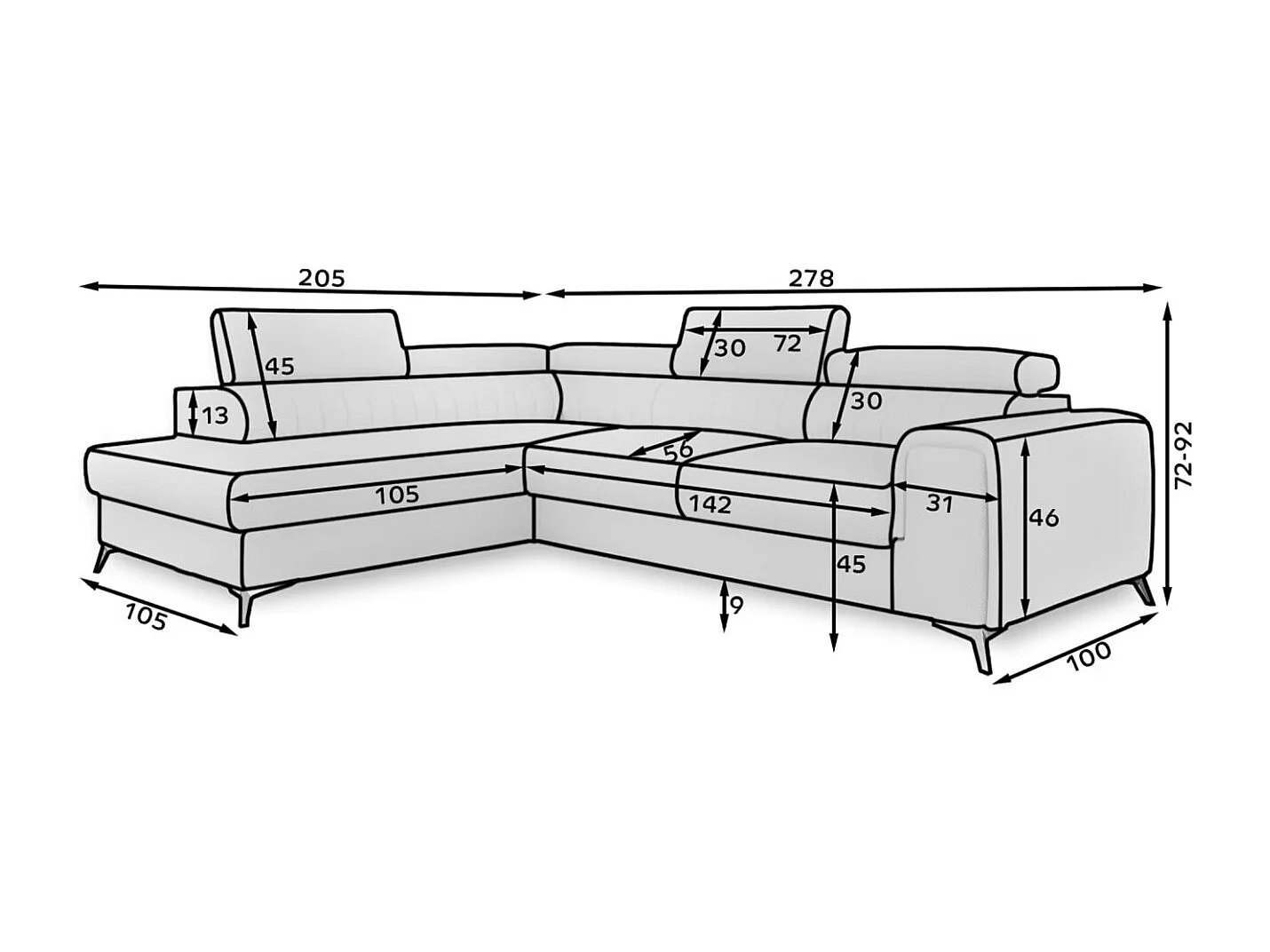 Canapé d'angle convertible velours têtière réglables GRENKY - Coffre, pieds acier chromé-Vieux rose-angle droit
