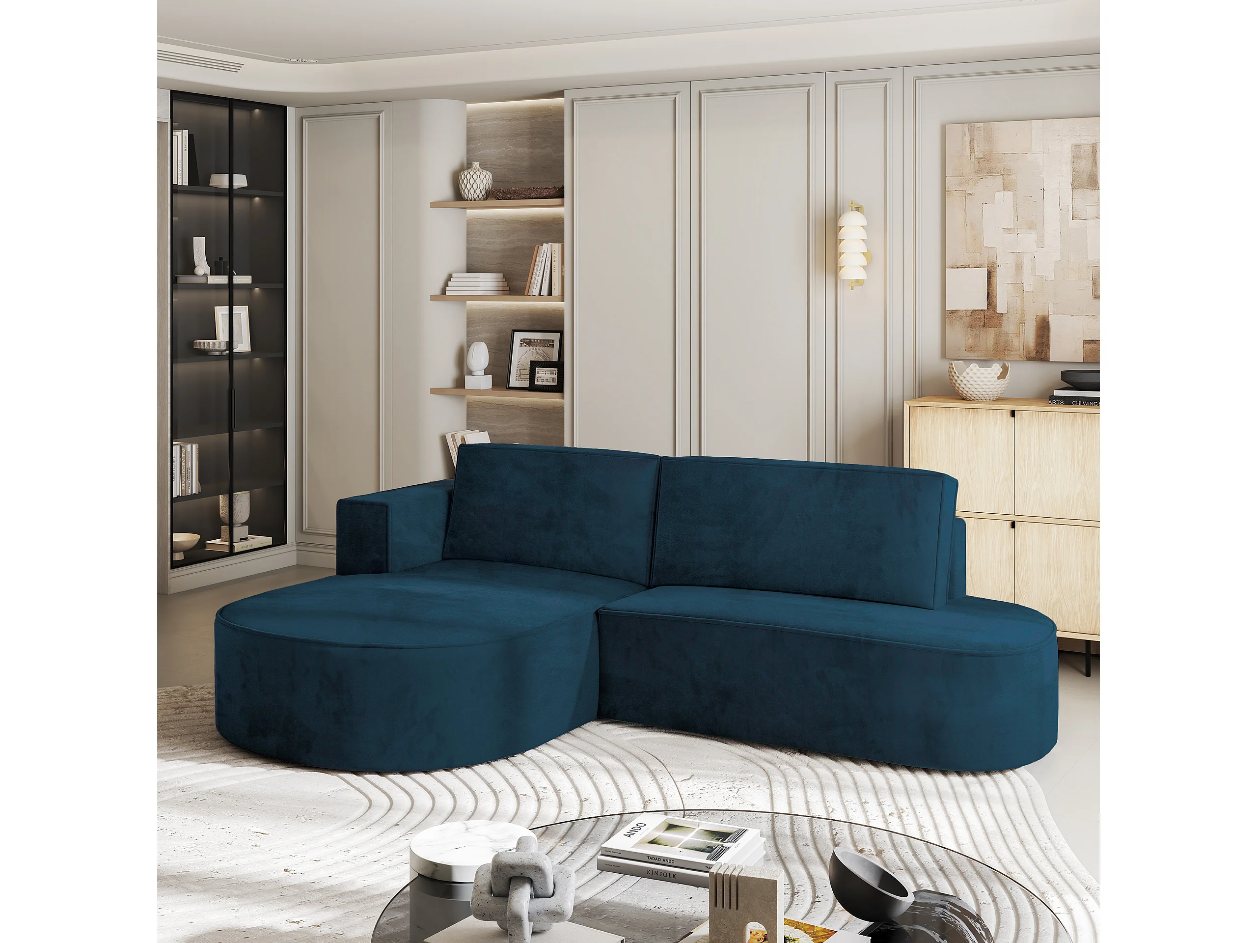 Canapé d'angle CORTIO Bleu en velours avec fonction de couchage