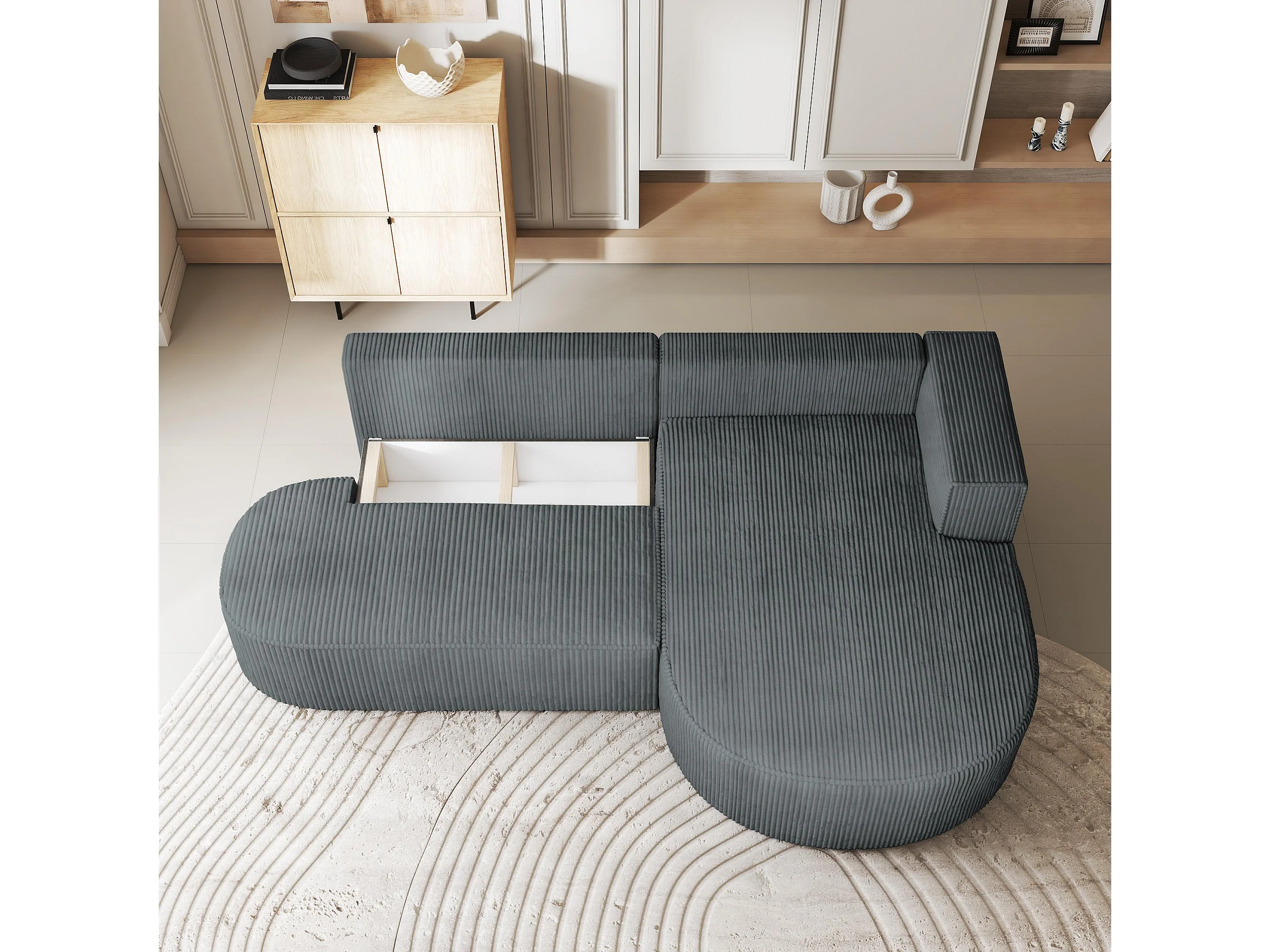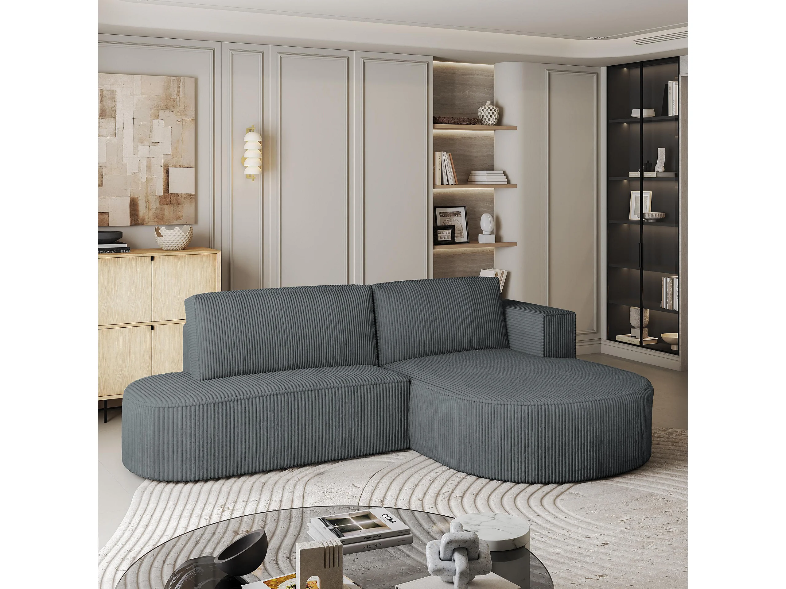 Canapé d'angle CORTIO Gris en velours côtelé avec fonction de couchage