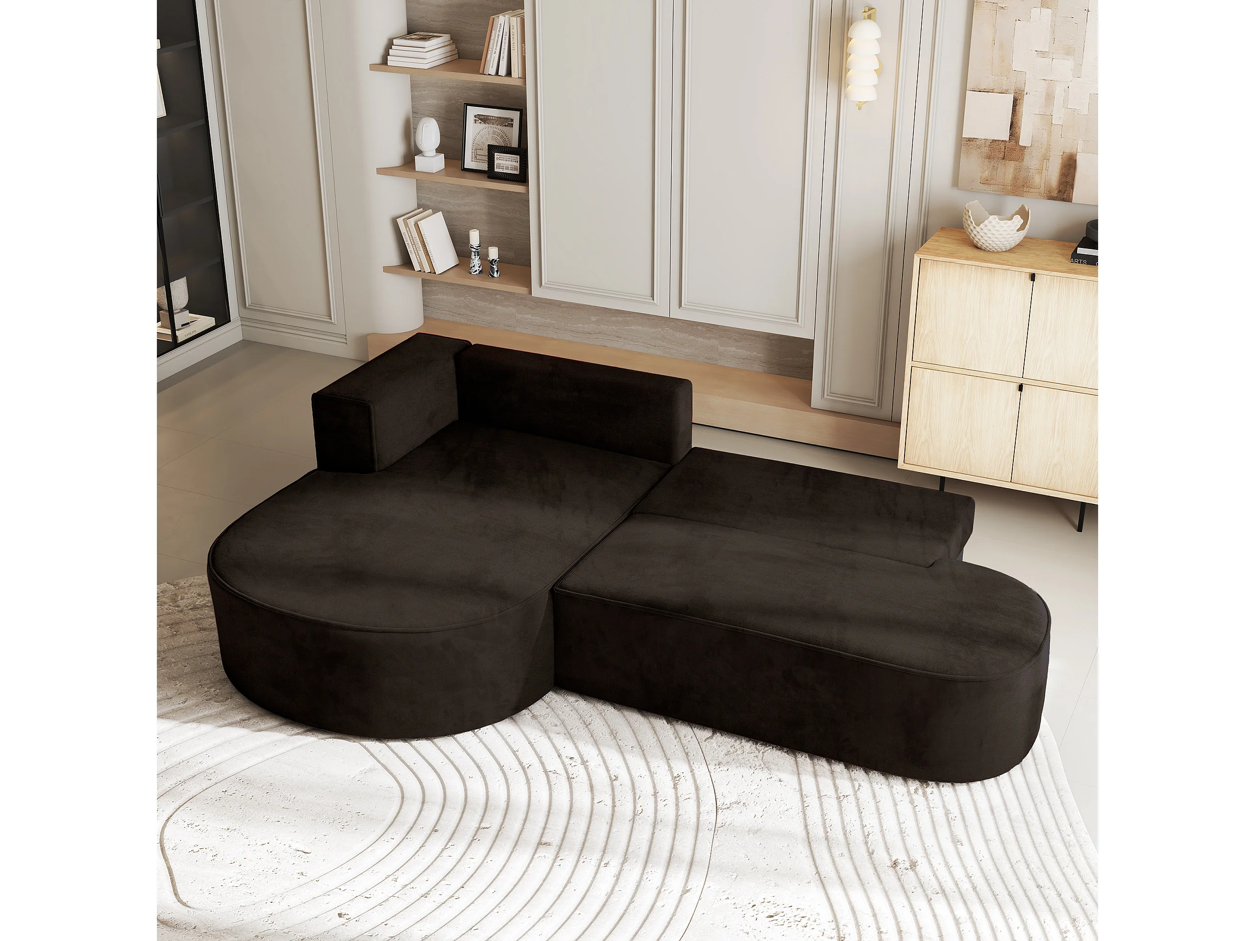 Canapé d'angle CORTIO Marron en velours avec fonction de couchage