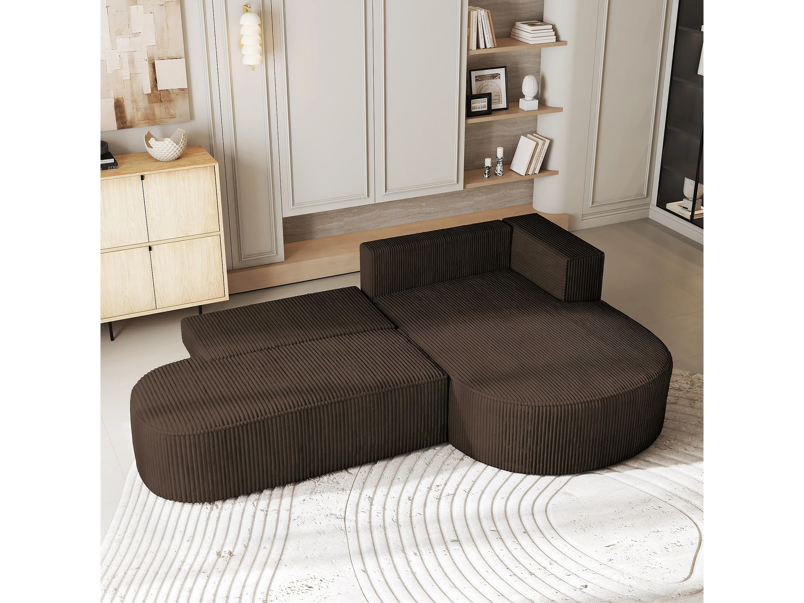 Canapé d'angle CORTIO Marron en velours côtelé avec fonction de couchage