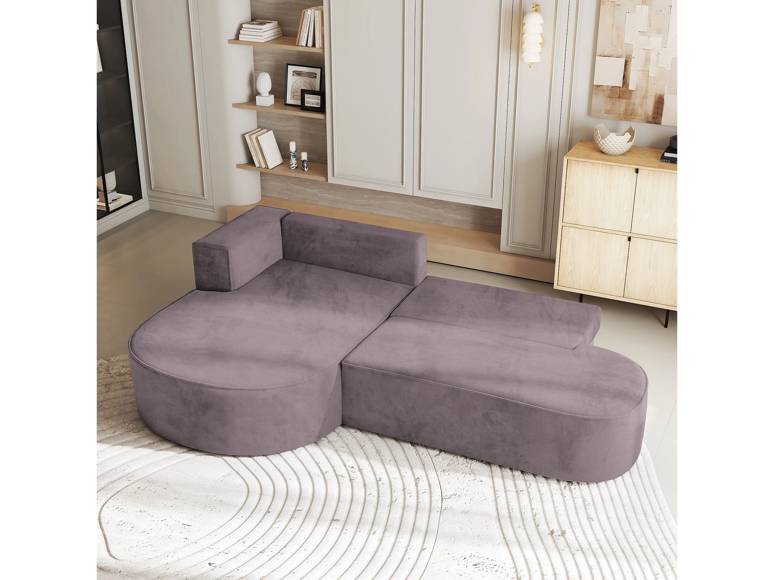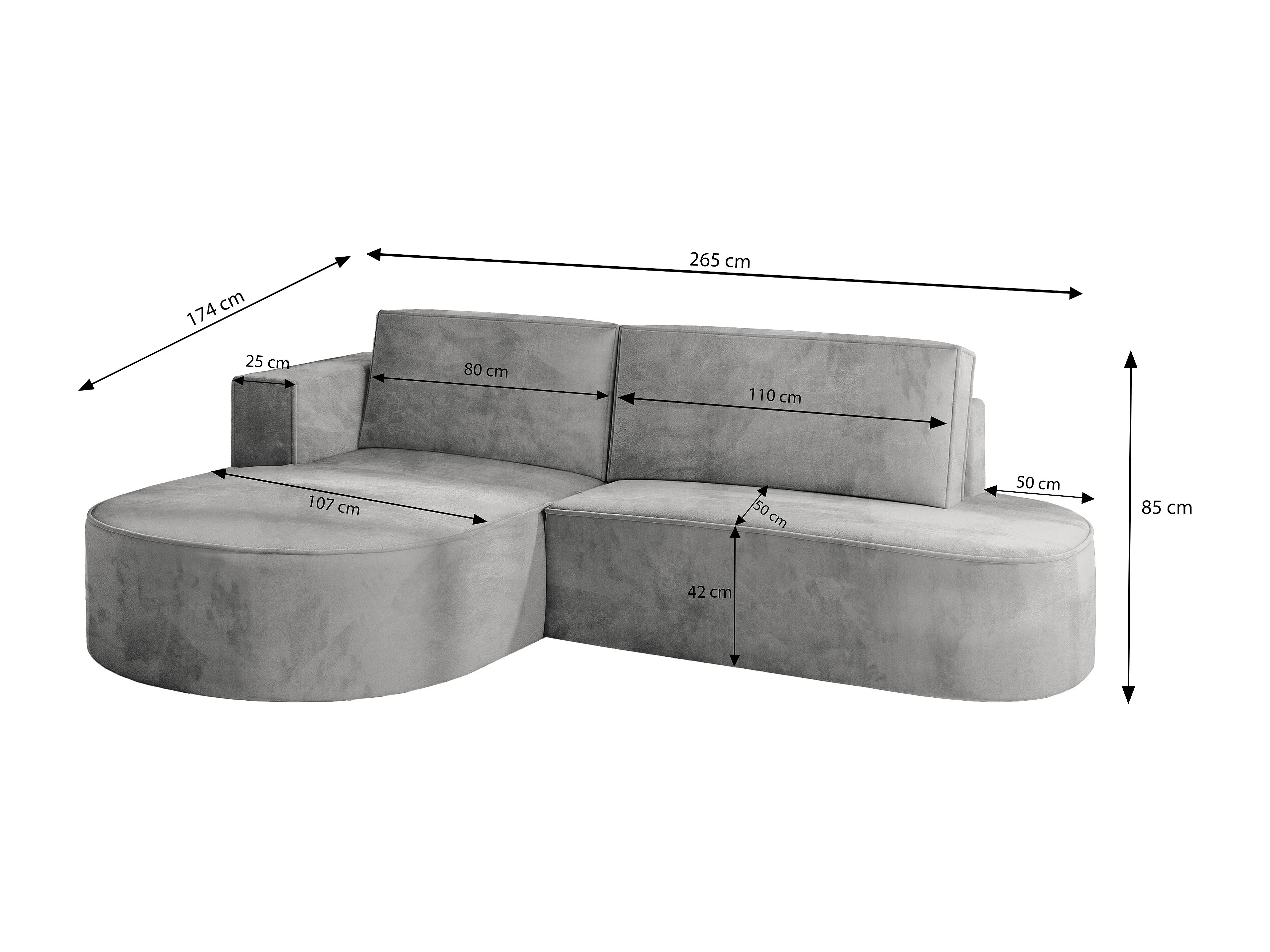 Canapé d'angle CORTIO Parme en velours avec fonction de couchage