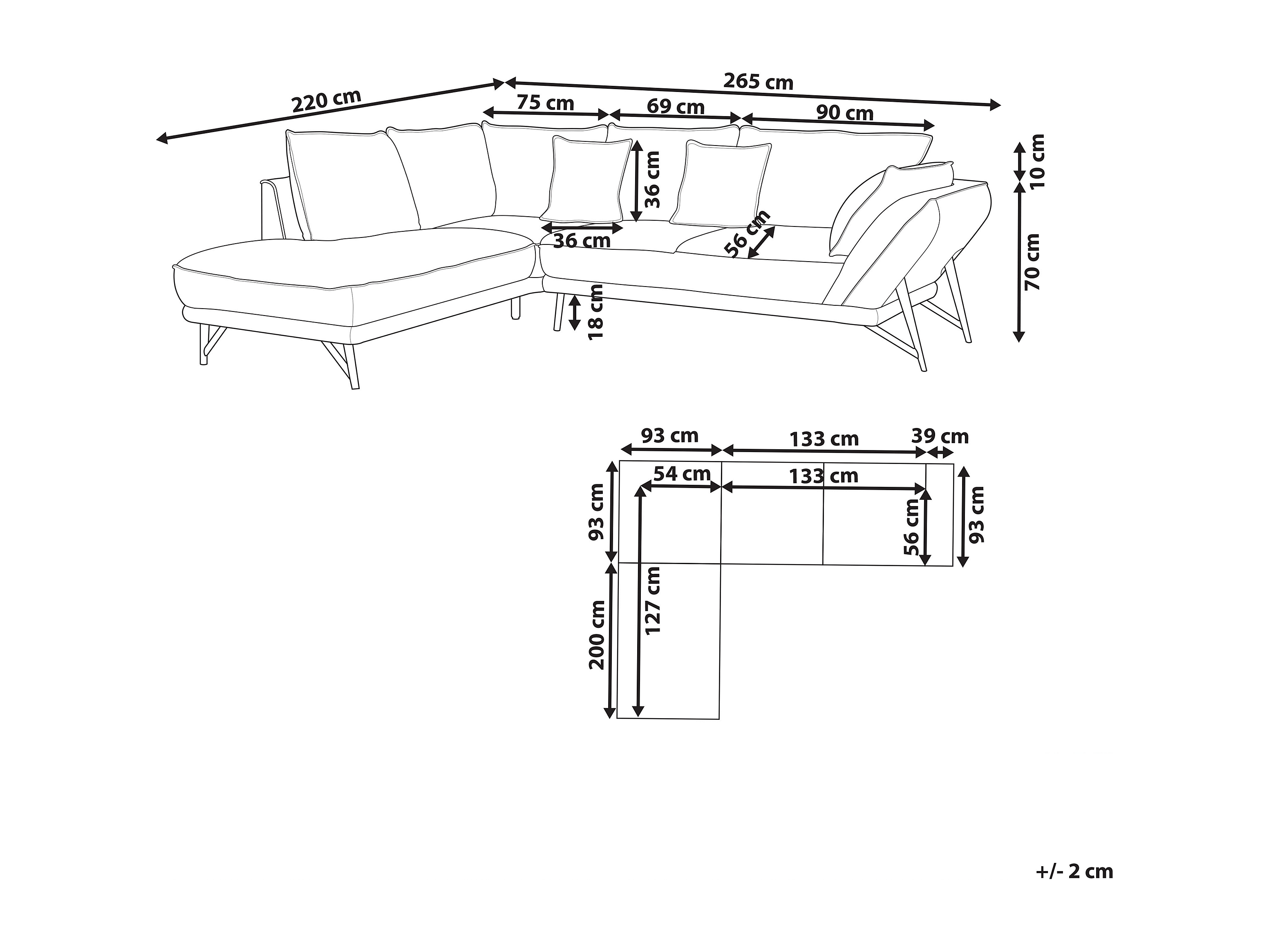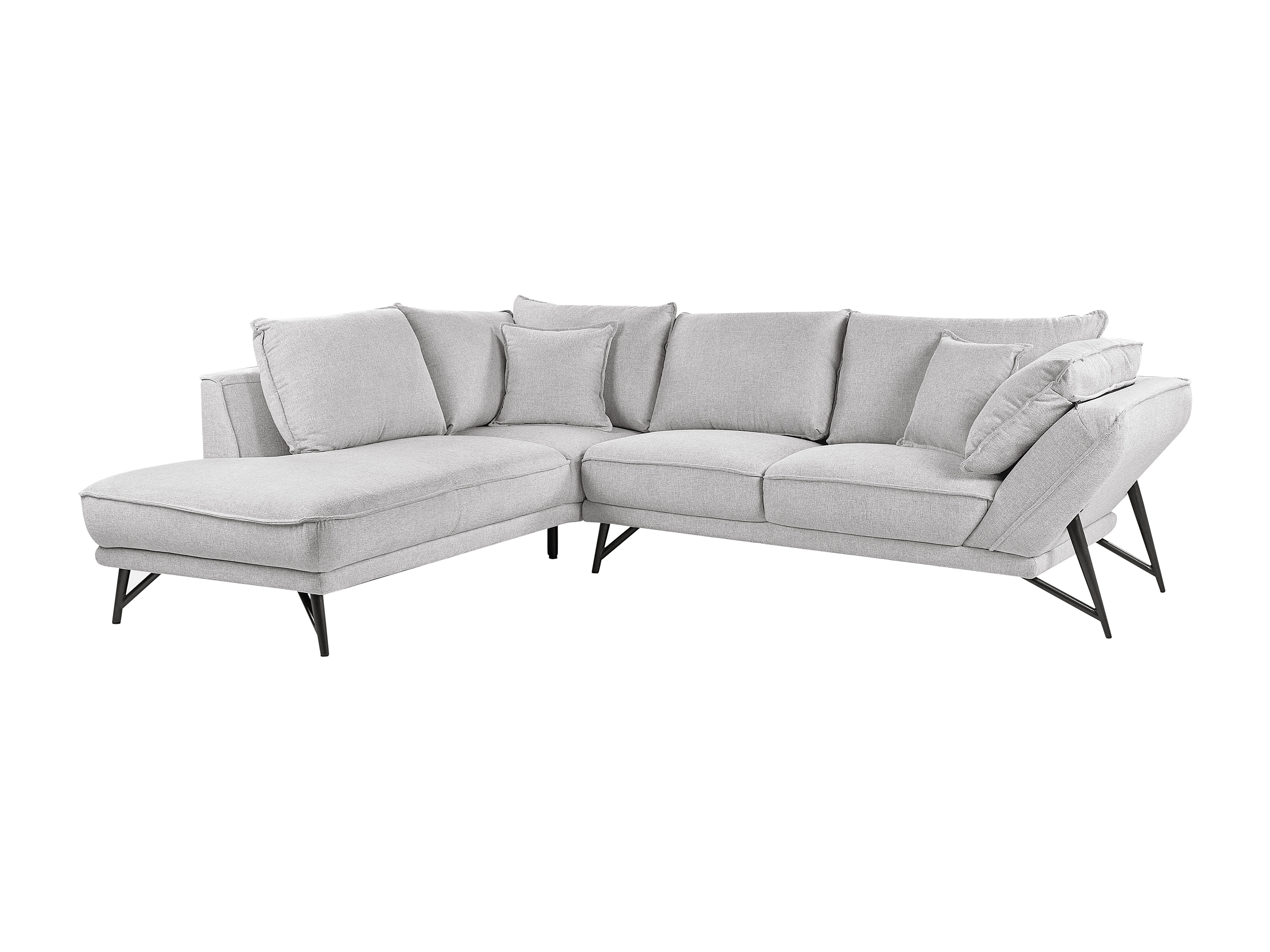 Canapé d'Angle Côté Droit 3 Places Rembourré en Lin Gris Clair et Pieds en Métal Elga