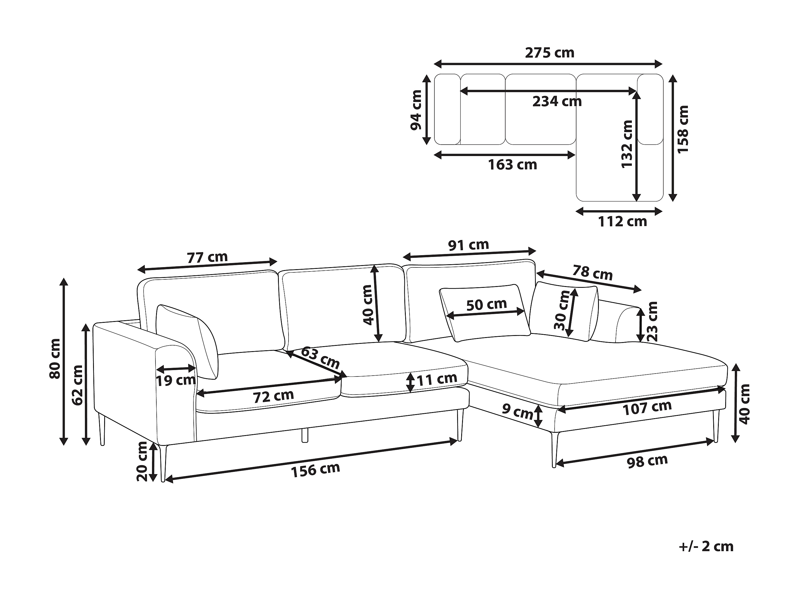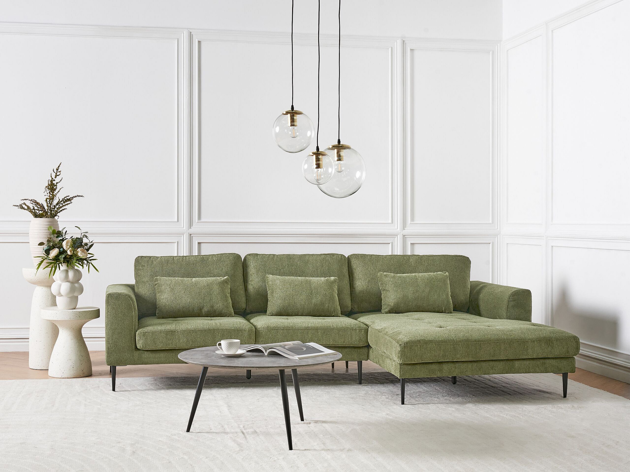 Canapé d'Angle Côté droite 3 Places Rembourré en Tissu Vert Flam
