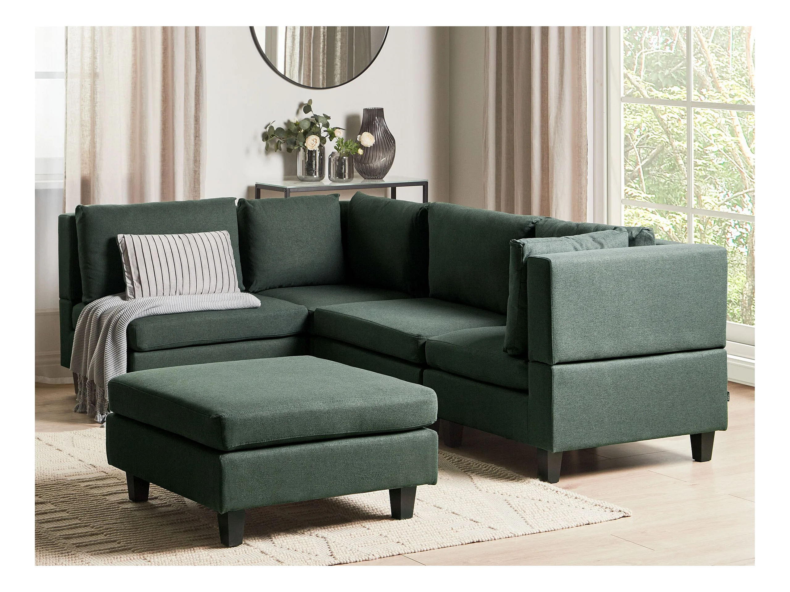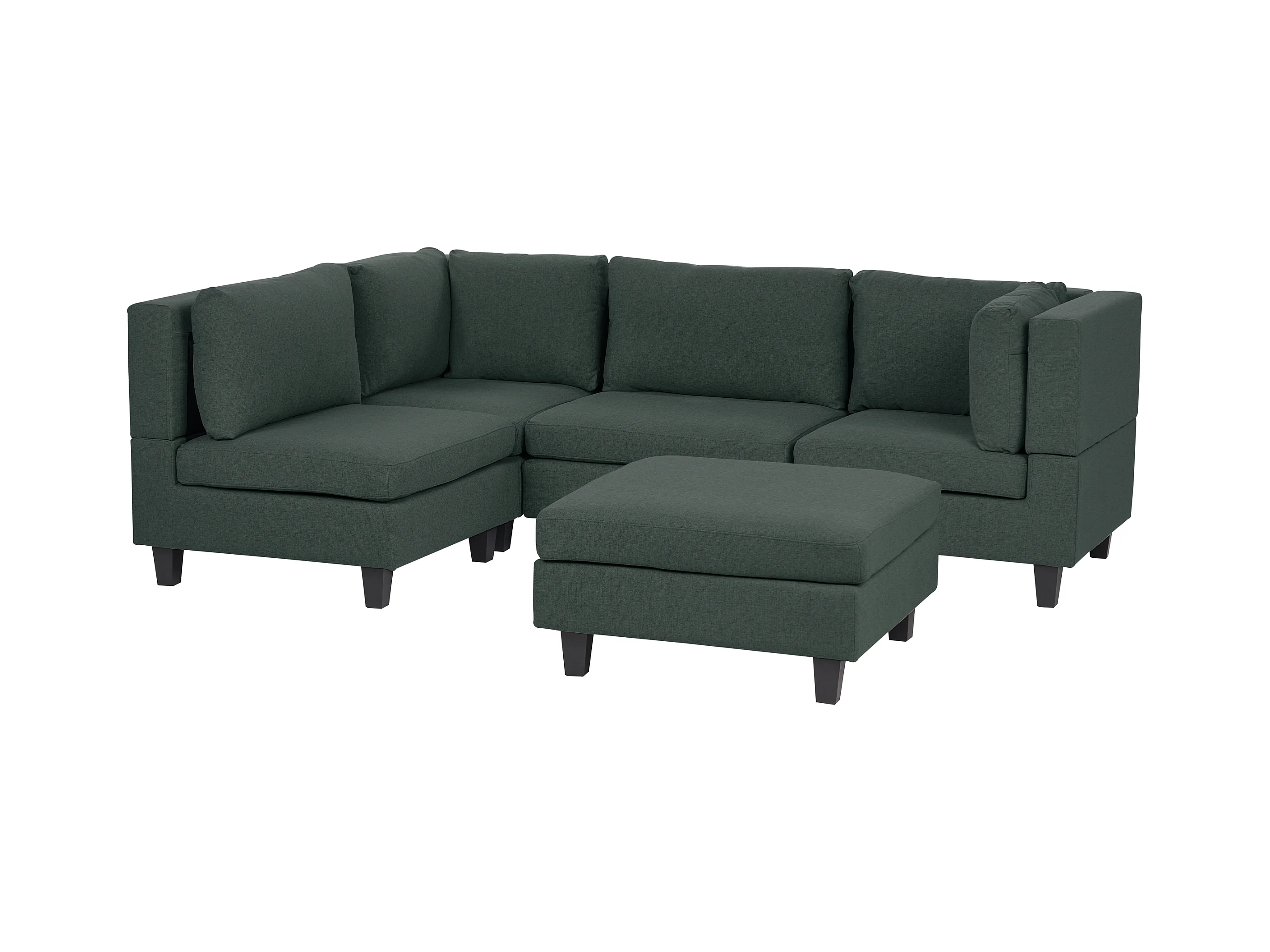 Canapé d'angle modulable 4 places UNSTAD Tissu Vert foncé avec ottoman Côté droit