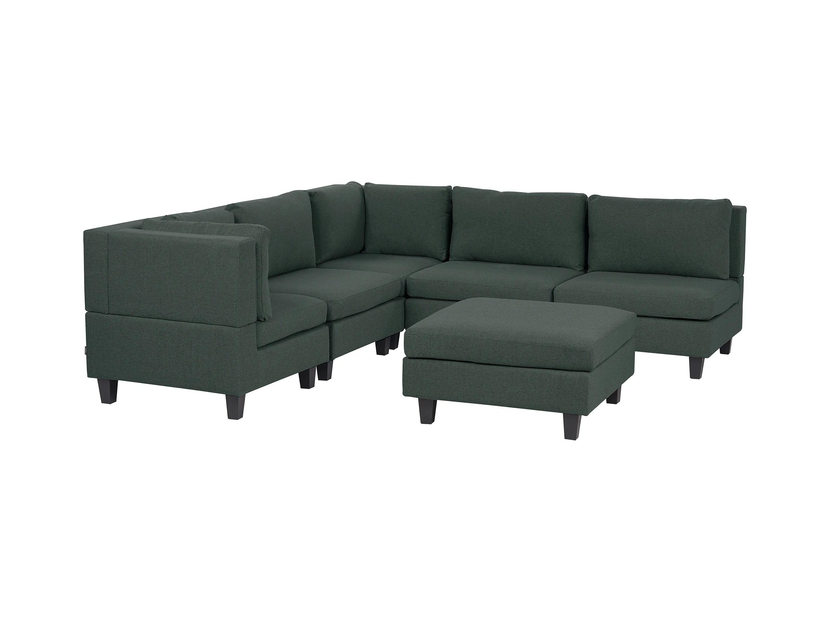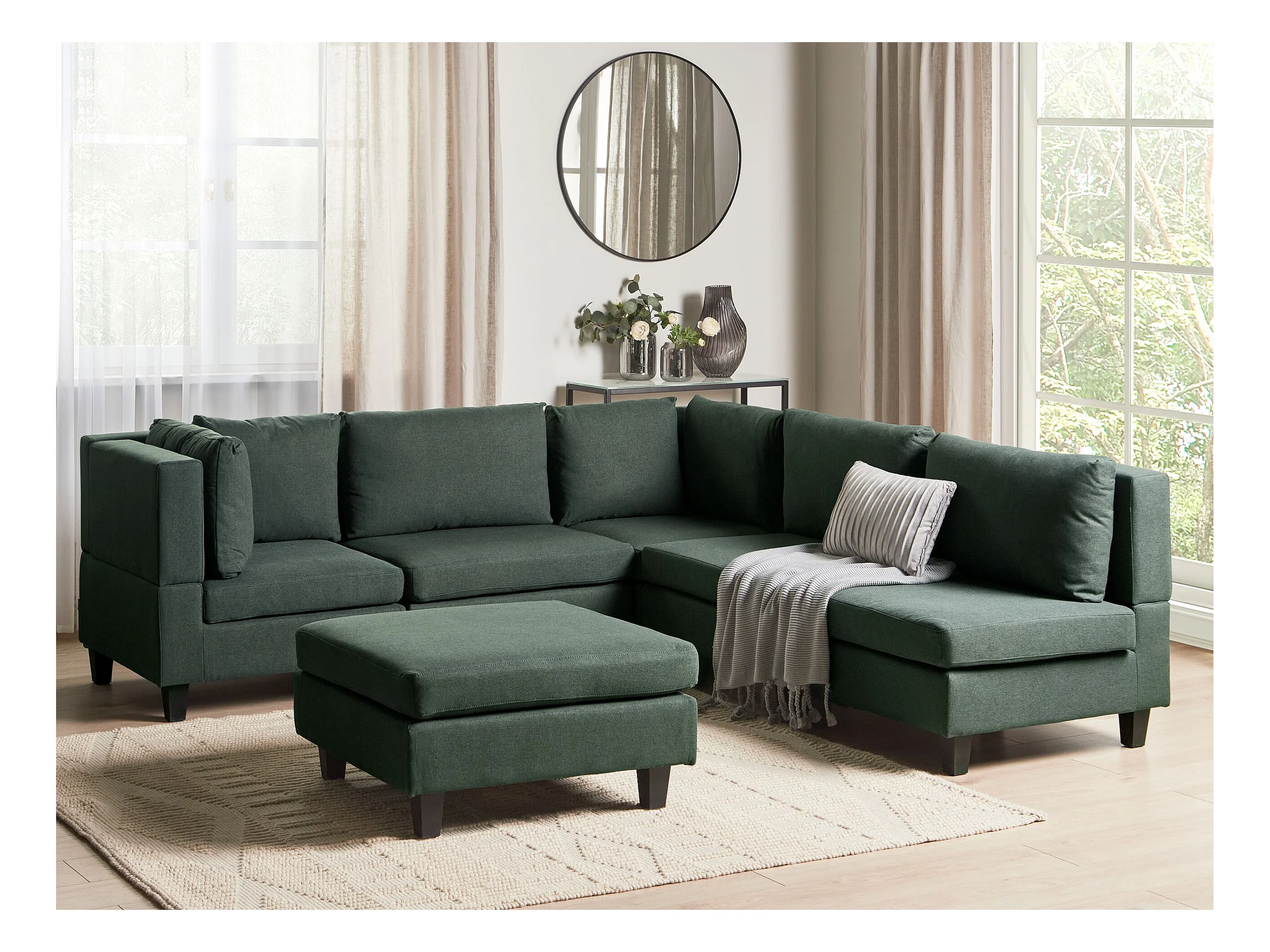 Canapé d'angle modulable 5 places UNSTAD Tissu Vert foncé avec ottoman Côté droit