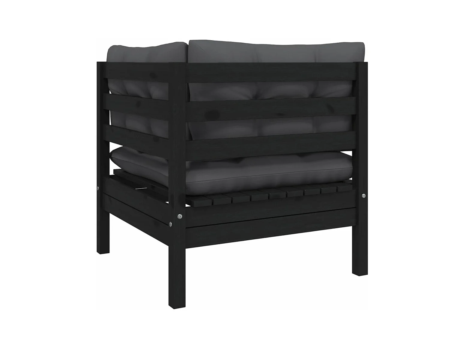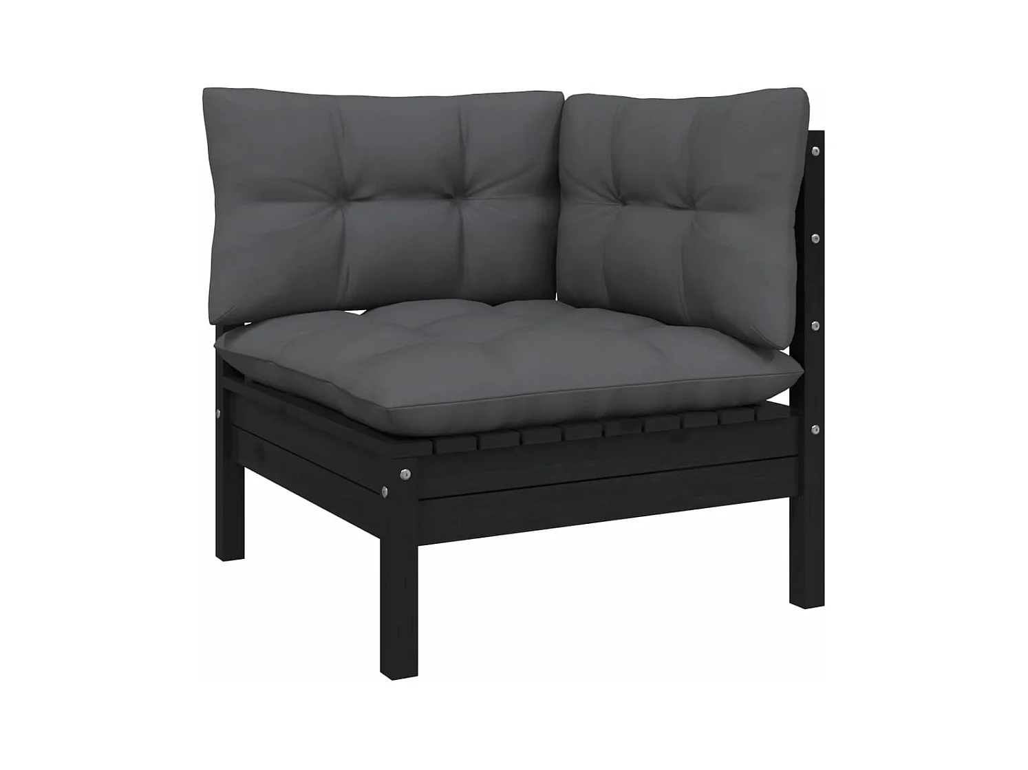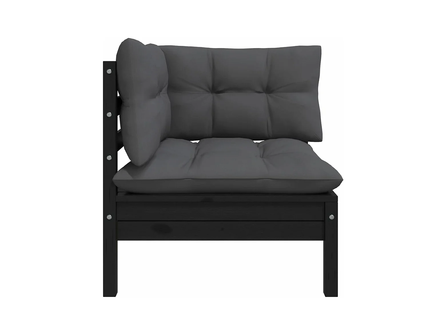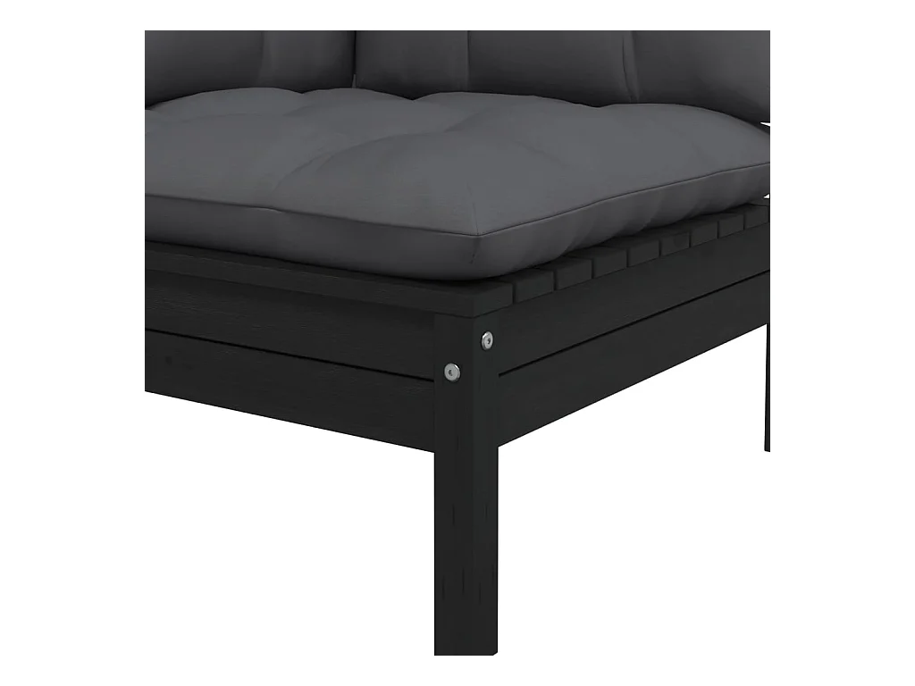 Canapé d'angle de jardin avec coussins Noir Bois de pin massif FR81890